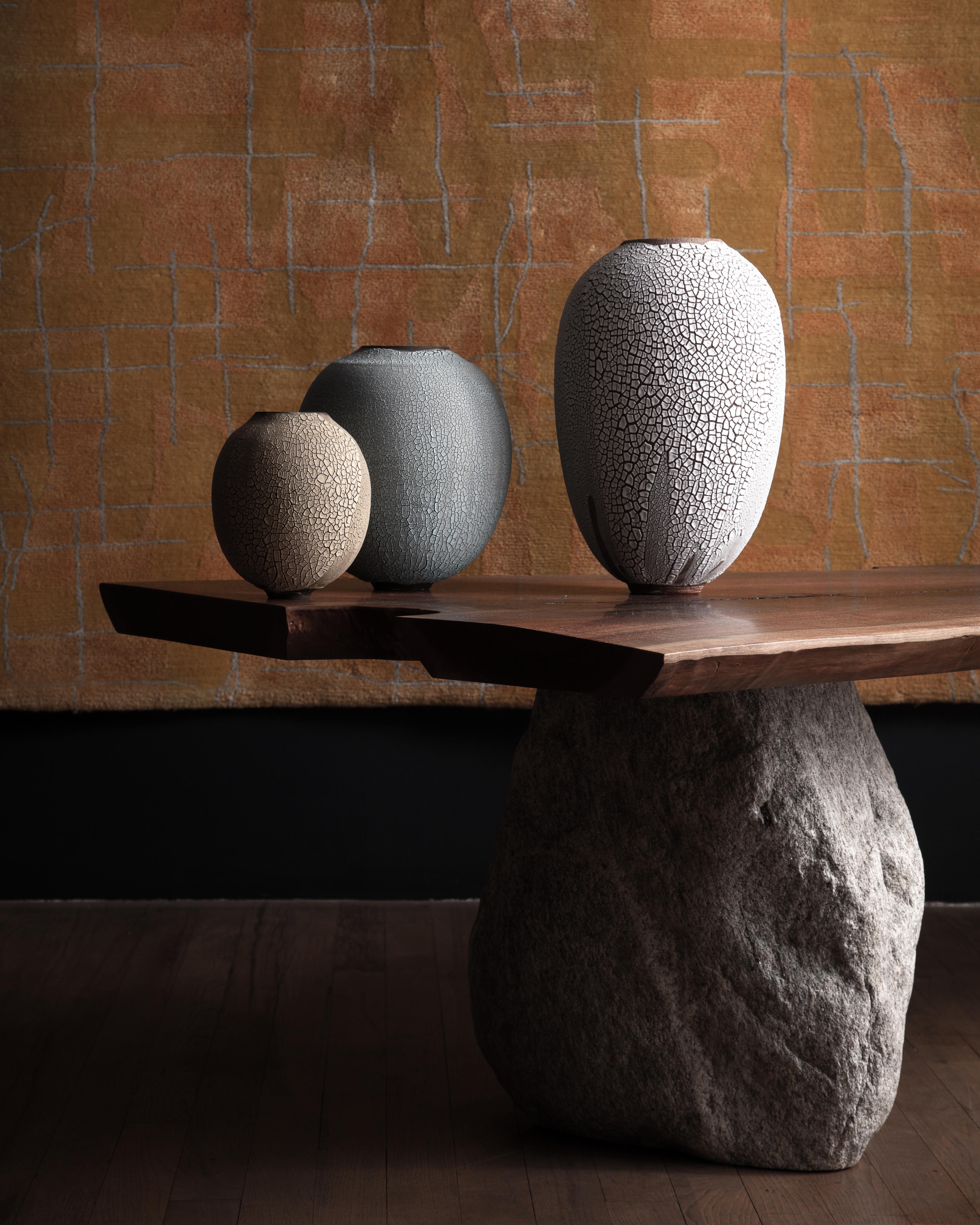 Furthering its mission, the gallery fosters new collaborations inviting international artists and designers to the ateliers of its master-artisans. The resulting work is presented through the gallery’s Editions Courbet catalog. Each piece is stamped and co-signed by the artisans and the artist, paying equal homage to the hands of the artisans behind the work. Over the years, Editions Courbet has initiated limited artist rugs collections by Frank Gehry and Vladimir Kagan, developed in collaboration with Sabine de Gunzburg and her team of master weavers in Nepal, as well as ongoing collaborations with Belgian designer Pieter Maes and European artisans such as art founders DeClerq & Ginsburg, Dutch master-woodcrafter Rutger Graas, French upholsterers Phelippeau and Jouffres, the French stone carvers of Marbrerie de Vitry and 3DW Italian woodcrafters. Other collaborations have included Israeli designer Raphael Navot and the Ateliers Saint-Jacques outside of Paris, Dutch designer Aldo Bakker with Wiener Silber Manufaktur Austrian silversmiths and the Viennese glassblowers of Lobmeyr, among many others. Today, the gallery represents over 50 traditional crafts carried on by esteemed artisans, mostly in Europe and Kyoto, Japan.