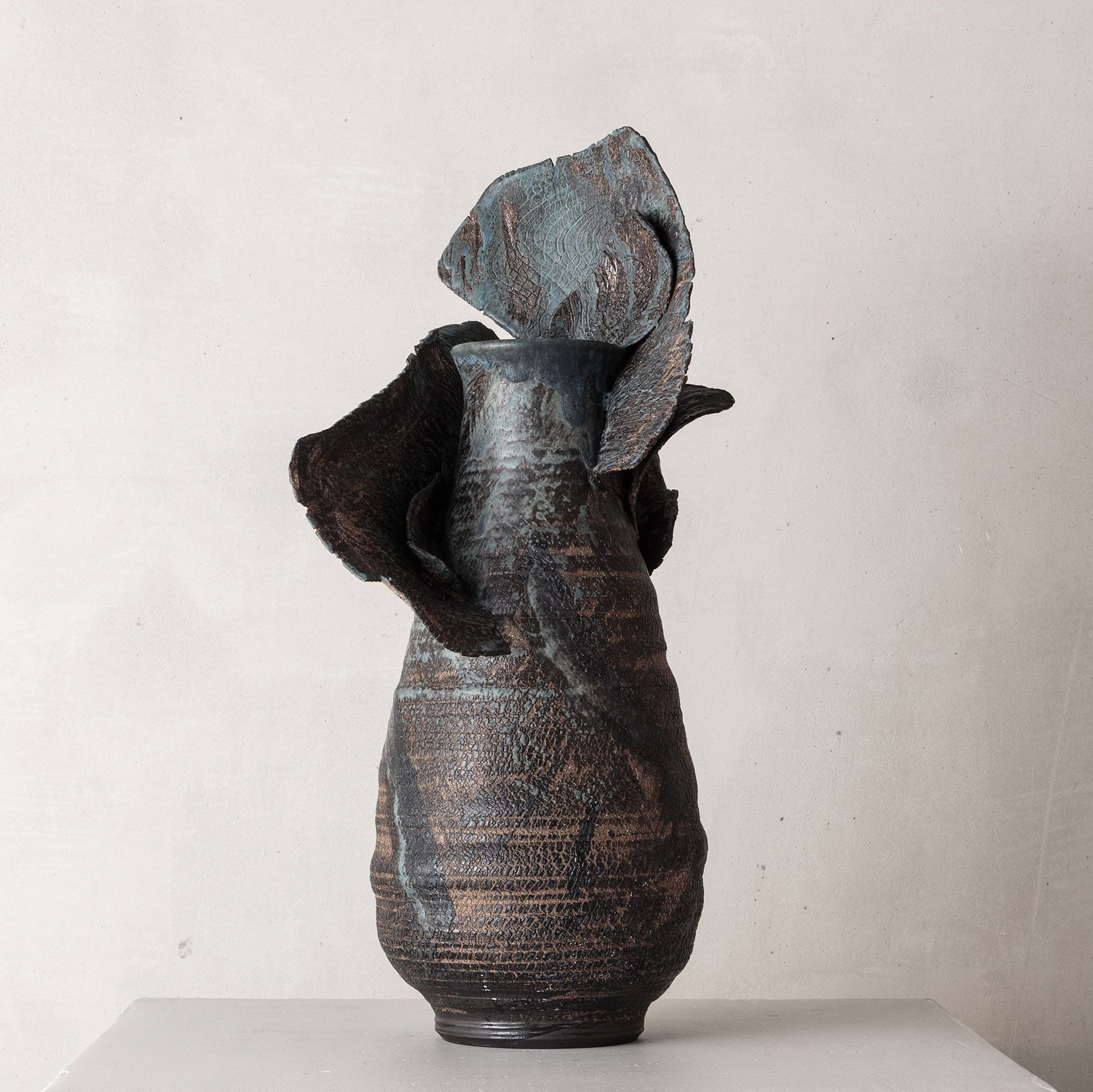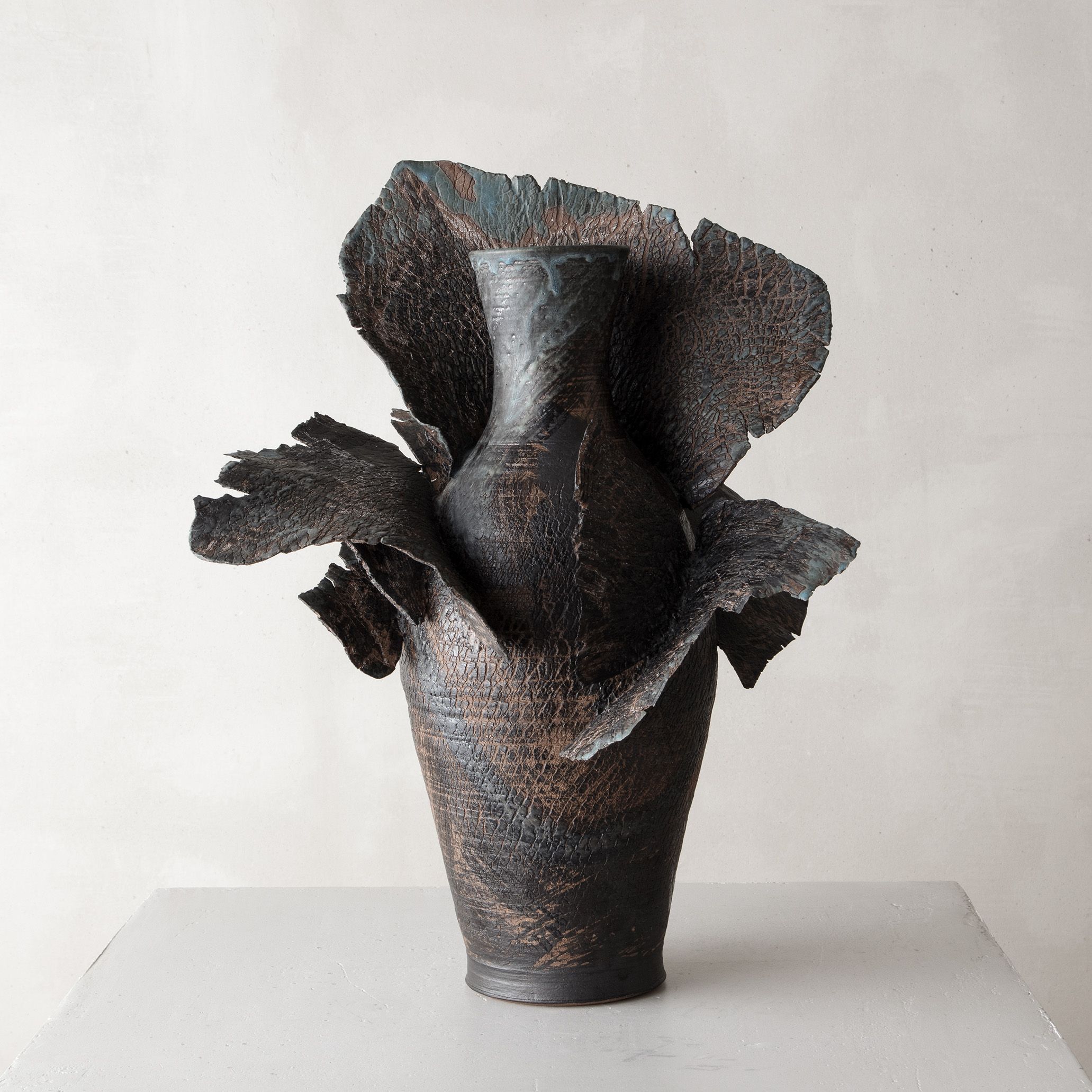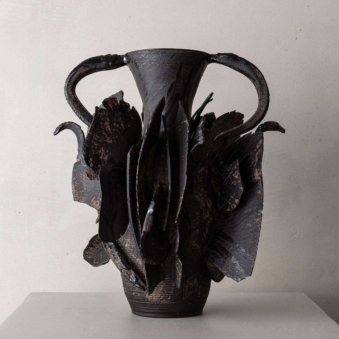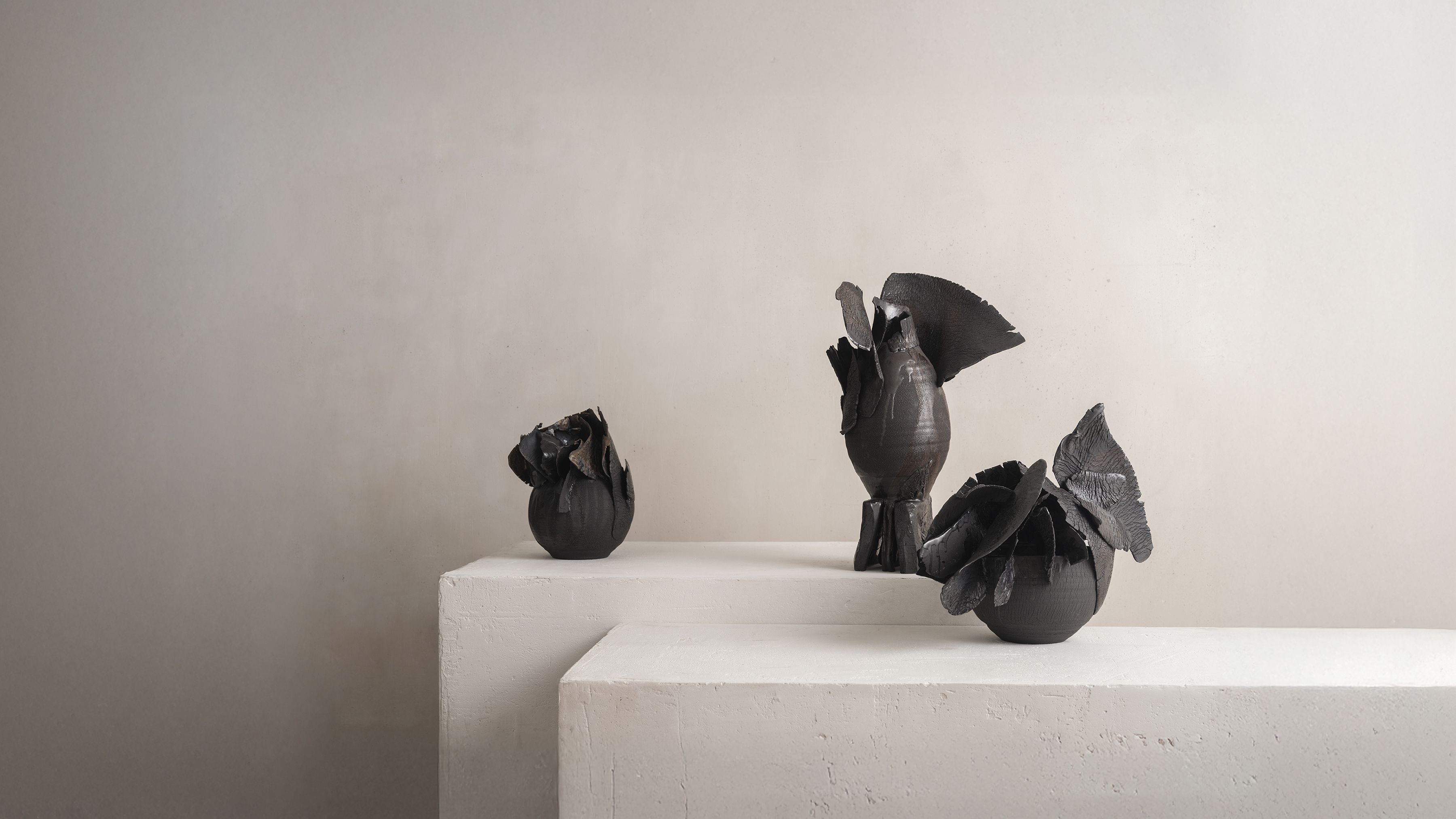 In any creative field or medium, Speliopoulos' work is rooted in the artist's passion for craftsmanship, organic material, and forms. For almost a decade, encouraged by the gallery, the artist has dedicated his creative exploration to the study of clay, stemming from a long-standing interest in the medium, its malleability, and tactile expressions. Since his inaugural exhibition Archaeos at Ateliers Courbet in September 2019, Speliopoulos has continued to evolve his ceramic practice, presenting solo exhibitions Chthonic in 2021 and Miteria in 2023. The artist is currently completing his fourth series, set to be unveiled in the winter of 2024.