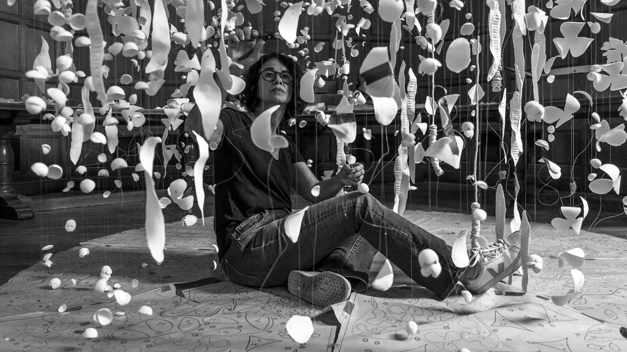 Today, Nascimento has developed a significant body of work, primarily composed of hand-modeled bisque porcelain installations. Her site-specific pieces represent a meticulously mapped ensemble of nature-inspired elements, individually hand-formed by the artist. Each resembles an ethereal mycelium landscape drawing from a confluence of inspirations rooted in the lust nature of her native environment and the urban fabrics she studied in architecture. The individual parts of her pieces are often inspired by botanical elements gathered from nature or collected from childhood memories. Whether framed on a panel or mounted directly onto walls or ceilings, her compositions are made up of organized clusters and sequences of hundreds of delicate organic shapes, whisper-thin petals, seeds, or blossom-like forms, all modeled one by one in her studio.