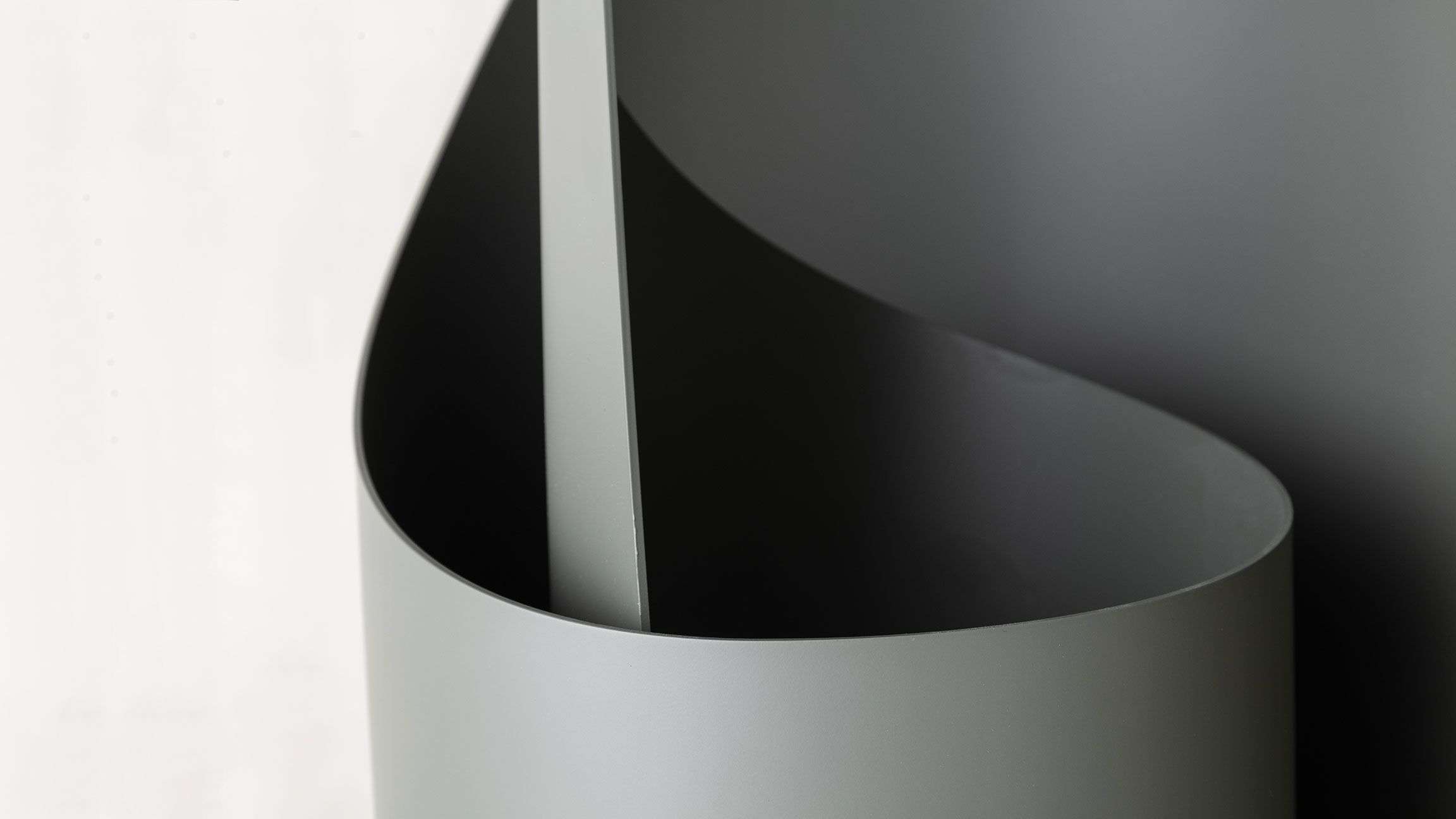 The Green Side Table consists of a single sheet of steel, cut so that it can be “rolled up” into a table in one smooth motion. Due to the spiral shape, a self-supporting construction is created. The piece appears as if it is in constant motion. EXHIBITIONS MUDAC Lausanne, 2017