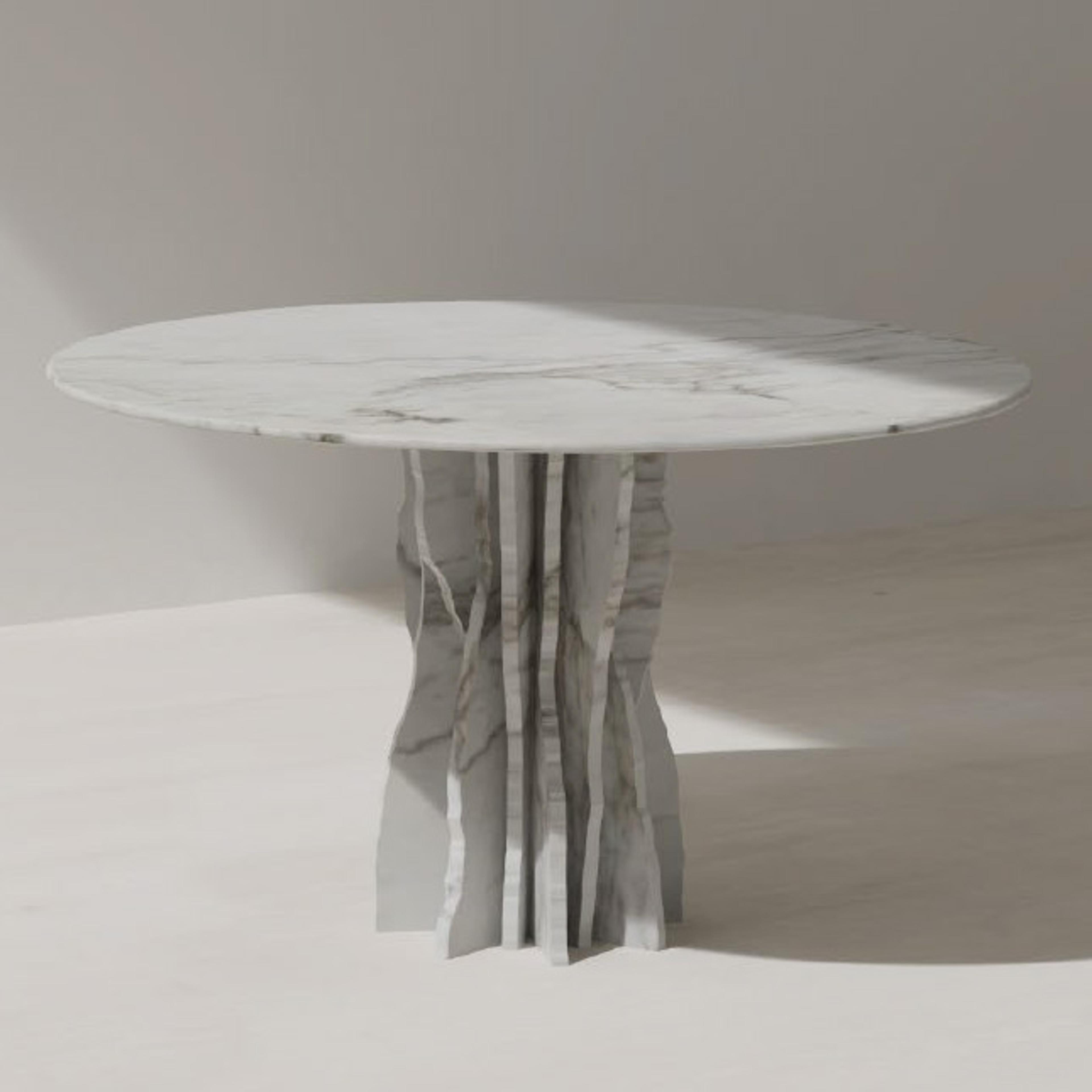 Sperlein's Silva Collection is a celebration of traditional craftsmanship, as well as the marble material itself, its elegance and personality. Each piece is hand crafted by artisans in Portugal. The collection name 'Silva' translates to ‘forest’ or ‘woodland’ in Latin. The sculptural tables and lights emphasize the materiality and organic nature of the marble by highlighting the raw edges of the slabs arranged as sun rays in circular configuration.