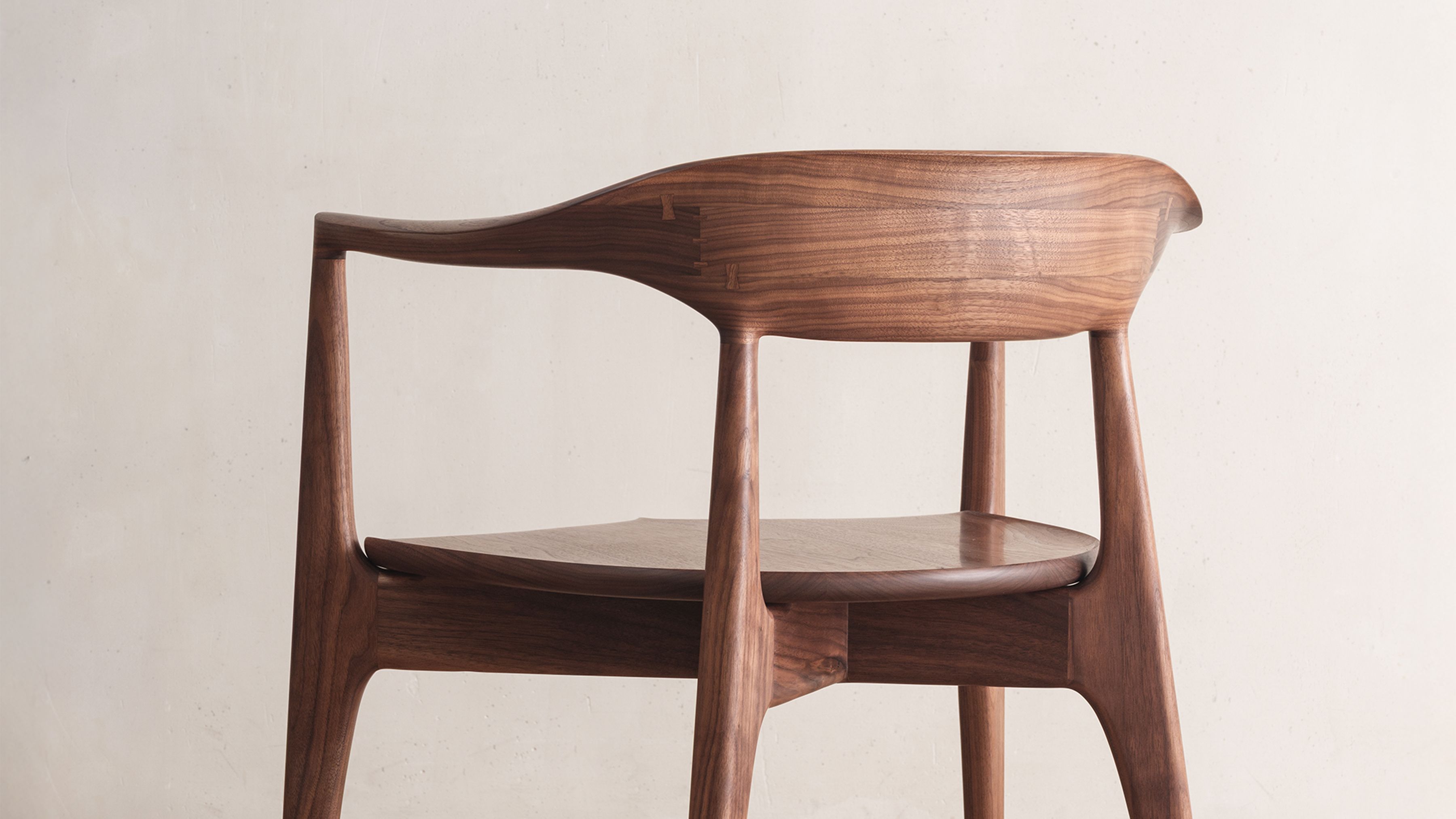 At KOMA's workshop on the outskirts of Tokyo, Matsuoka-san and his team preserve the integrity of handcraft through an exacting, tactile process. Working almost exclusively with North American black walnut and cherry—woods chosen for their warmth, strength, and expressive grain—the team goes through the process of seasoning each plank for months before carving begins. Traditional tools such as kanna (planes) and kiri (chisels) guide the hand in shaping soft, seamless curves that are impossible to achieve through machine work. A single chair may take three months to complete.