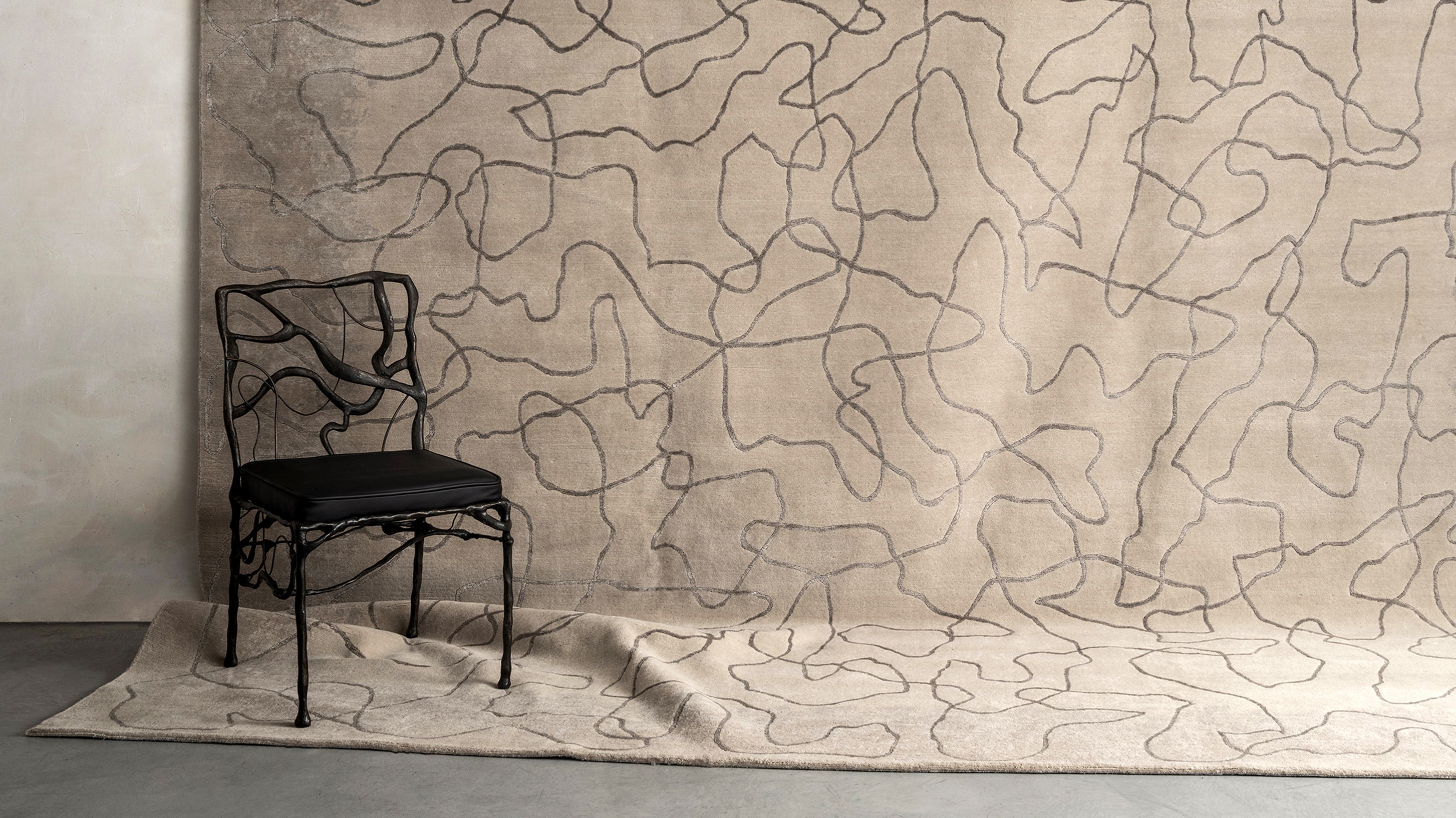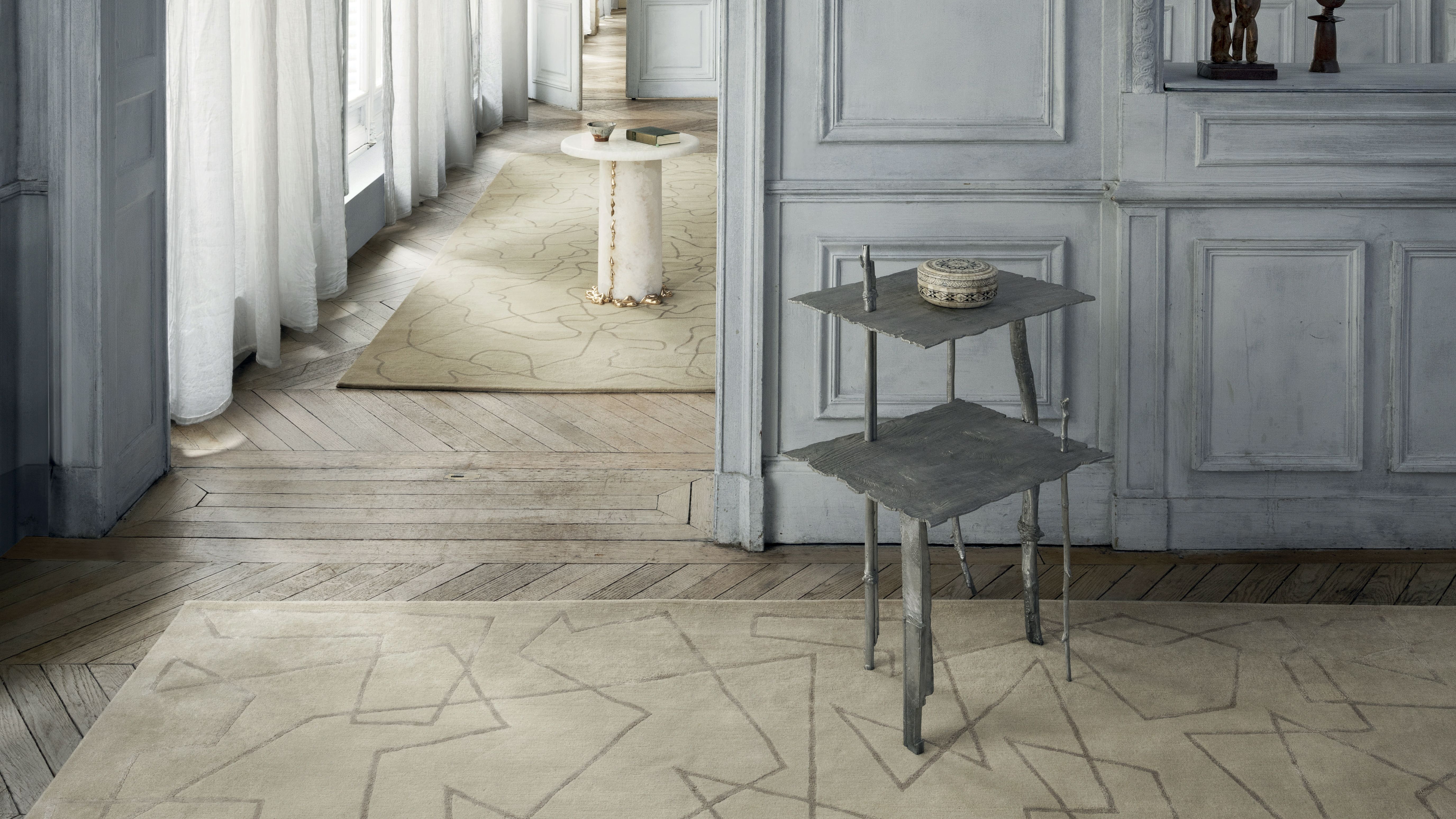 The 'Castor' rug was designed by Mattia Bonetti as part of his 'Elements' series for the esteemed rugs catalog of Diurne. The collaboration brings Bonetti back to his initial mediums of expression as his interest in design burgeoned during his textile design studies at the Centro Scolastico per l’Industria Artistica in Lugano. Bonetti's collaboration with the master weavers of Diurne is a contemporary and playful tribute to the ongoing rug-weaving tradition of Nepal.