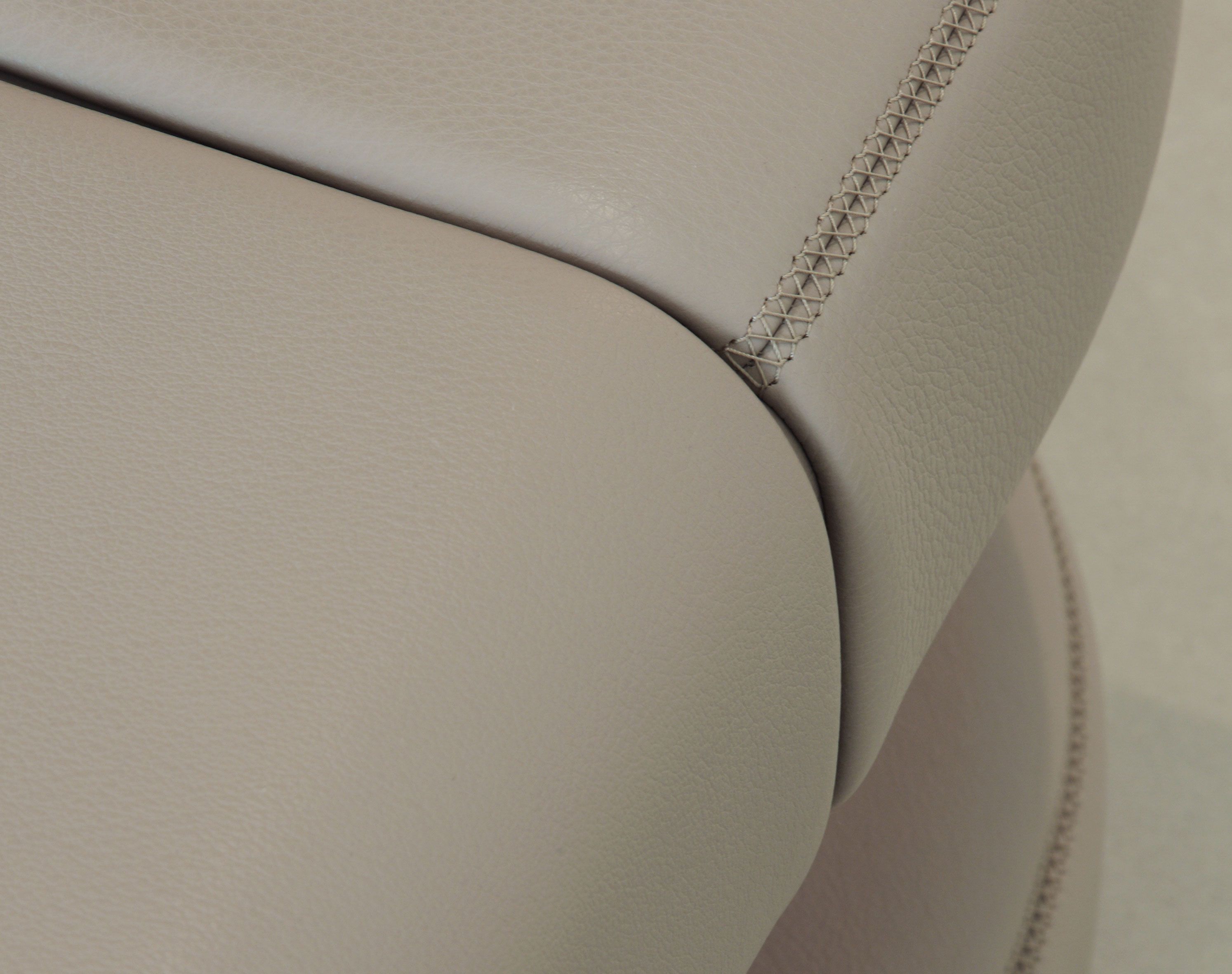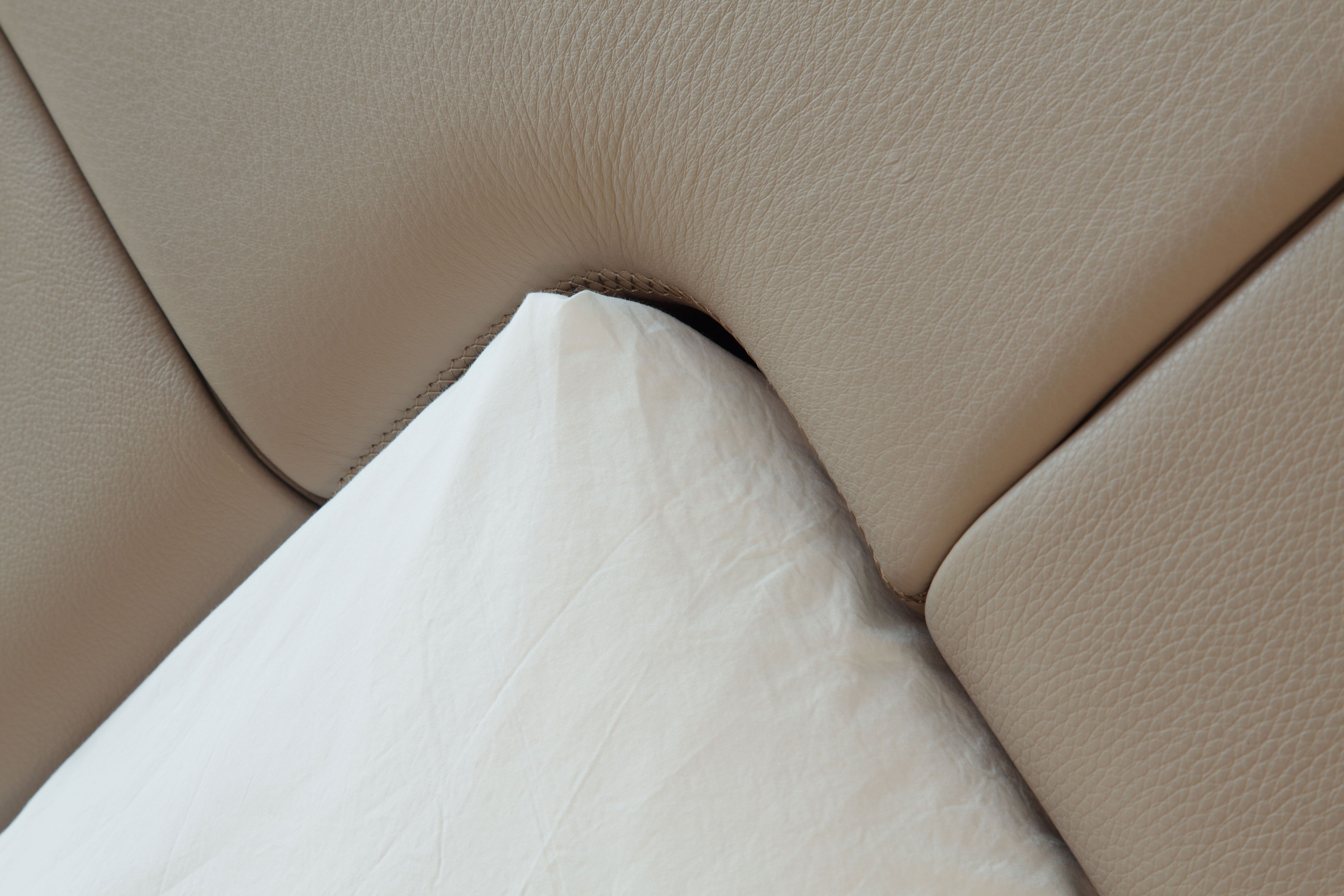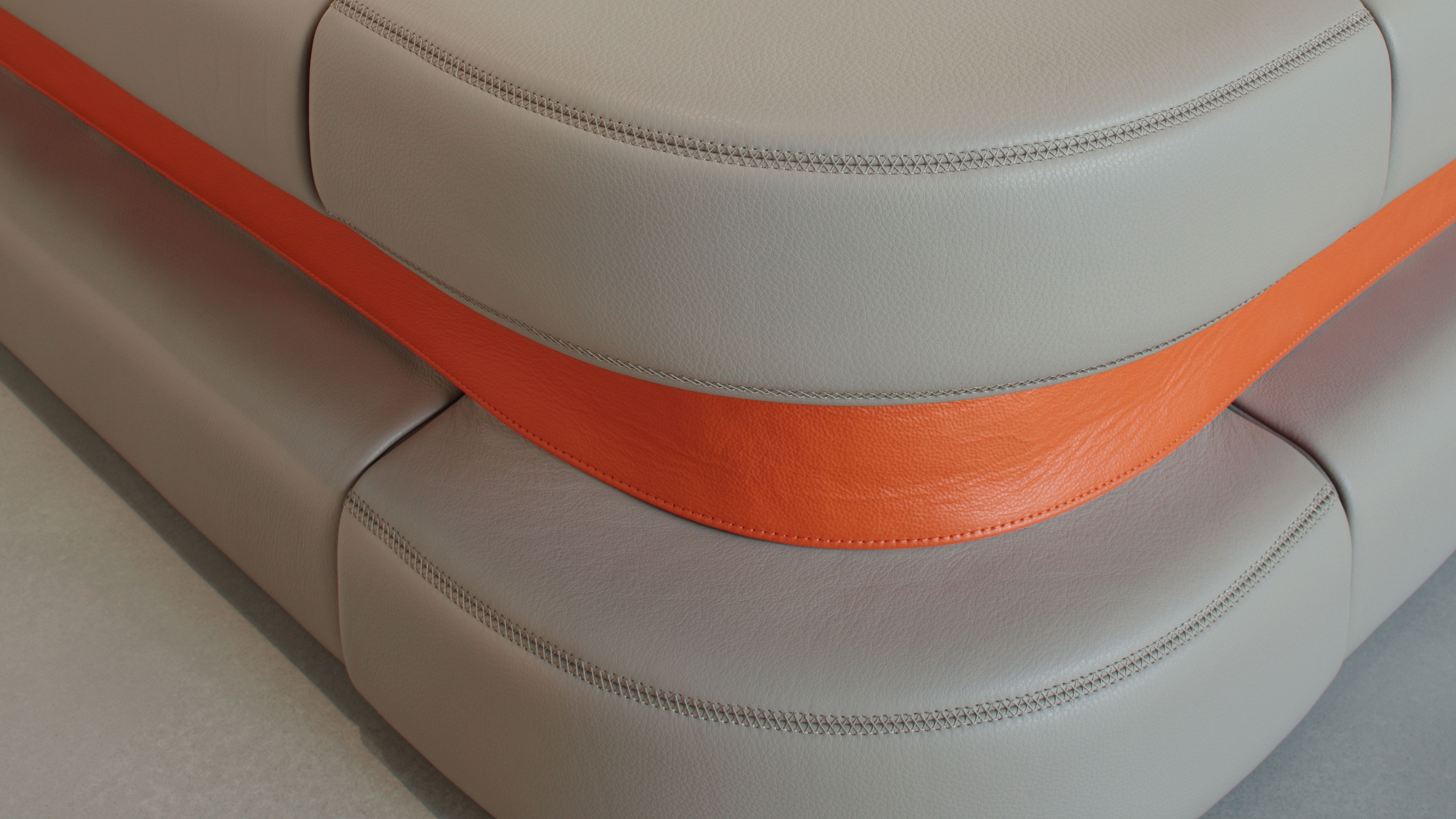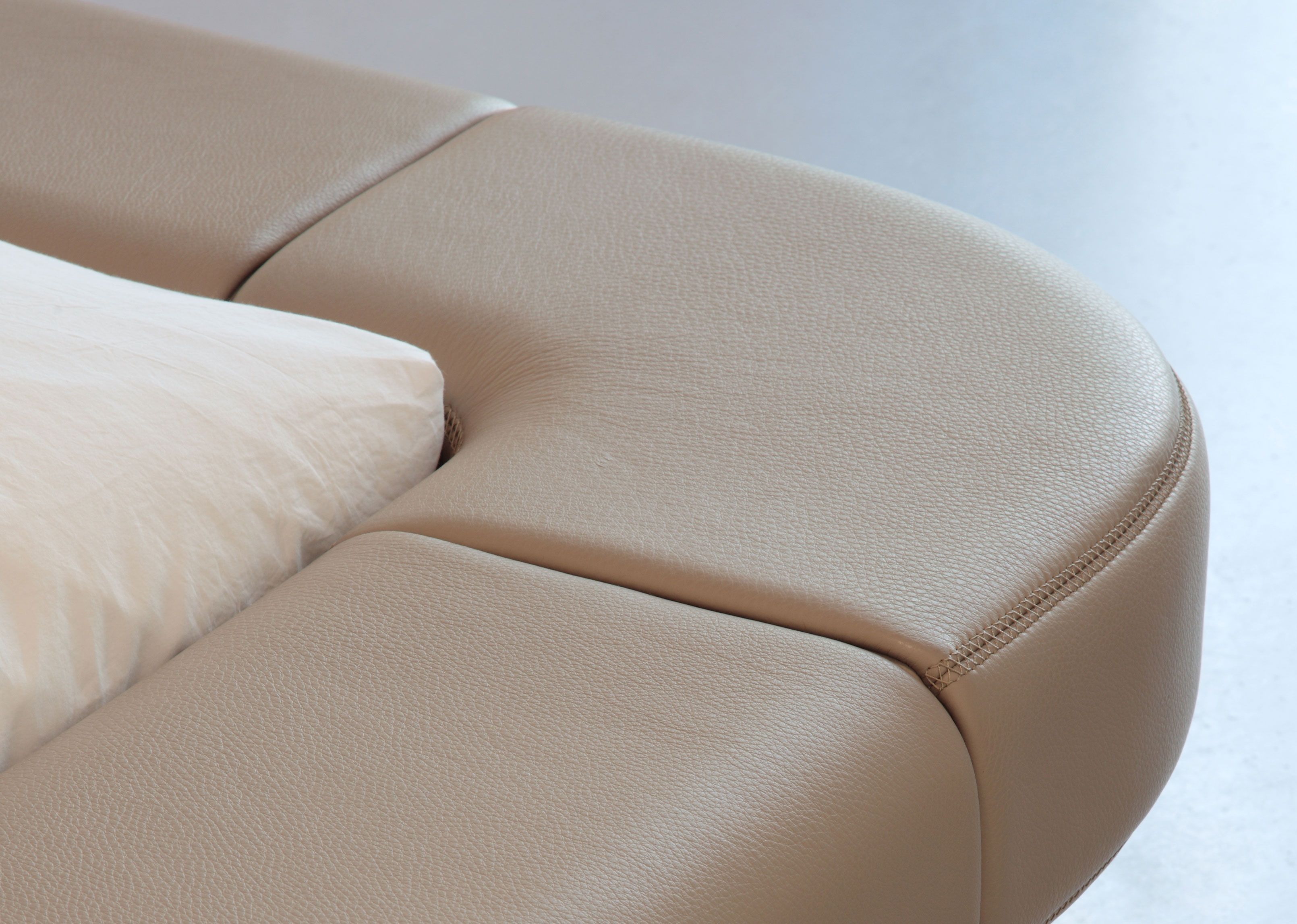 From the Domeau & Peres Editions French master-craftsmen Domeau & Pérès have long collaborated with Australian designer Marc Newson on projects encompassing interiors of a spaceship, a Falcon Jet, and product design pieces. This collaboration unveils a leather-upholstered bed surrounded by chunky bumpers at its base. The piece was included in the retrospective ‘Marc Newson at Home’ presented by the Philadelphia Museum of Art in 2013. Marc Newson enclosed the Bumper Bed within padded leather cushions to evoke the sense of sleeping on a mattress laid directly on the ground. "Most people I know have at some point in their lives slept on a mattress on the floor," said Newson. "So I thought it would be nice to design a bed that would [encourage] people like me to replace their faithful mattress with a 'beautiful bed'." One lip sits flush with the mattress and a second wraps around the bed at floor level, with an orange leather strip running between the two. The sides are deep enough to be used as seats and can be ordered from Domeau & Pérès in white, dove (pictured), or chocolate colors.