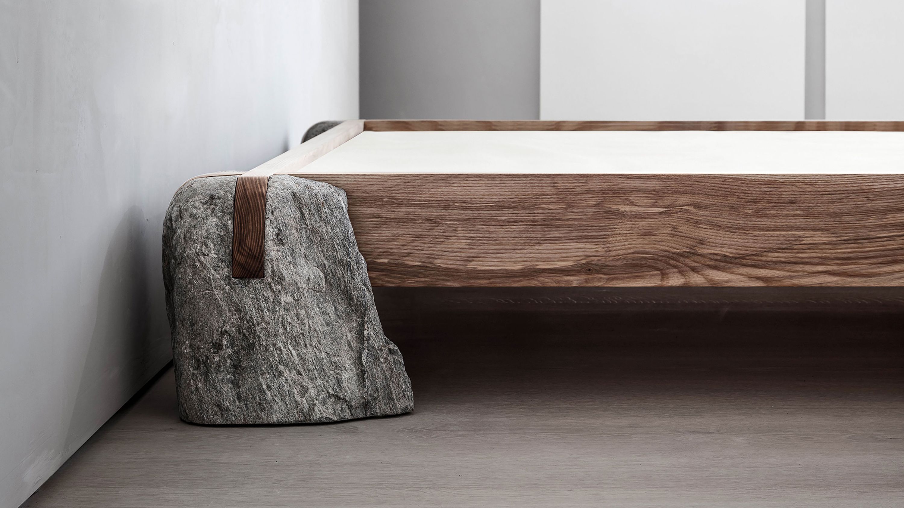 Inspired by the Japanese craftsmanship traditions and ethos, the Wabi-Sabi Bed was created and hand-crafted by American stone carver Ethan Stebbins. The Maine-based artisan uses the Japanese time-honored techniques of interlocking joinery with local materials he carefully selects in the natural environments neighboring his studio.
