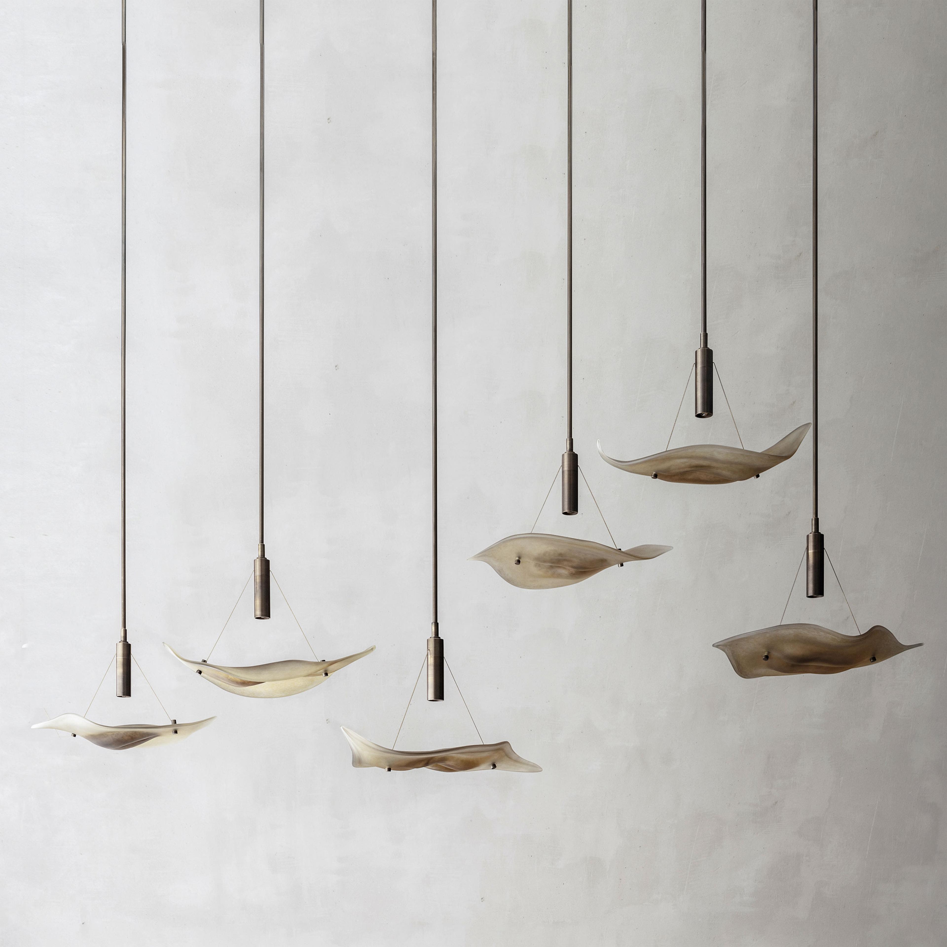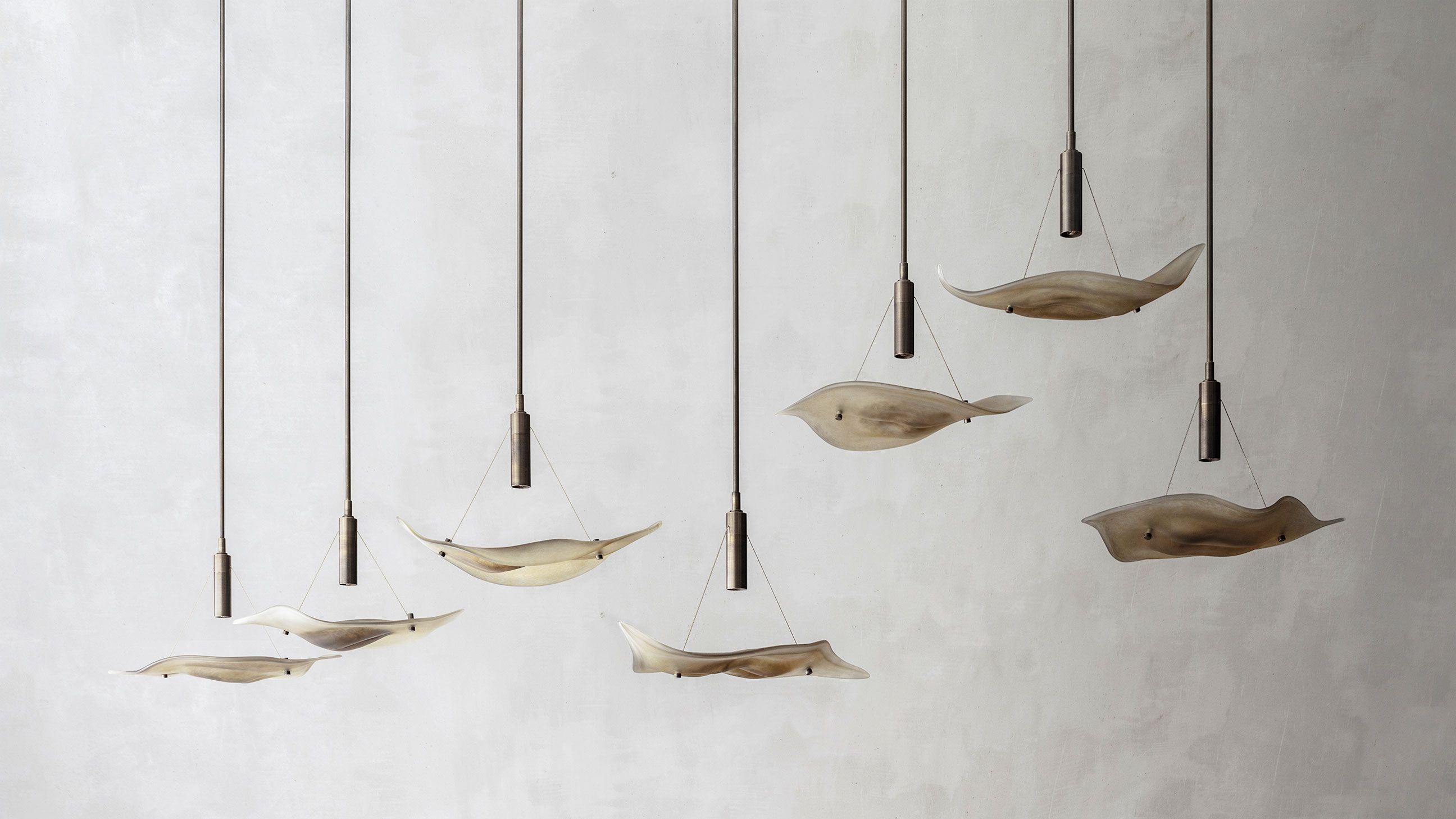 Hot formed in Turkey by the artist, The Foresta vertical pendants are hot-formed sculptures that take their inspiration from gala leaves.