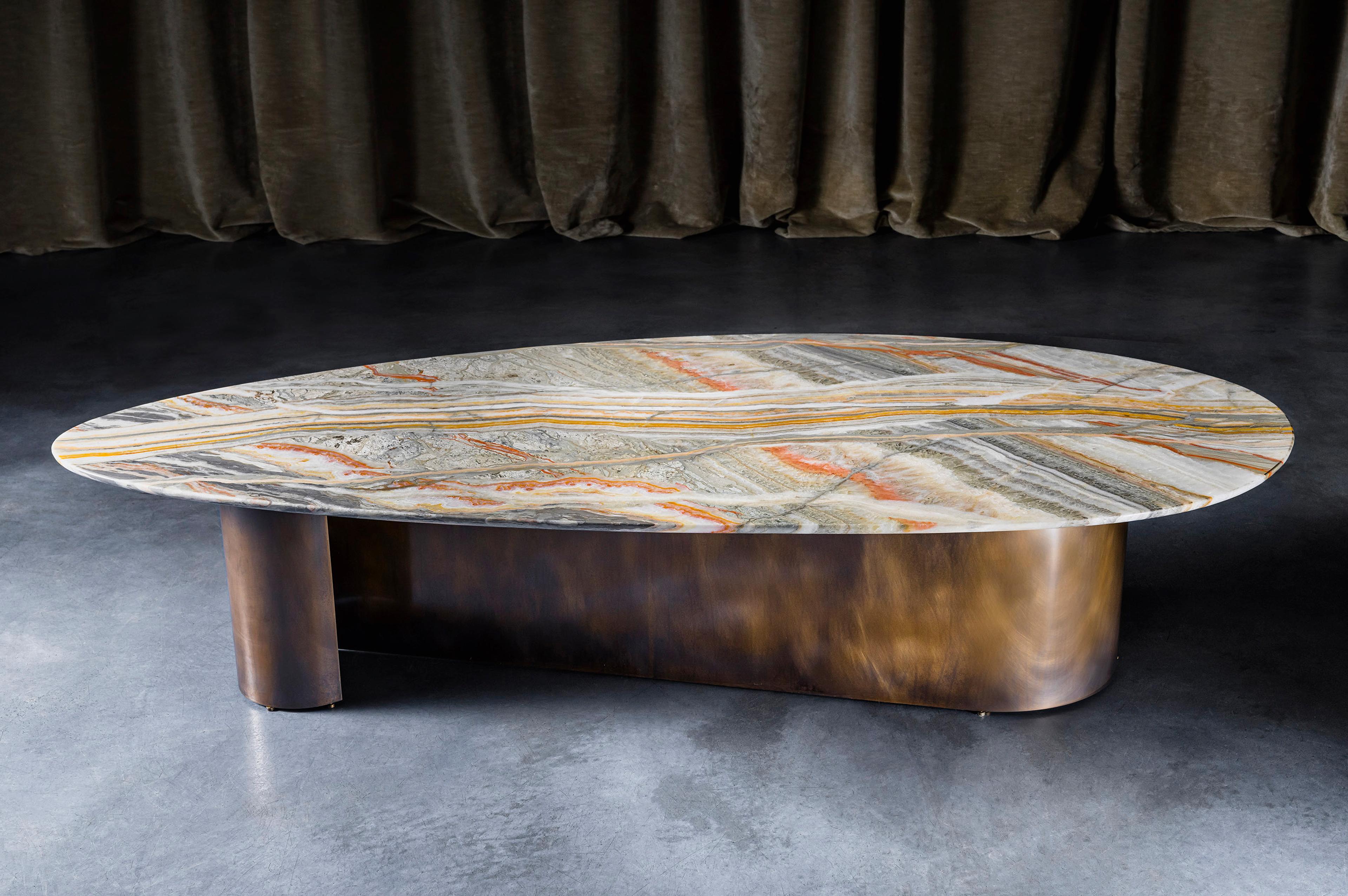 Milan-based sculptor Gianluca Pacchioni discovered his artistic vocation and his passion for Sculpture in his twenties while learning as a young apprentice in a studio shared with other artists on Quai de la Gare in Paris. There, he was able to learn the metalsmithing time-honored techniques such as blacksmithing, metal forging, hammering, and bronze casting. The artist's work has since matured into a virtuous fusion of brass, bronze, and iron, nuanced with patinas that the artist developed himself, or layered with poured liquid metals also created by the artist. He, later on, explored the juxtaposition of metal mediums with stone and has since grown a significant body of work combining the two types of material. Pacchioni lives and works in Milan, where he continues to pursue his passion, as he creates and fabricates each of his pieces.