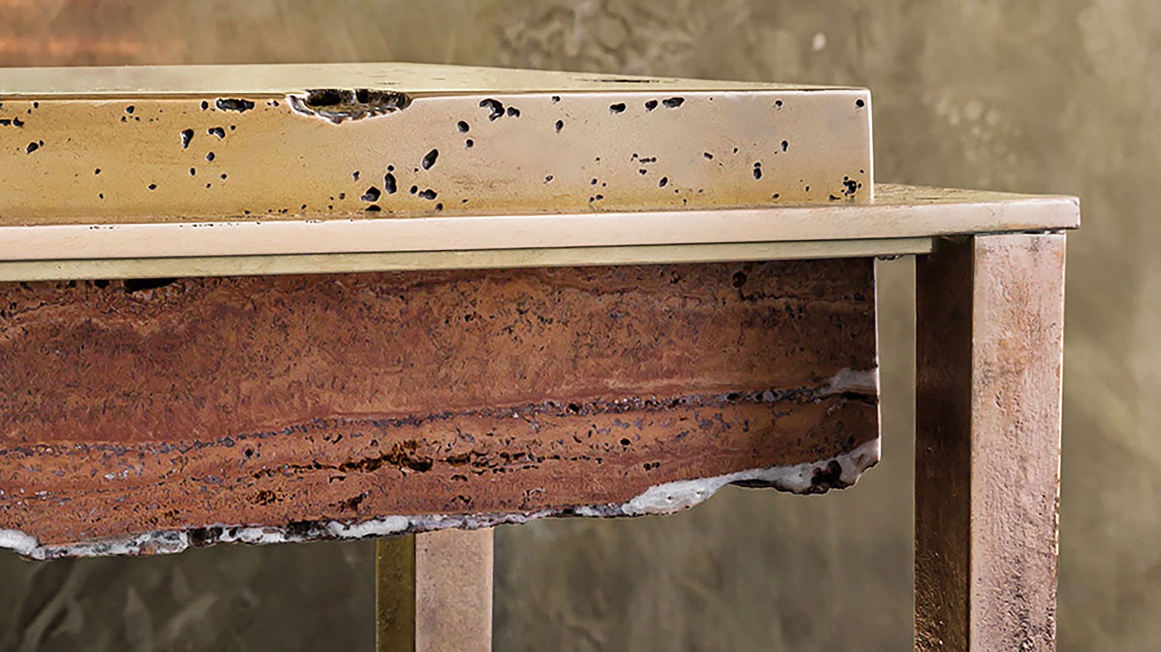 The artist then returned to his native Milan, opening his own studio in an eyedrops factory from the 1930s, working in tandem with Italian master craftsmen with whom he learned and honed his expertise. Pacchioni never ceases to explore new techniques and new materials. Today his work has matured into a virtuous fusion of brass, bronze, iron, stones layered with different patinas, and poured liquid metals.
