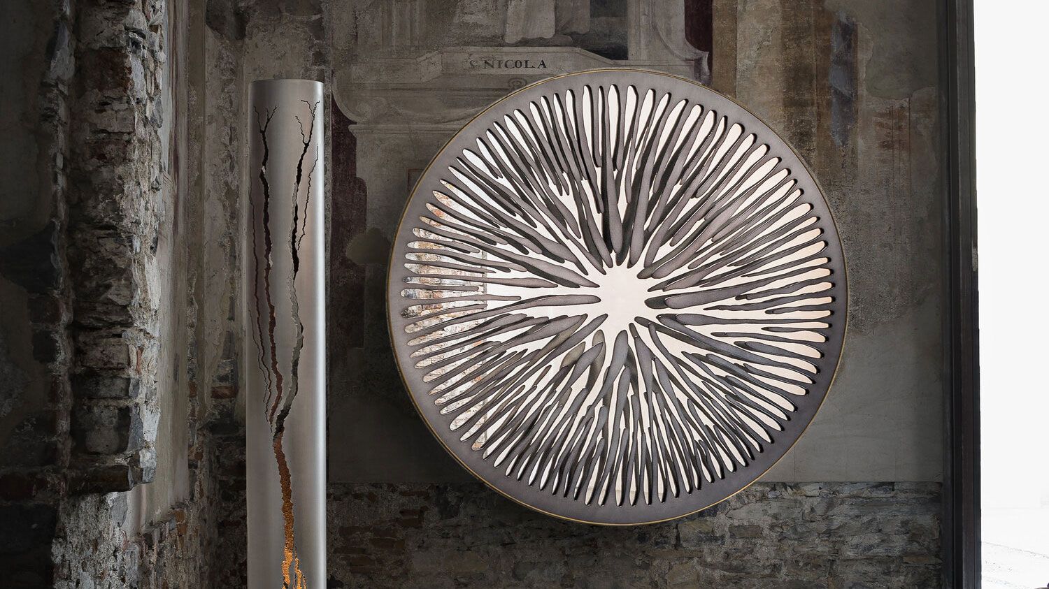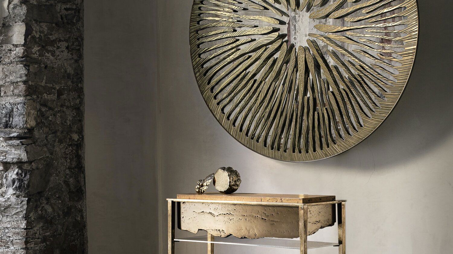 Gianluca Pacchioni, a Milan-based artist, acclaimed for his rigorously sculpted metal objects, began forging metal as a self-taught apprentice in a studio shared with other artists at Quai de la Gare in Paris. After his first exhibition, the Cologni Foundation awarded Pacchioni a Master in Fine Arts & Crafts, an honor that recognizes the most skilled artisans in Italy. Pacchioni’s team fuses his methods with traditional techniques to manipulate metal in new ways. His work has matured into a virtuous fusion of brass, bronze, iron, stones layered with different patinas, and poured liquid metals. Each Heron is cast and hand-patinated by the artist in Milan. Each Pupil mirror is a unique hand-crafted piece part of the Pupil series, which unfold various sizes and finishes. Each is painstakingly handcrafted at the artist's studio in Milan.