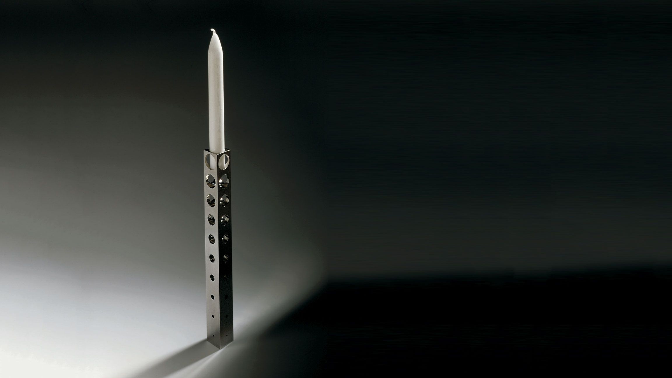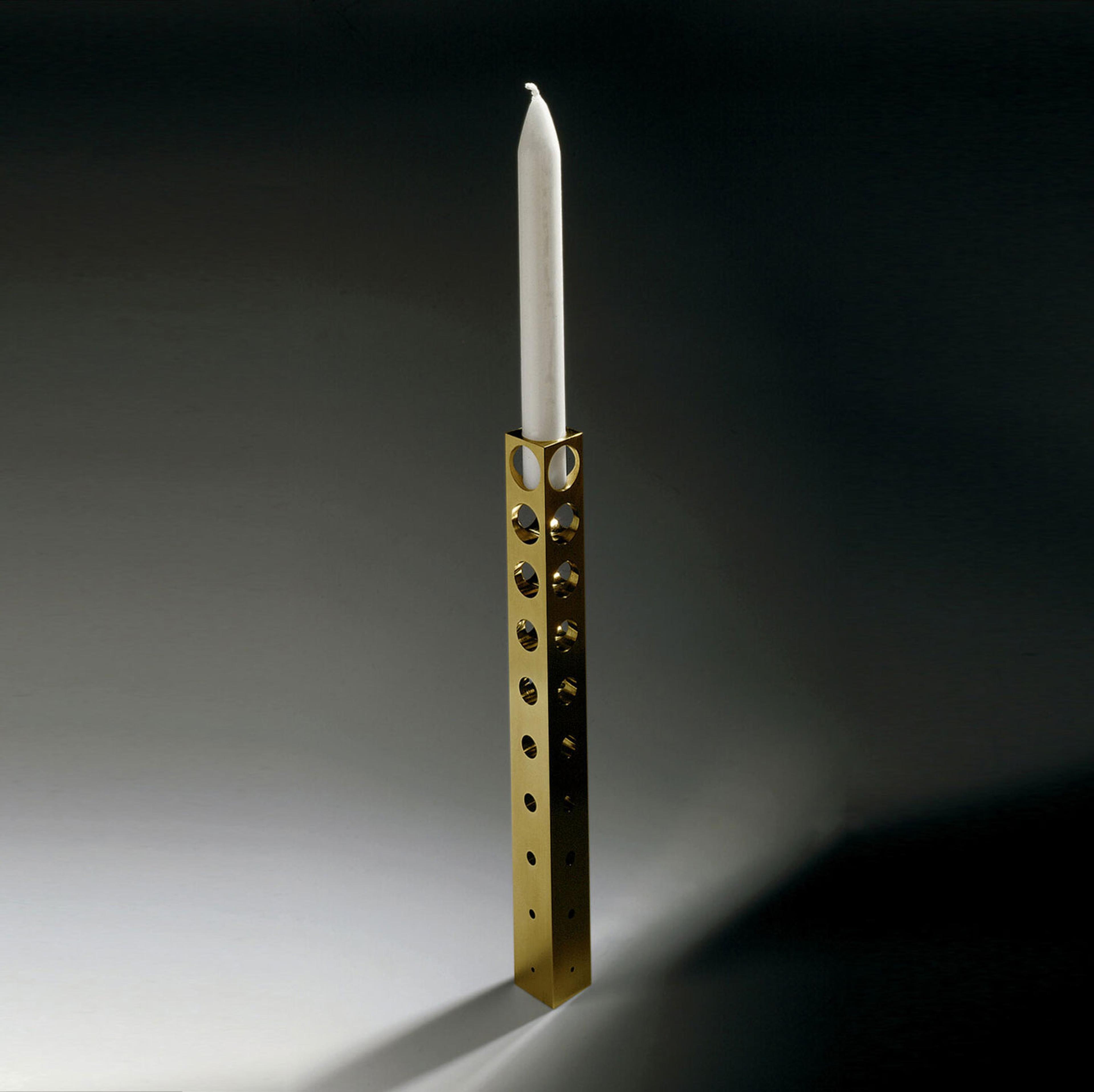 Designed in 1992, the Holes Collection's Silver Candle Holder of Gijs Bakker is a signed and numbered limited edition of 20. This piece belongs to significant institutional and private collections around the world. Bakker recently released a gold-plated brass iteration of the Candle with Holes design presented in a limited edition of 5.