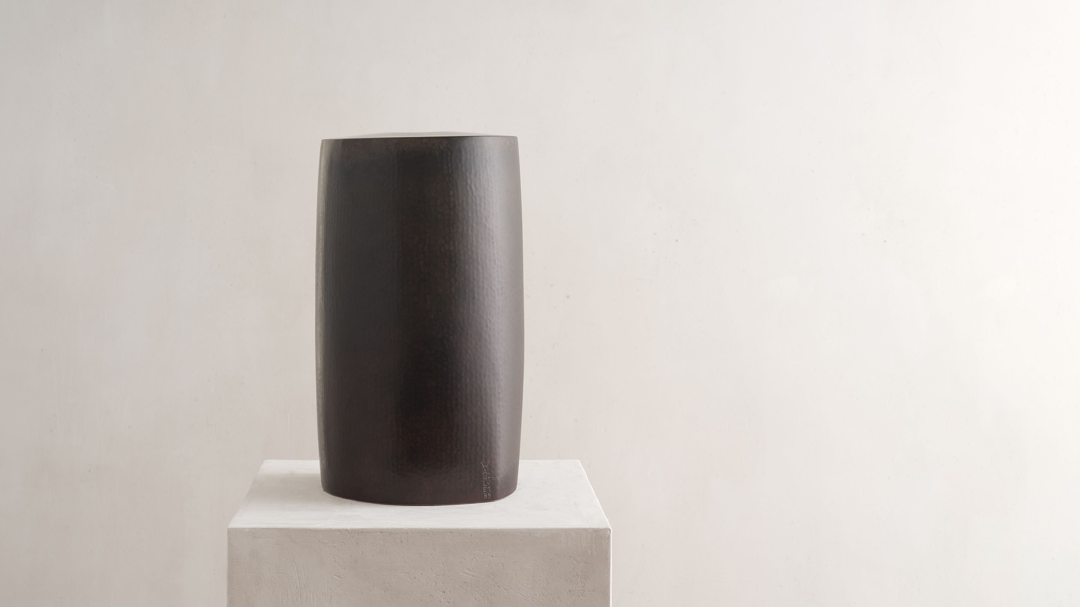 Wahlen’s initiation to metalsmithing materialized through dinanderie, a traditional copper-working technique perfected by medieval artisans in the Belgian manufacturing town of Dinant. The technique involves hammering, firing, and shaping a sheet of copper into a fluid three-dimensional object: a cauldron, a kettle, a pot. Wahlen soon immersed himself in an ongoing exploration of labor-intensive metalcrafts. The result is an array of illusive organic forms with highly tactile skins patinated and buffed with beeswax. His pieces create a cohesive ensemble of works of elegant simplicity that combine a feminine sensuality through lissome forms and a masculine presence through weight and materiality.