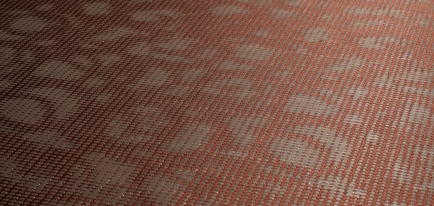 Like an illusion appearing in the middle of the desert, MIRAGE is a fading image of dots scattered across the textile. Color direction by Mae Engelgeer.