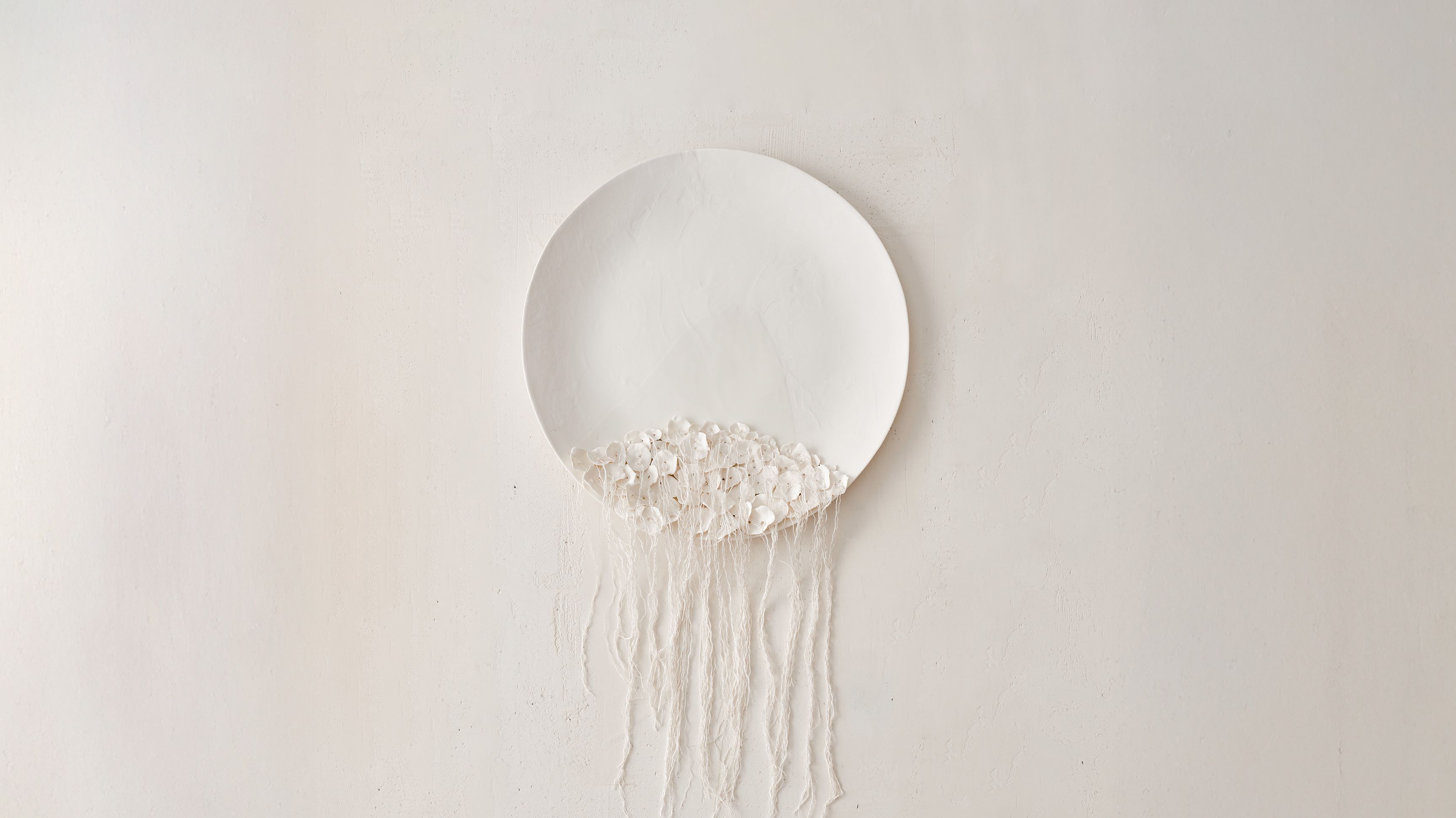 Fragility and impermanence stand at the core of Nesher’s work. Through cracks, cuts, and fragmented elements, her pieces embody a broken continuity — gestures toward fragmented memory and the quiet tensions of personal experience rendered in luminous white porcelain. She embraces the material’s inherent vulnerability, allowing surface cracking, fragmentation, and structural tension to become integral to each work’s character. In select pieces, elements are bound together with thread, emphasizing the delicate threshold between strength and fragility.