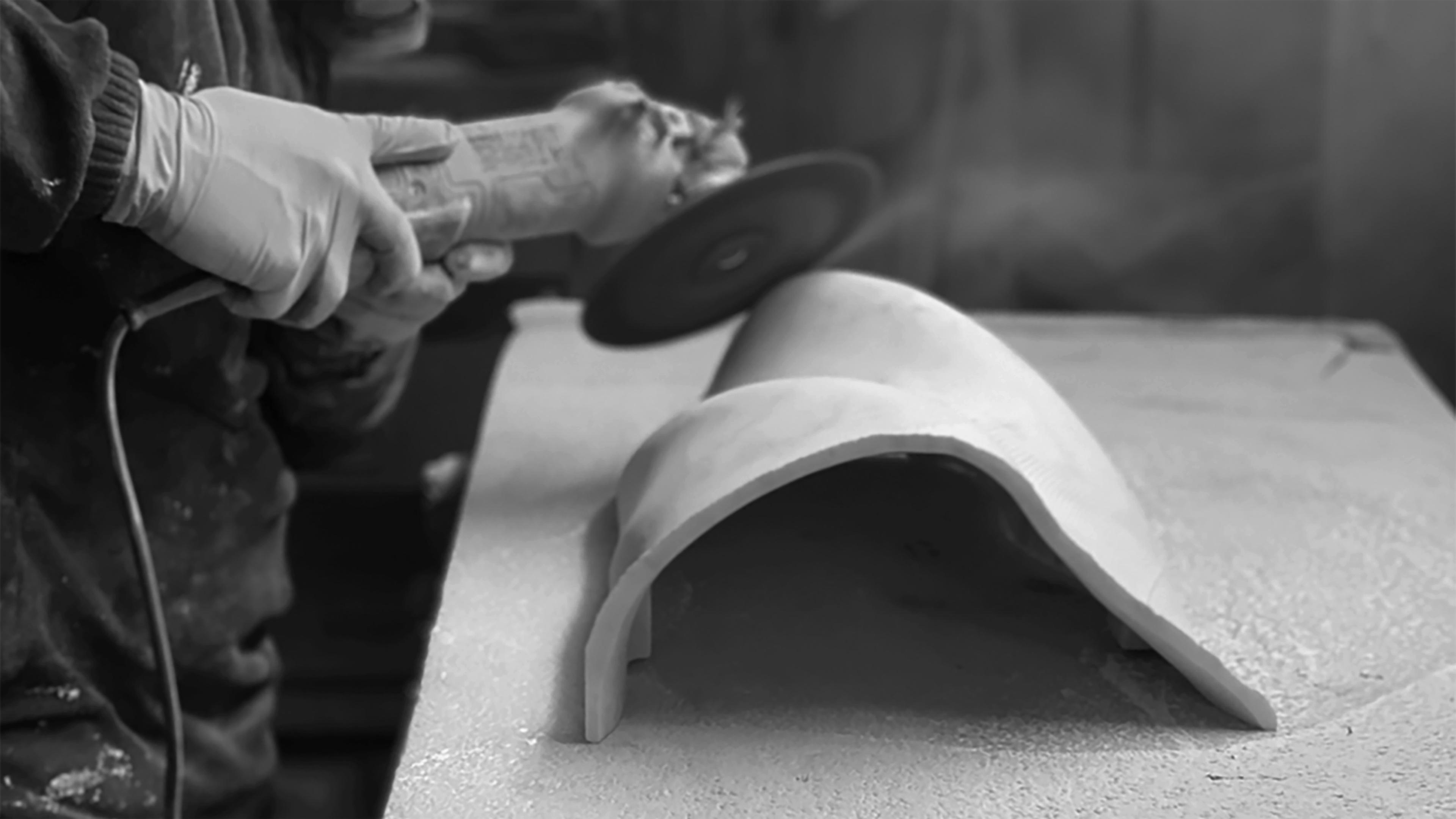 The designer’s editions with Ateliers Courbet are sculptural, abstract expressions of the human body drawing inspiration from the second-century Greek and Roman sculptures of the human body. The designer has collaborated with artisans throughout Europe in marble, travertine, and bronze to suspend the movement of his design forms.