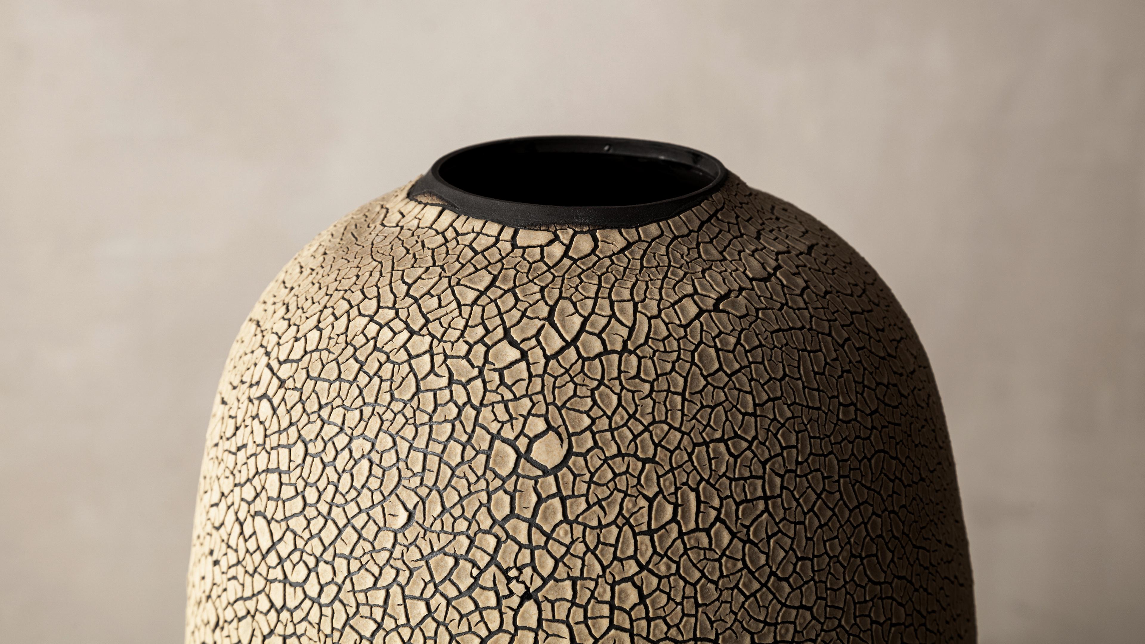 Working between Paris and Brittany, Swami has been drawn to the tactile and visual experience of clay since her early childhood. It was not until 2009 that she chose to dedicate her life to mastering ceramic techniques. In 2010 Swami received her certificate of professional competence in pottery. As she pursues her study of the material through ongoing experimentations at her studio, the artist has since developed an extensive body of work involving various time-honored techniques picked up from ceramic traditions from around the world. Swami embraces the beautiful and poetic imperfections resulting from controlled incidents and weaknesses inherent to the materials. Her work is deeply informed by the natural characteristics of the Earth; from the surface down to its deeper stratus. Swami mimics the parched, cracked and fractured textures found in nature, enabling and emphasizing injured, layered surfaces.