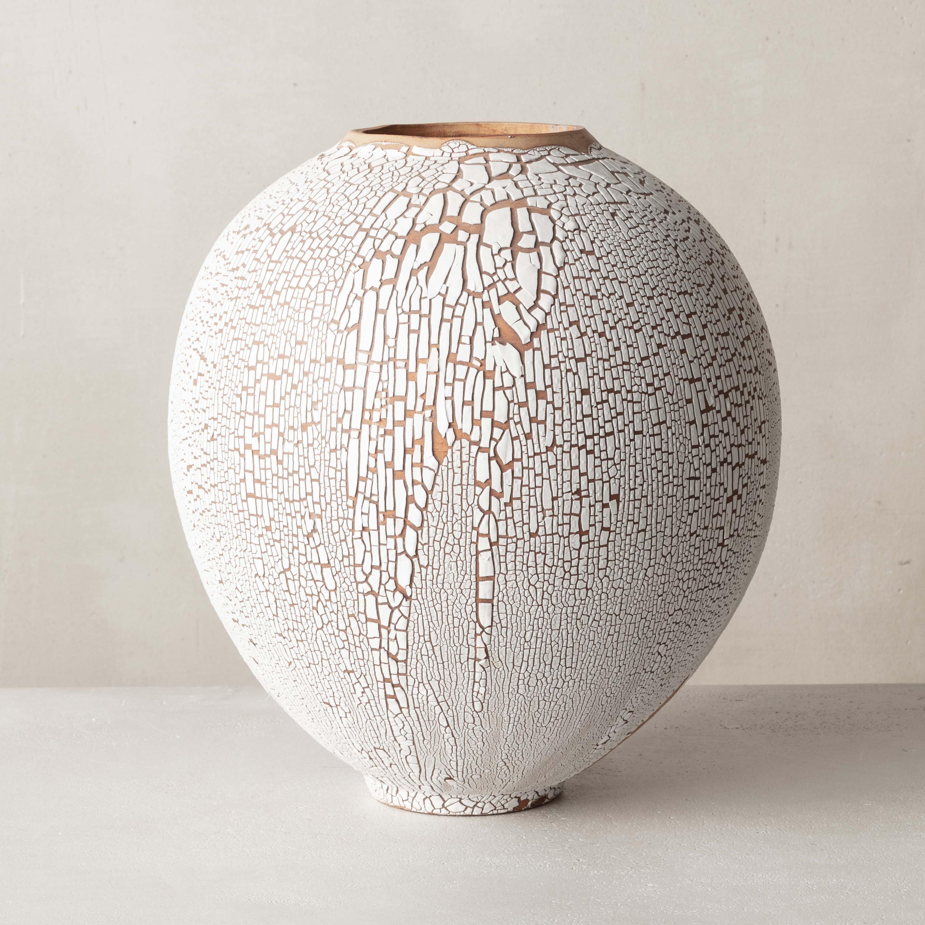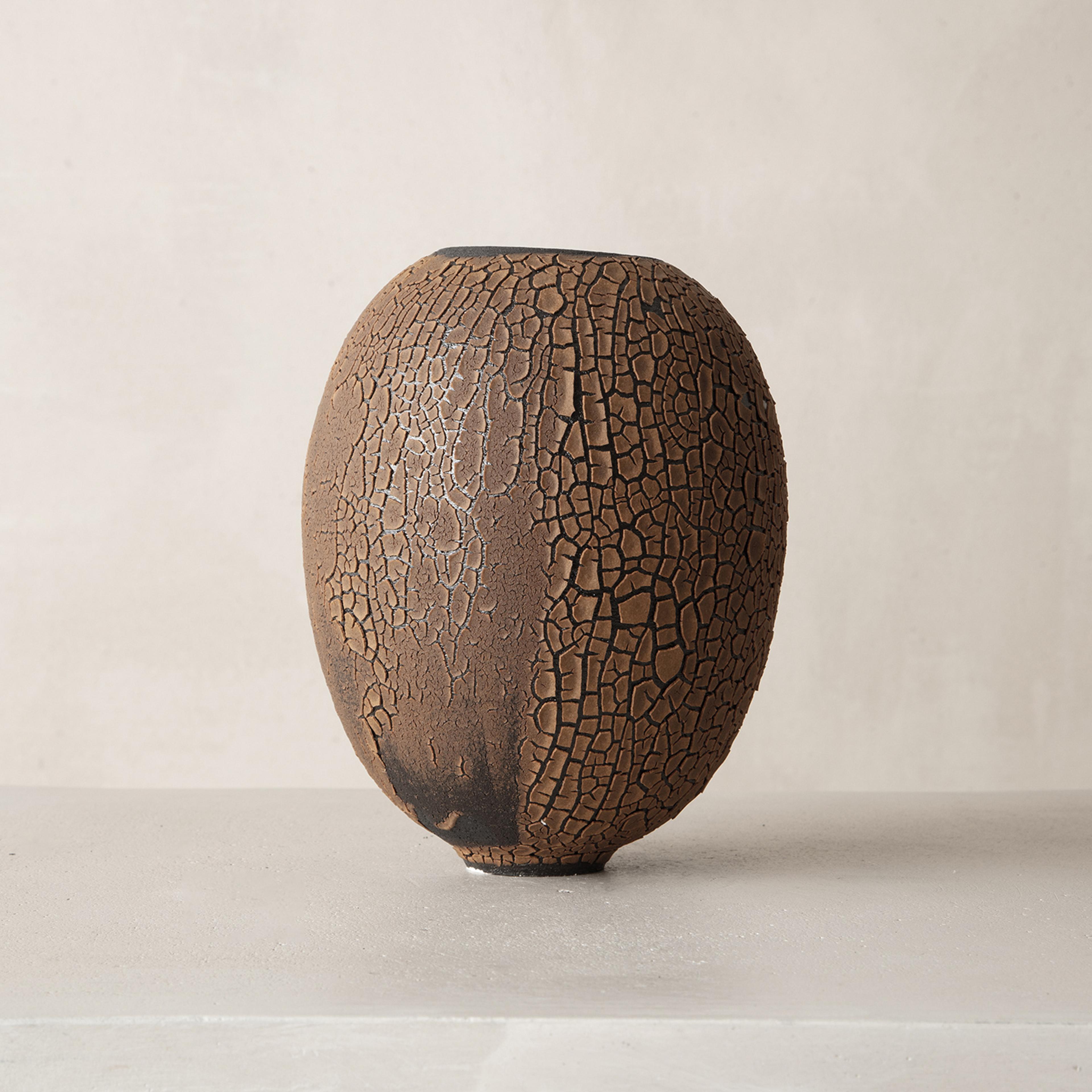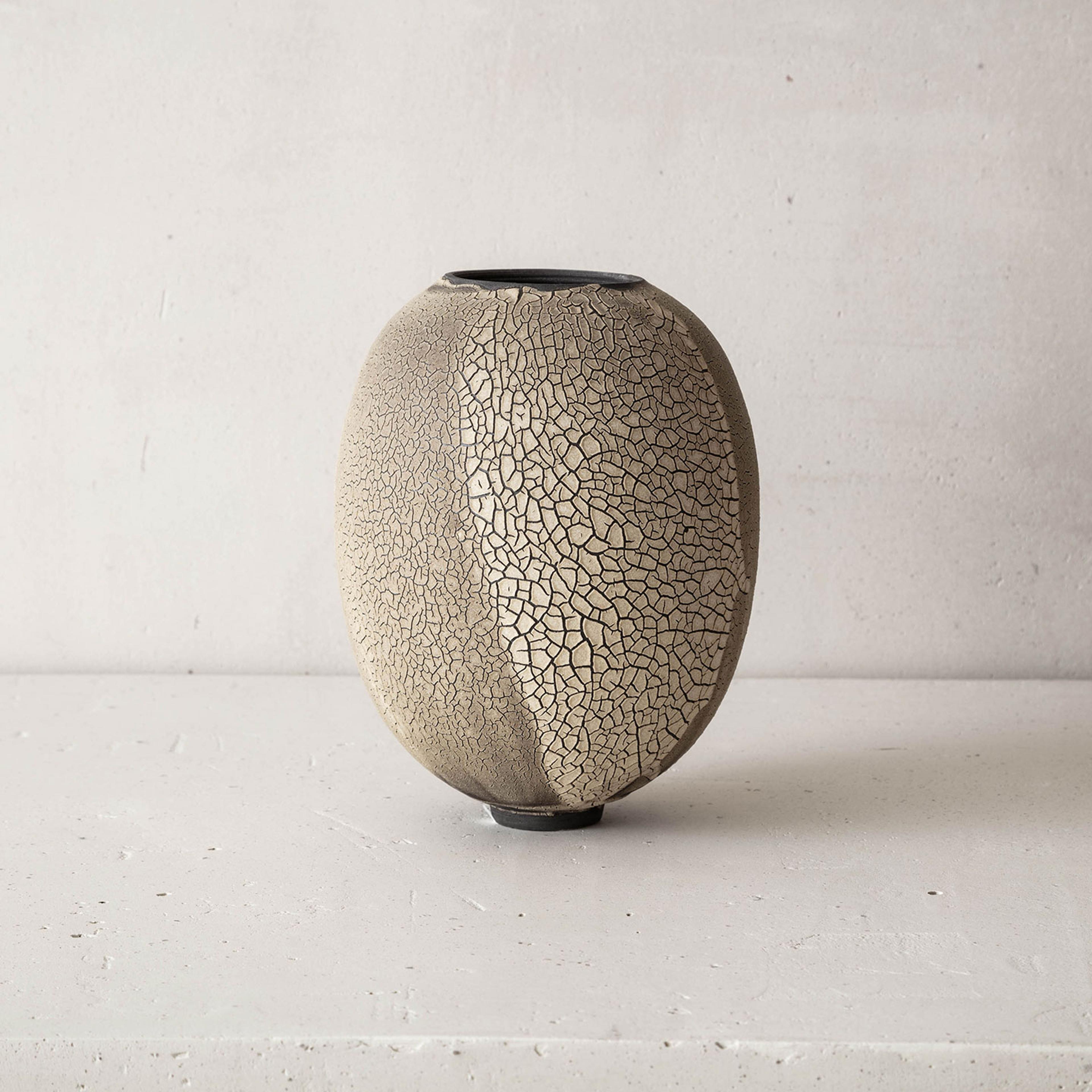 Working between Paris and Brittany, Swami has been drawn to the tactile and visual experience of clay since her early childhood. It was not until 2009 that she chose to dedicate her life to mastering ceramic techniques. In 2010 Swami received her certificate of professional competence in pottery. As she pursues her study of the material through ongoing experimentations at her studio, the artist has since developed an extensive body of work involving various time-honored techniques picked up from ceramic traditions from around the world. Swami embraces the beautiful and poetic imperfections resulting from controlled incidents and weaknesses inherent to the materials. Her work is deeply informed by the natural characteristics of the Earth; from the surface down to its deeper stratus. Swami mimics the parched, cracked and fractured textures found in nature, enabling and emphasizing injured, layered surfaces.