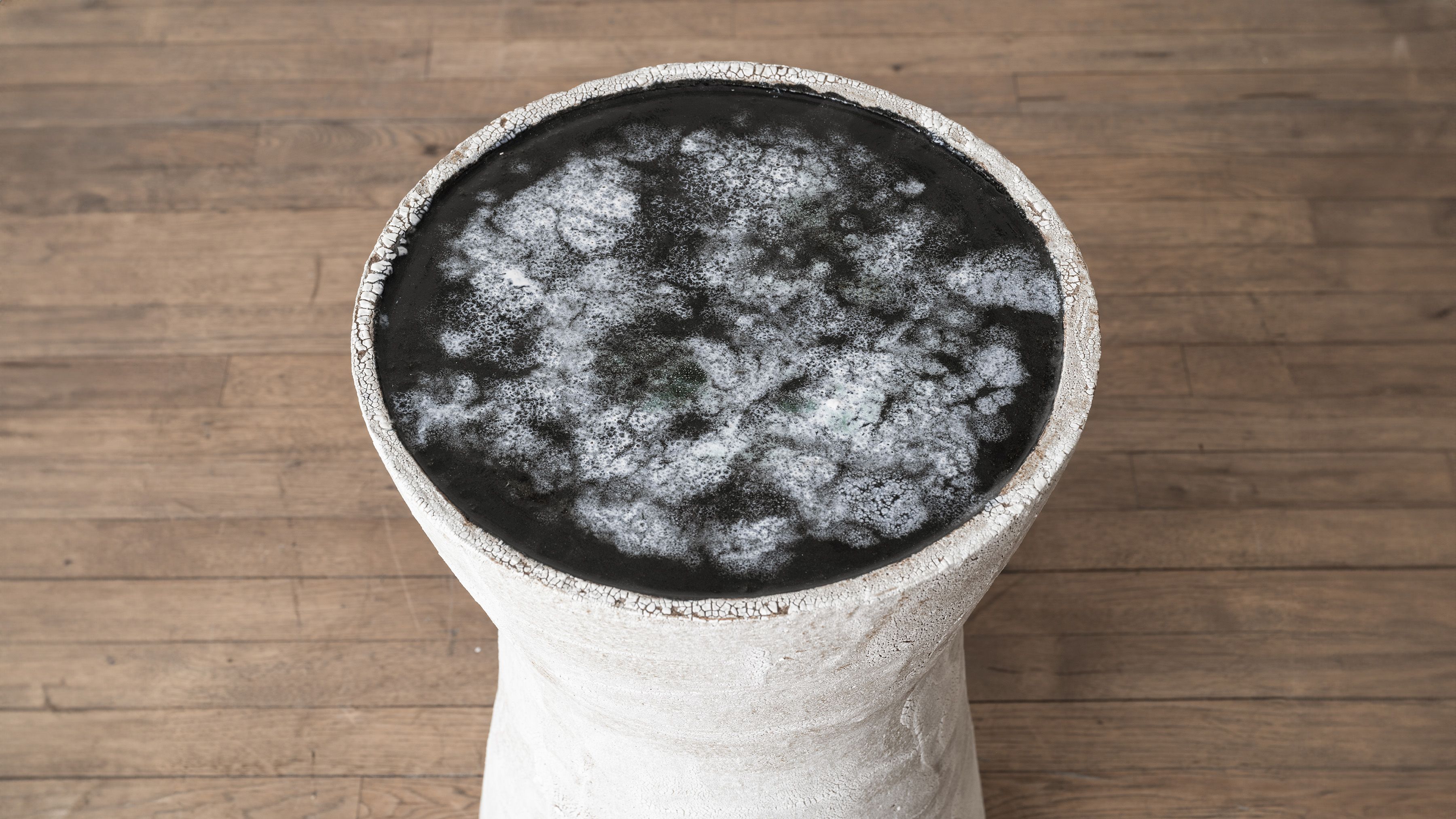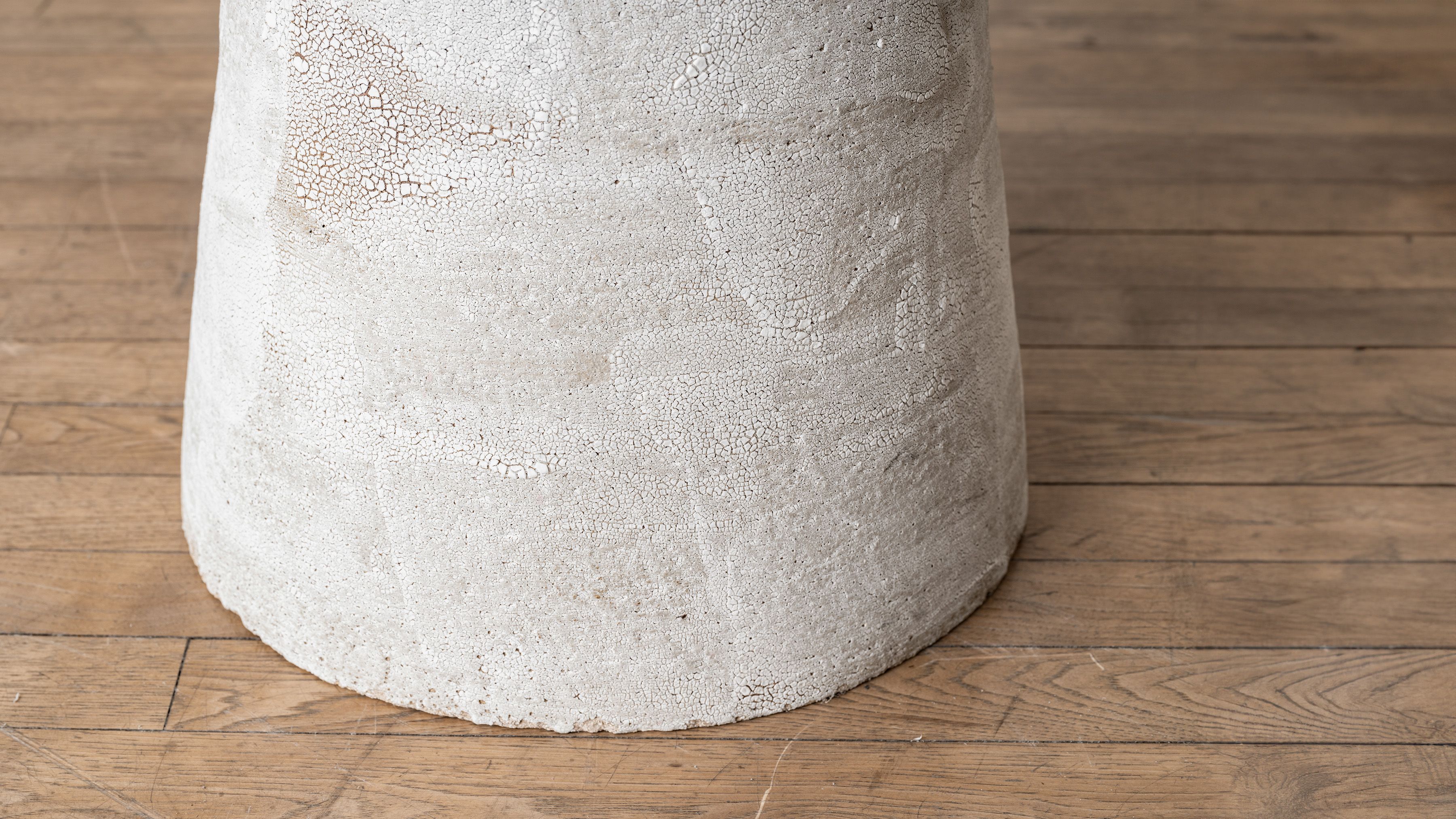 Working between Paris and Brittany, Swami has been drawn to the tactile and visual experience of clay since her early childhood. It was not until 2009 that she chose to dedicate her life to mastering ceramic techniques. In 2010 Swami received her certificate of professional competence in pottery. As she pursues her study of the material through ongoing experimentations at her studio, the artist has since developed an extensive body of work involving various time-honored techniques picked up from ceramic traditions from around the world. Swami embraces the beautiful and poetic imperfections resulting from controlled incidents and weaknesses inherent to the materials. Her work is deeply informed by the natural characteristics of the Earth; from the surface down to its deeper stratus. Swami mimics the parched, cracked and fractured textures found in nature, enabling and emphasizing injured, layered surfaces.