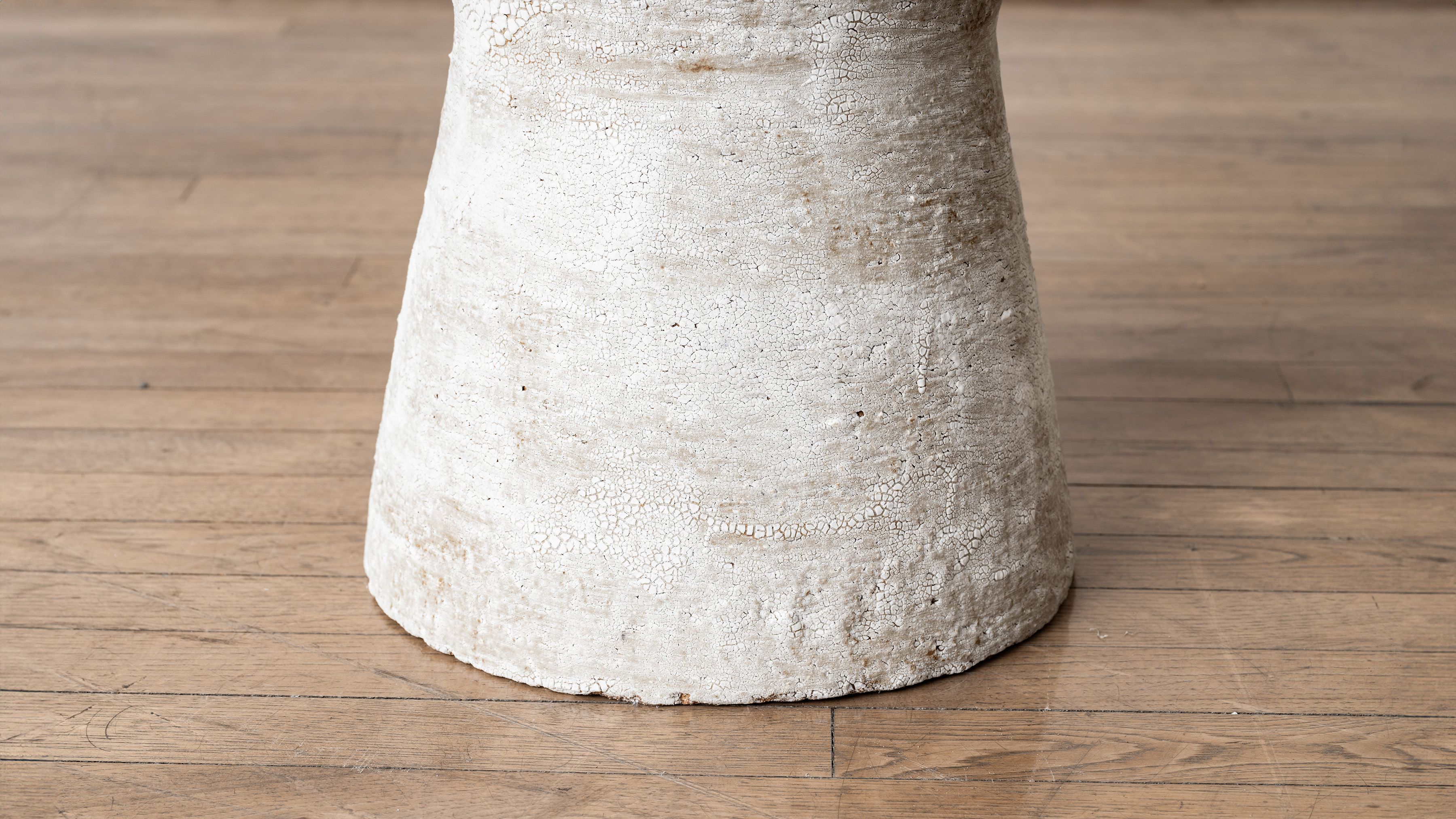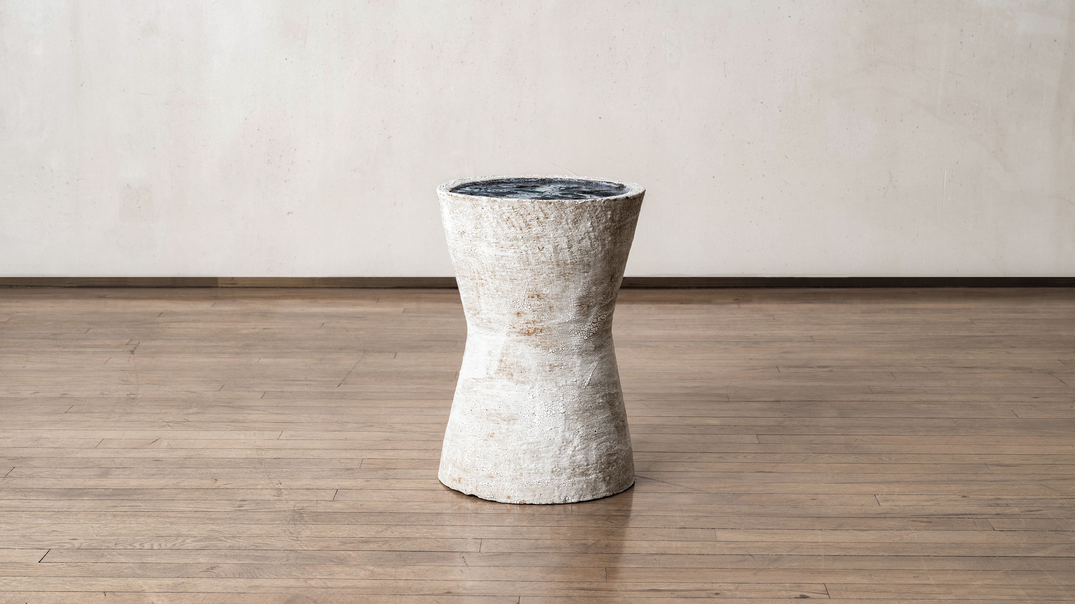 Working between Paris and Brittany, Swami has been drawn to the tactile and visual experience of clay since her early childhood. It was not until 2009 that she chose to dedicate her life to mastering ceramic techniques. In 2010 Swami received her certificate of professional competence in pottery. As she pursues her study of the material through ongoing experimentations at her studio, the artist has since developed an extensive body of work involving various time-honored techniques picked up from ceramic traditions from around the world. Swami embraces the beautiful and poetic imperfections resulting from controlled incidents and weaknesses inherent to the materials. Her work is deeply informed by the natural characteristics of the Earth; from the surface down to its deeper stratus. Swami mimics the parched, cracked and fractured textures found in nature, enabling and emphasizing injured, layered surfaces.