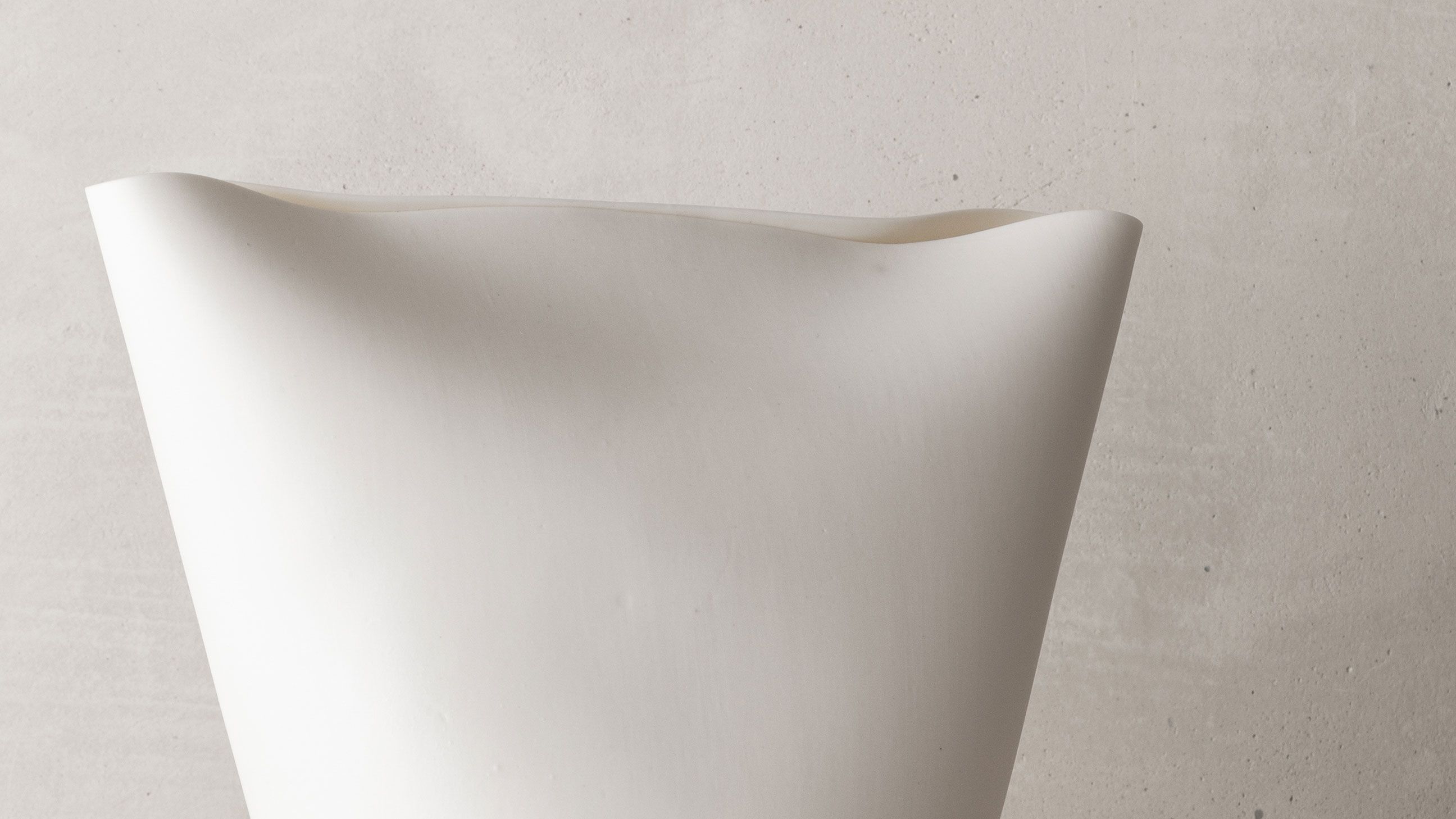 Highly informed by visual arts, including both painting and drawing, her porcelain works explore the contrasts of emphasized organic textures on soft skin-like surfaces. Each of her pieces defies the materiality of the porcelain, stretching the matter to its thinnest; their translucent skin enthralls the natural light, while their silhouettes evoke the artist’s gesture as they quietly embody a movement. All whilst refining her technical dexterity and her artistic signature, Glenday has grown a cohesive body of work comprised of delicate vessels that accentuate the porcelain’s lightness and translucent quality.