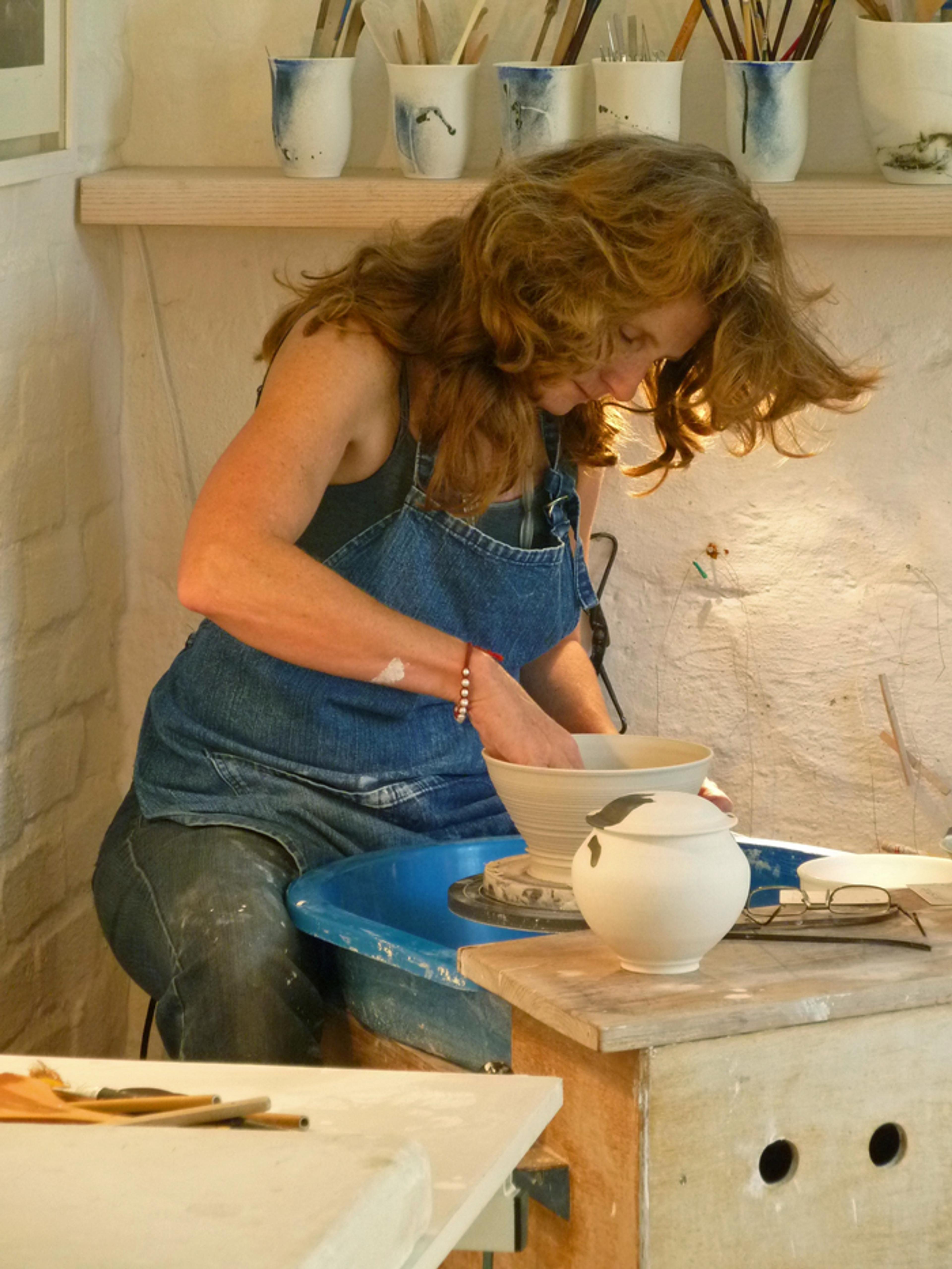 Employing a variety of forming methods, most notably wheel throwing and occasionally slip casting, she sees the vessel as a circular canvas in movement. Inviting color and light in the pure matter, she introduces minerals and oxides often gleaned directly from the natural world, such as mud from the Niger River or clay from the Cedarburg, as her “paint.”