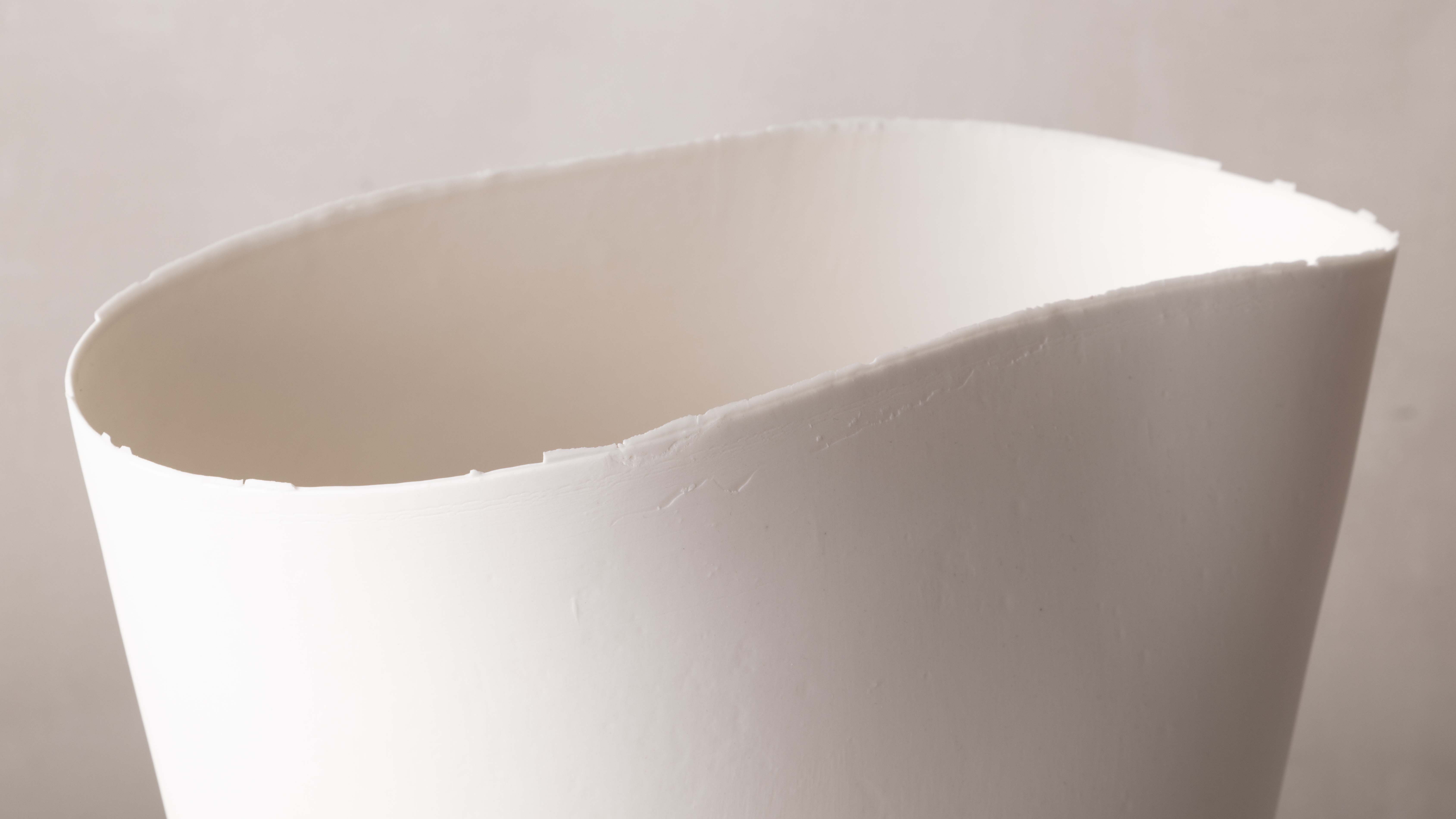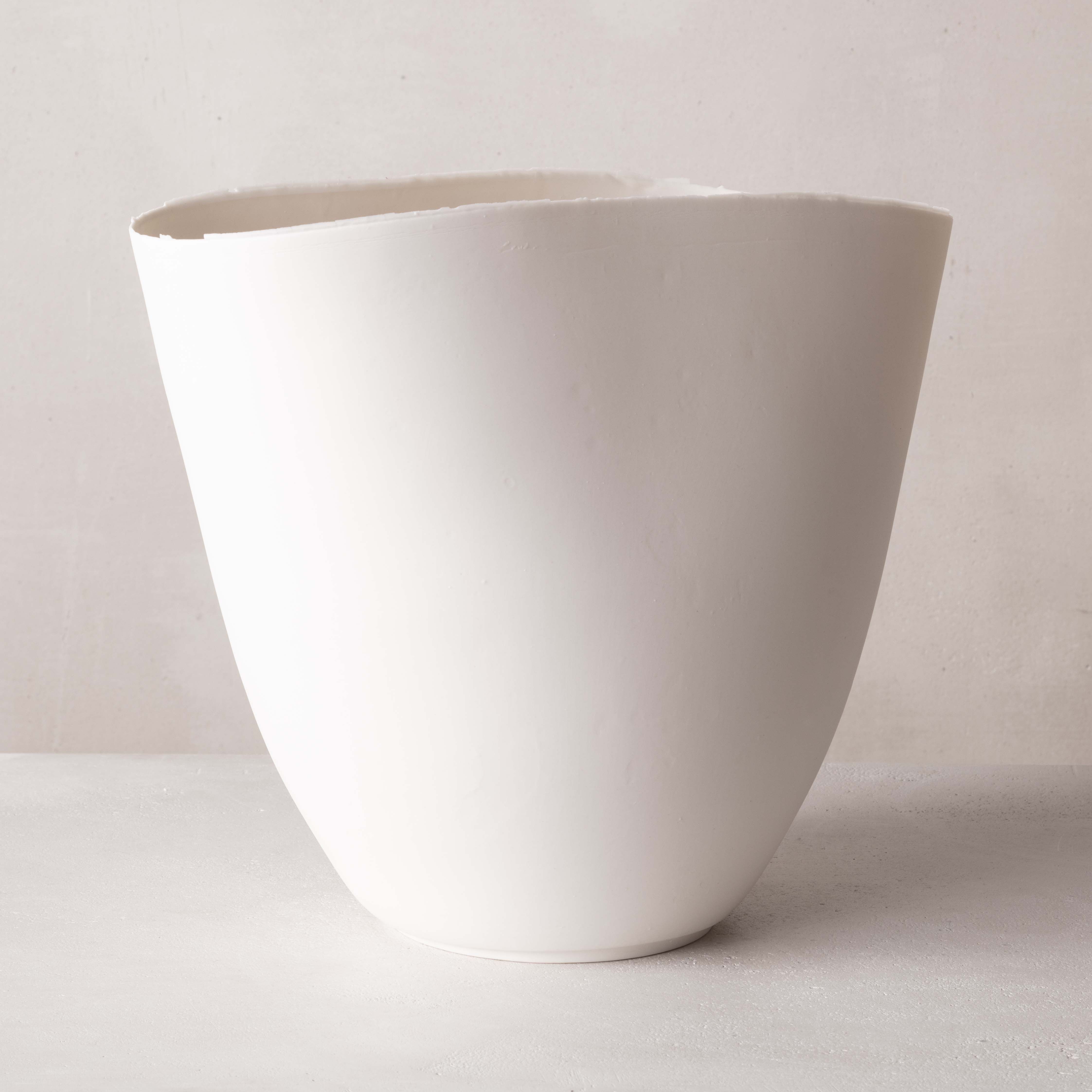Highly informed by visual arts, including both painting and drawing, her porcelain works explore the contrasts of emphasized organic textures on soft skin-like surfaces. Each of her pieces defies the materiality of the porcelain, stretching the matter to its thinnest; their translucent skin enthralls the natural light, while their silhouettes evoke the artist’s gesture as they quietly embody a movement. All whilst refining her technical dexterity and her artistic signature, Glenday has grown a cohesive body of work comprised of delicate vessels that accentuate the porcelain’s lightness and translucent quality.