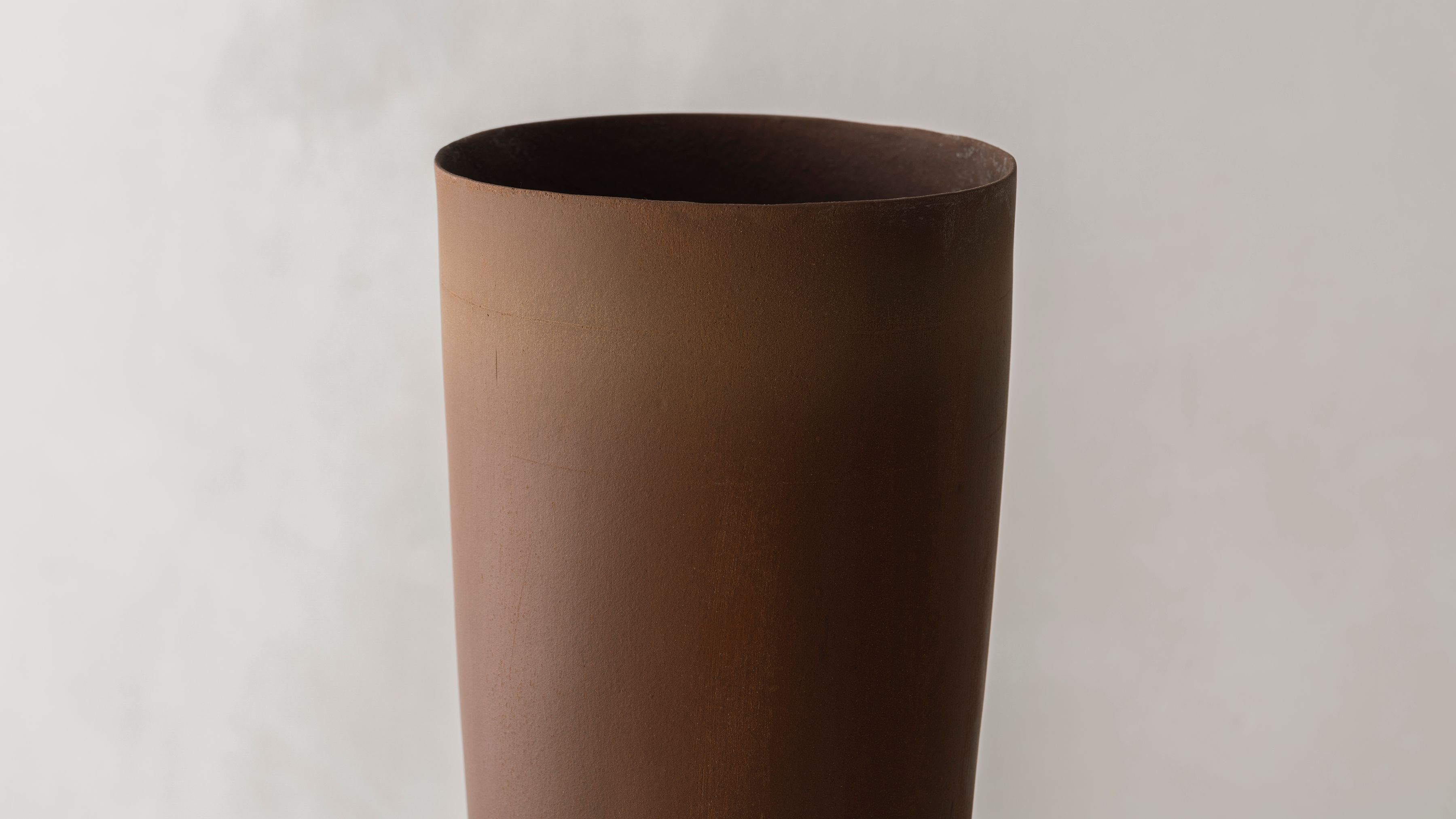 Employing a variety of forming methods, most notably wheel throwing and occasionally slip casting, she sees the vessel as a circular canvas in movement. Inviting color and light in the pure matter, she introduces minerals and oxides often gleaned directly from the natural world, such as mud from the Niger River or clay from the Cedarburg, as her “paint.”