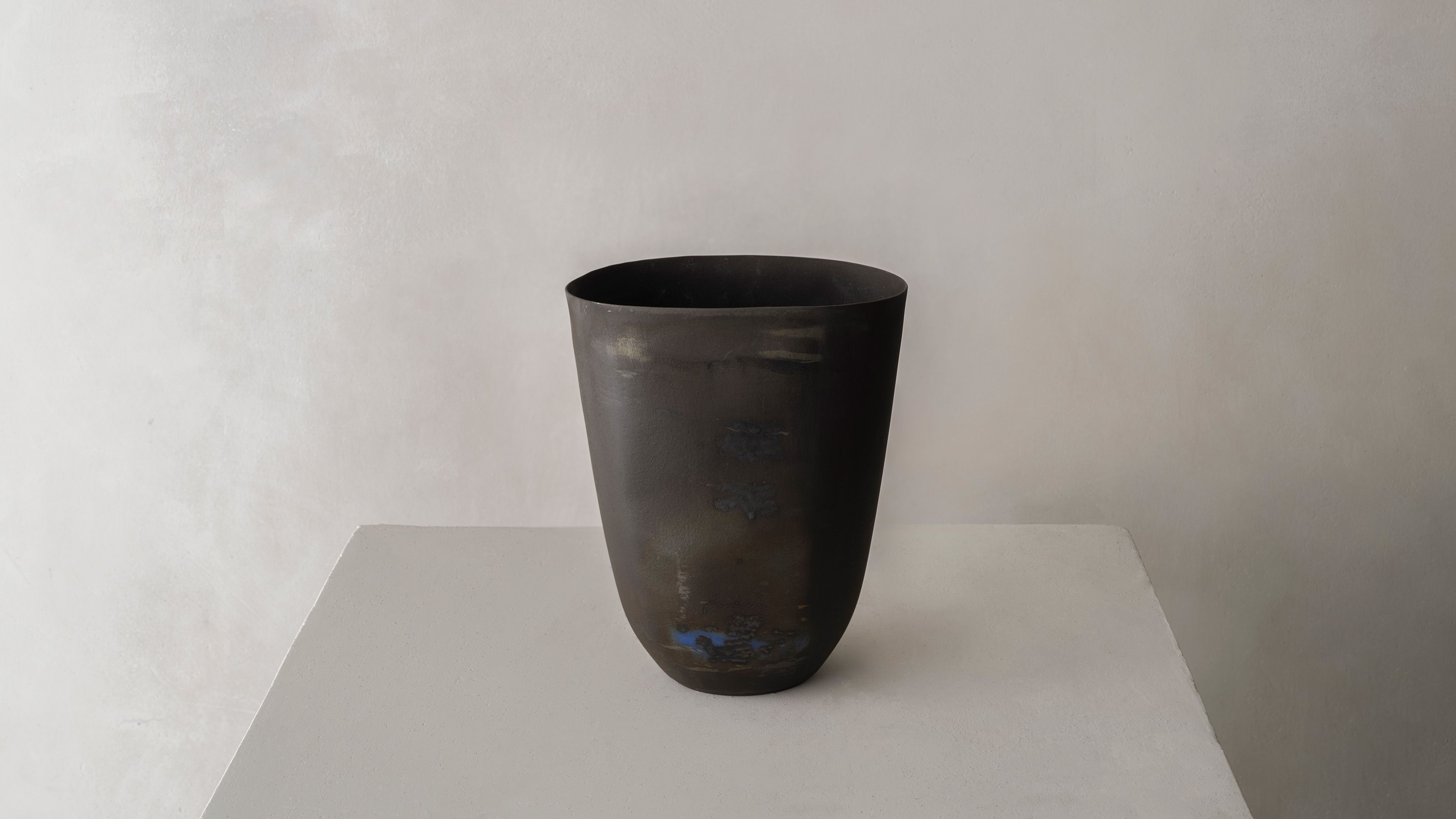 Employing a variety of forming methods, most notably wheel throwing and occasionally slip casting, she sees the vessel as a circular canvas in movement. Inviting color and light in the pure matter, she introduces minerals and oxides often gleaned directly from the natural world, such as mud from the Niger River or clay from the Cedarburg, as her “paint.”