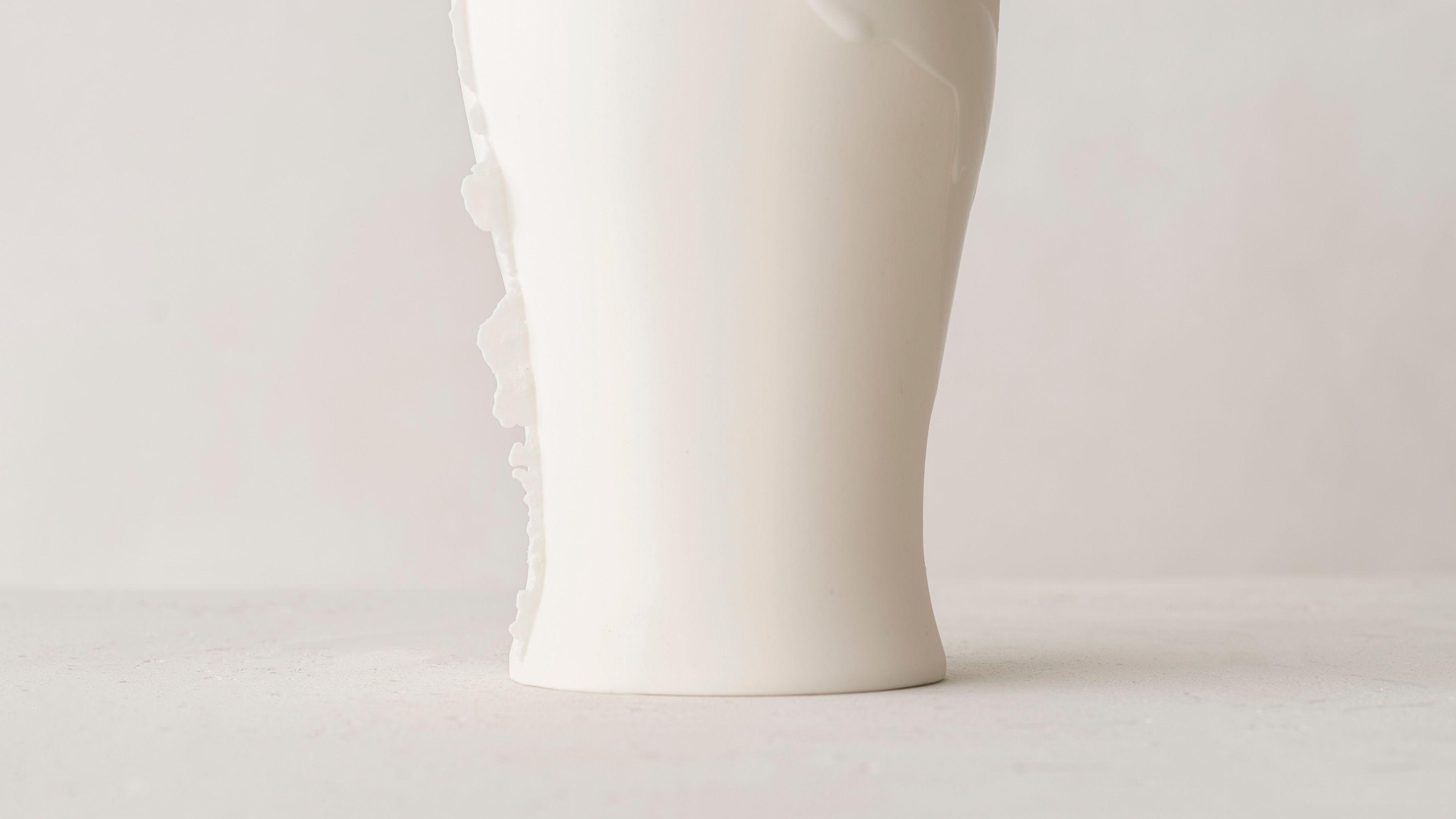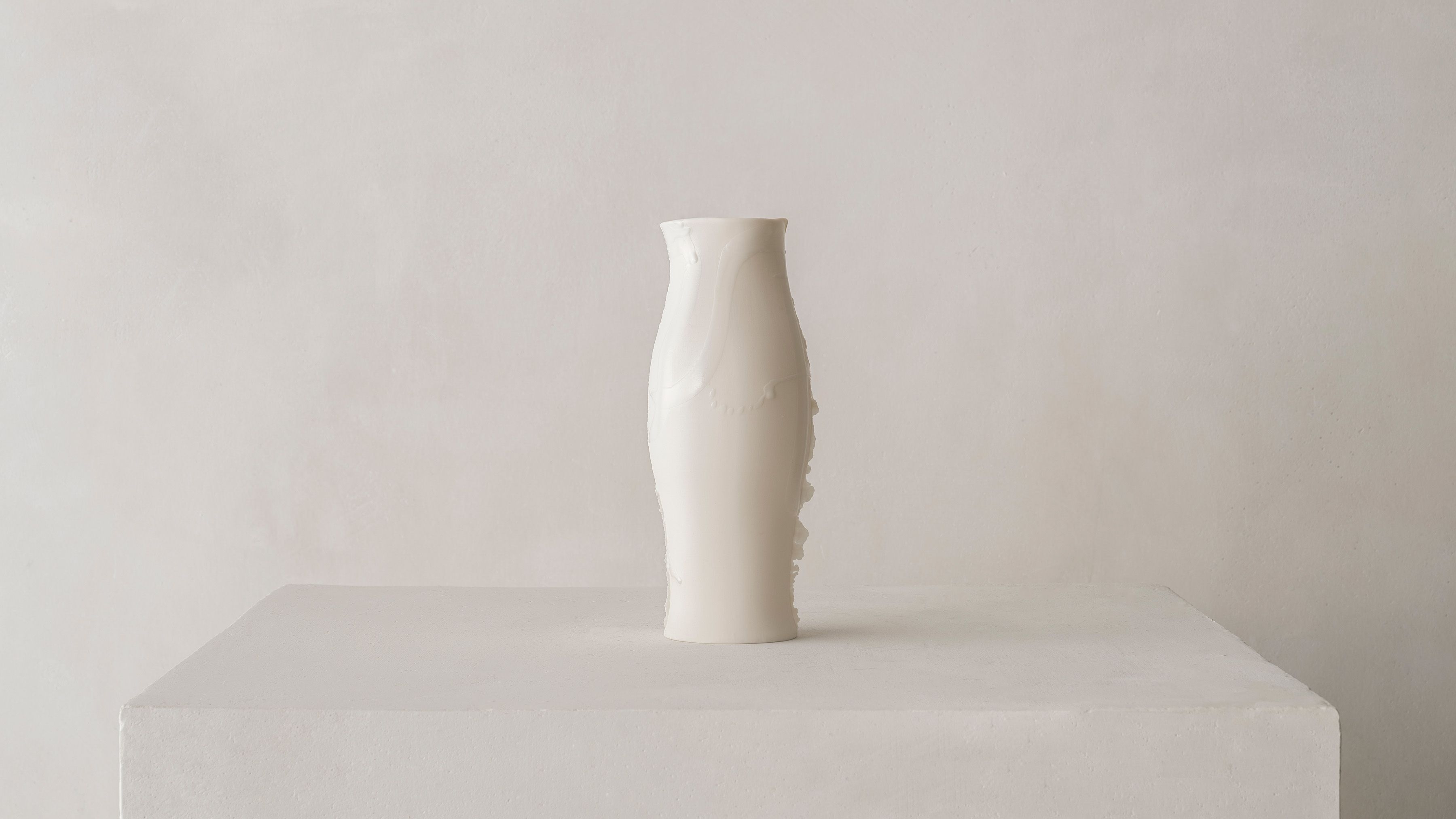 Highly informed by visual arts, including both painting and drawing, her porcelain works explore the contrasts of emphasized organic textures on soft skin-like surfaces. Each of her pieces defies the materiality of the porcelain, stretching the matter to its thinnest; their translucent skin enthralls the natural light, while their silhouettes evoke the artist’s gesture as they quietly embody a movement. All whilst refining her technical dexterity and her artistic signature, Glenday has grown a cohesive body of work comprised of delicate vessels that accentuate the porcelain’s lightness and translucent quality.