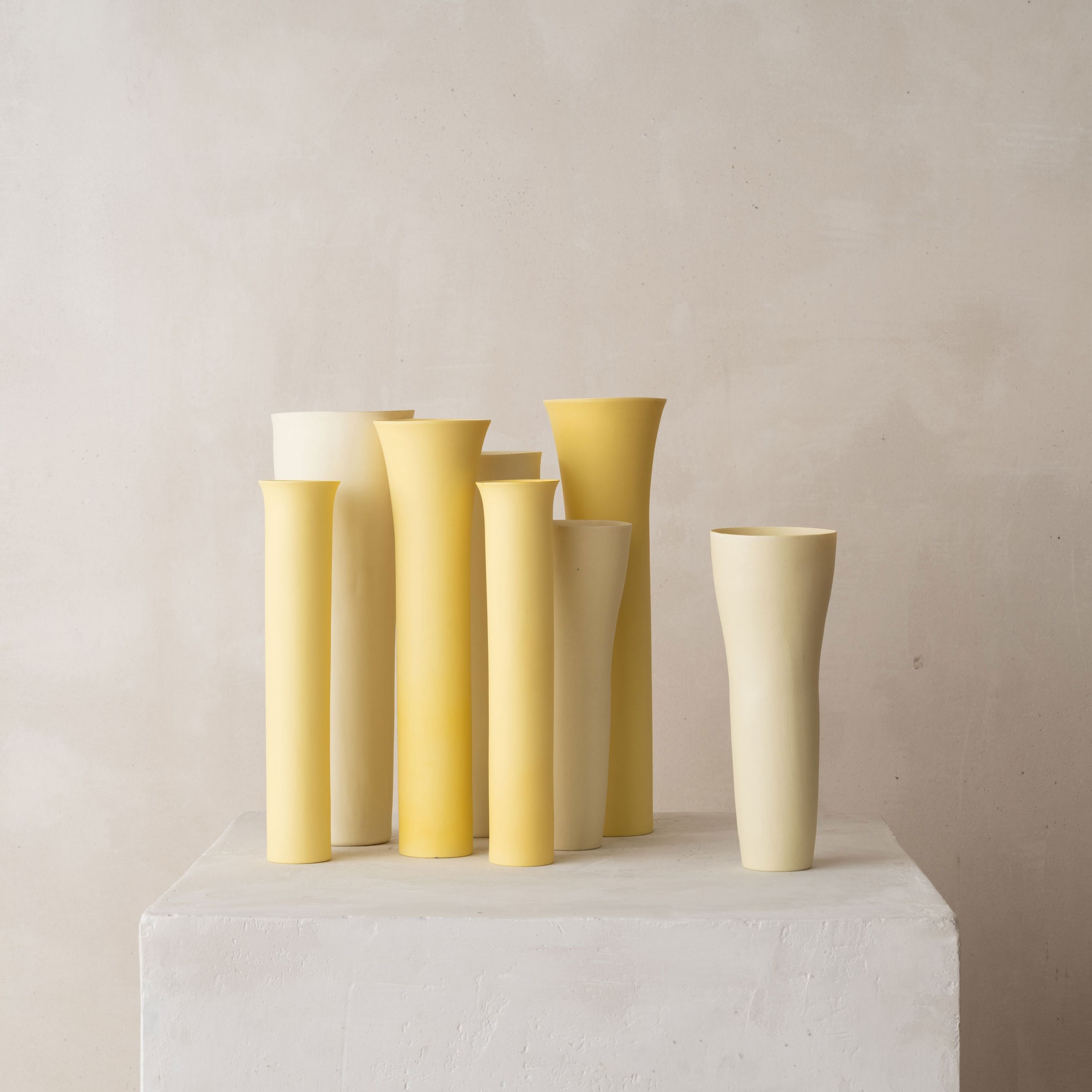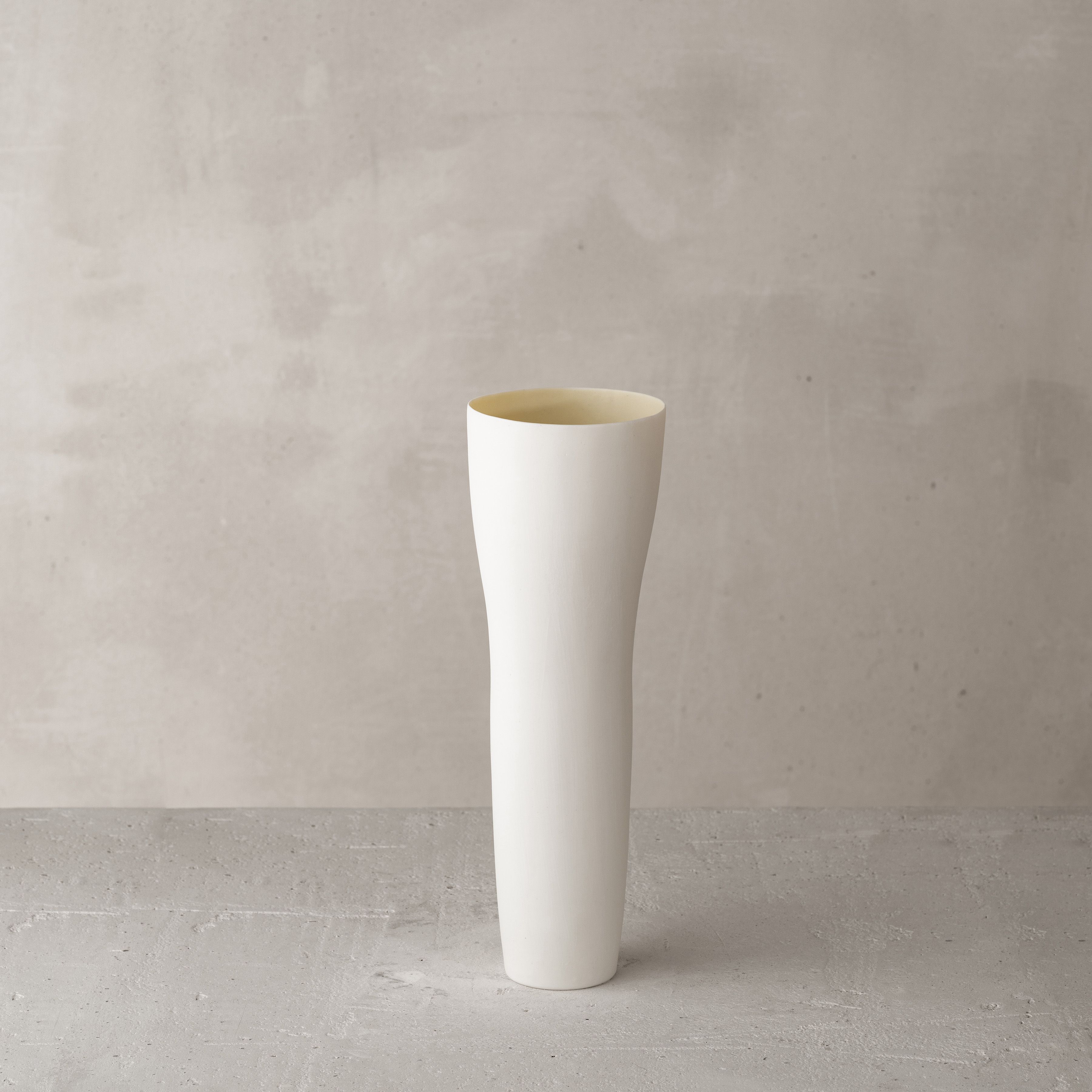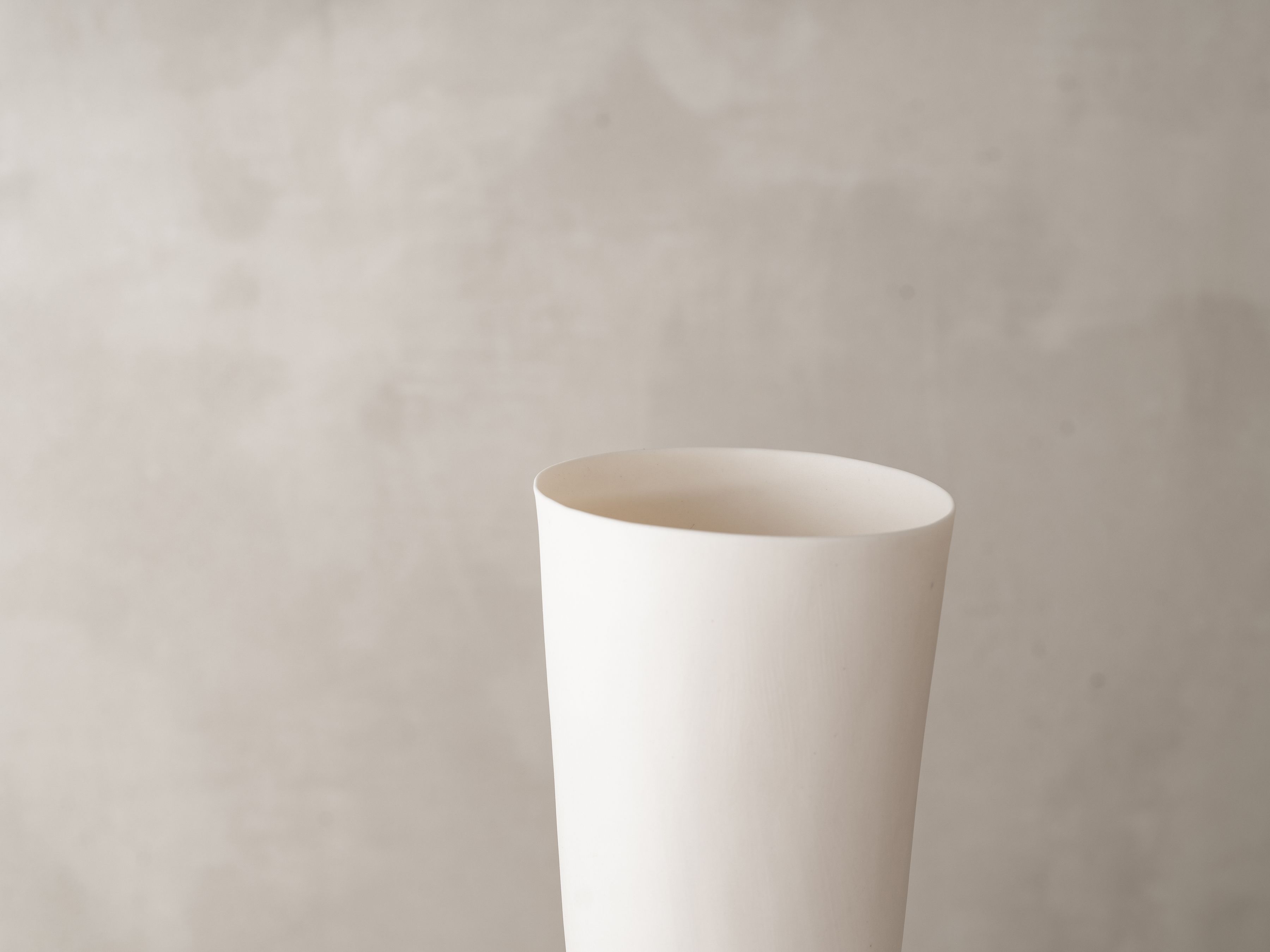 Highly informed by visual arts, including both painting and drawing, her porcelain works explore the contrasts of emphasized organic textures on soft skin-like surfaces. Each of her pieces defies the materiality of the porcelain, stretching the matter to its thinnest; their translucent skin enthralls the natural light, while their silhouettes evoke the artist’s gesture as they quietly embody a movement. All whilst refining her technical dexterity and her artistic signature, Glenday has grown a cohesive body of work comprised of delicate vessels that accentuate the porcelain’s lightness and translucent quality.