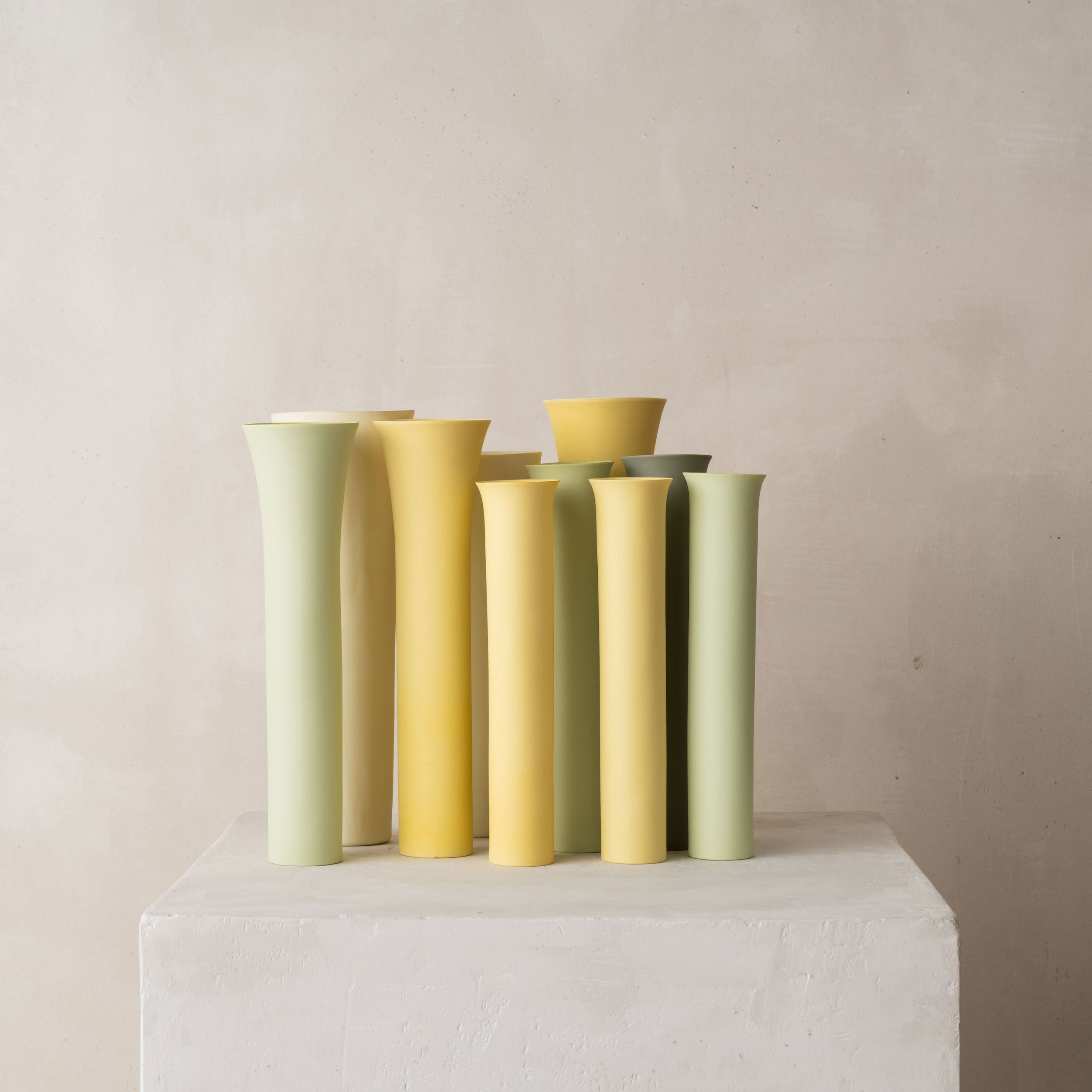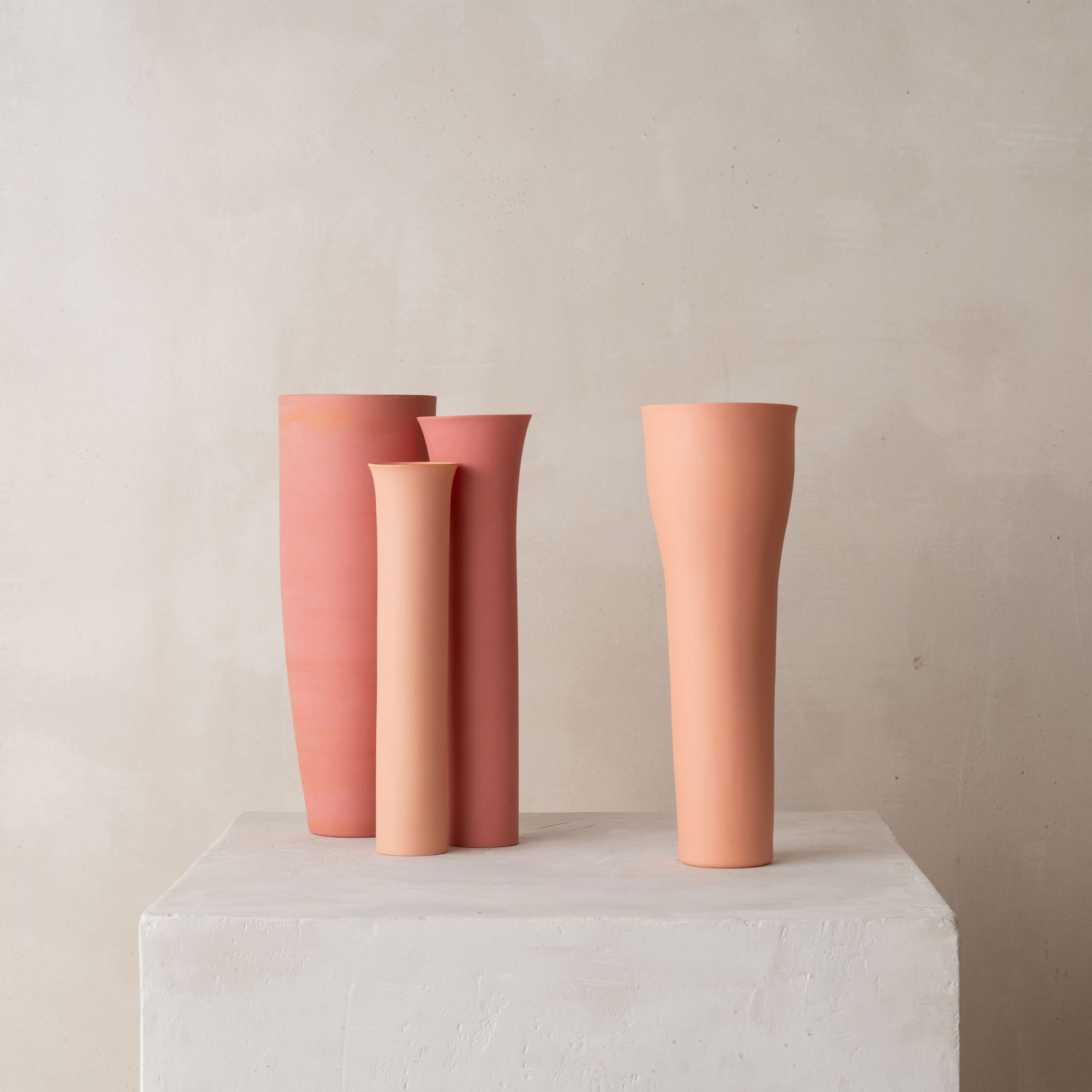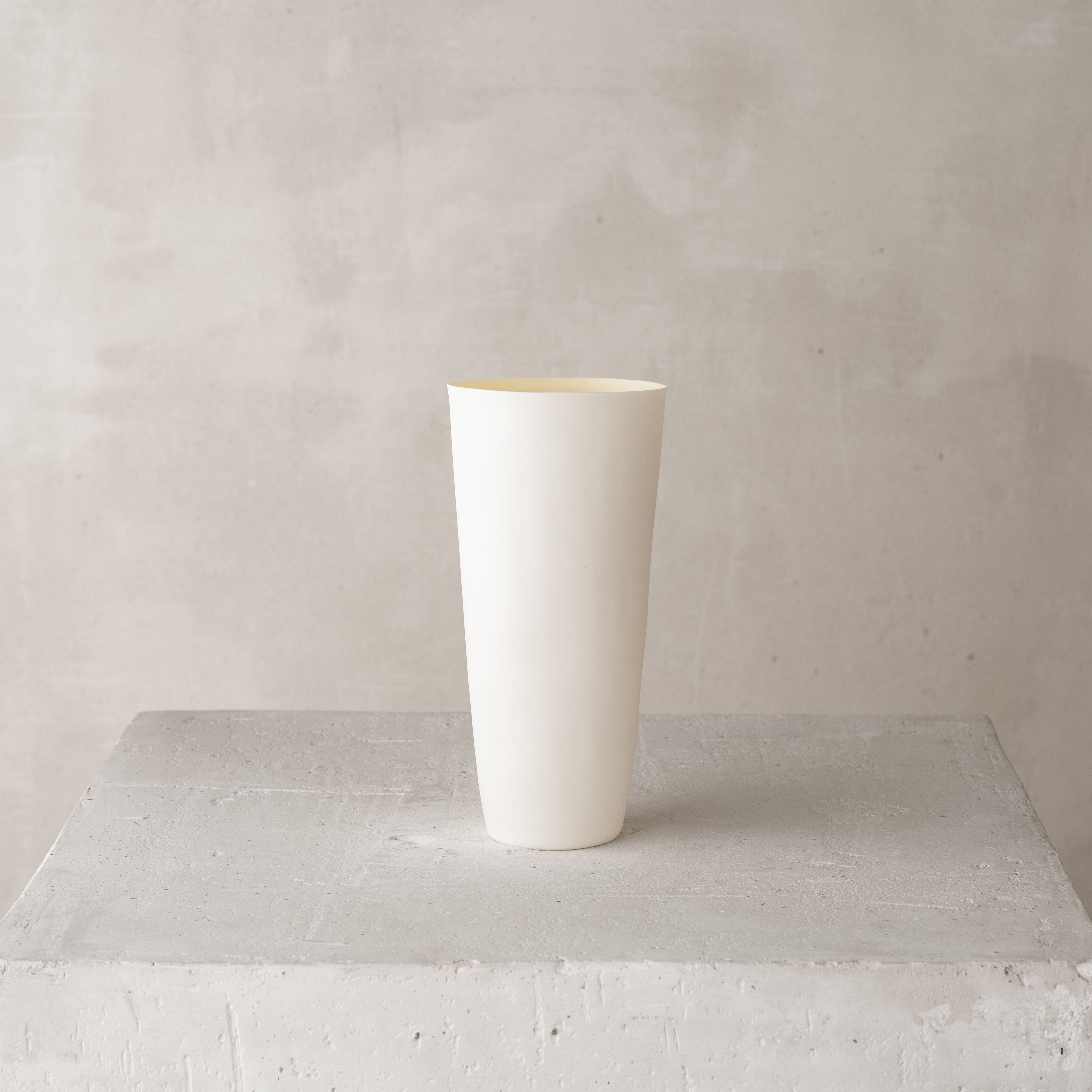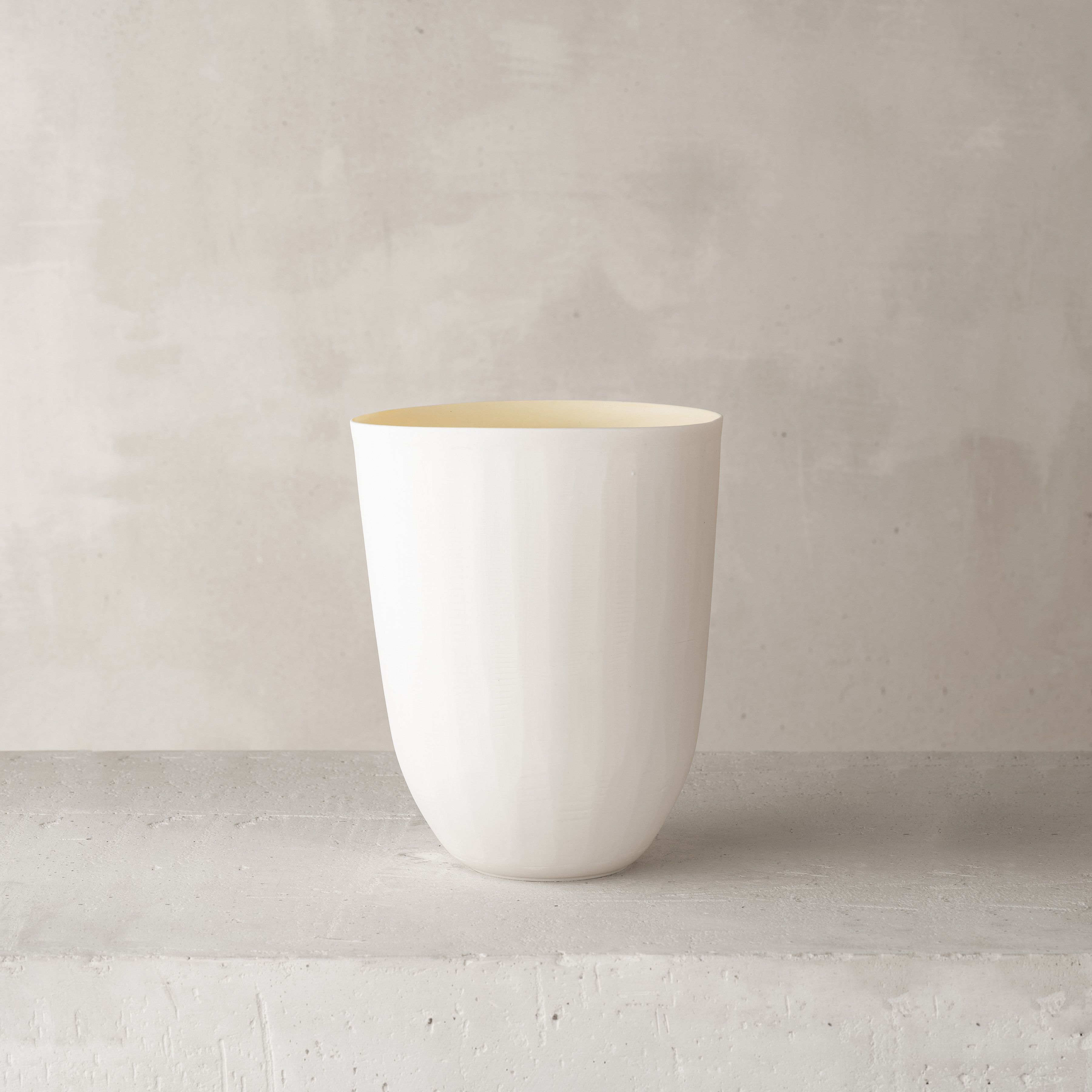 Highly informed by visual arts, including both painting and drawing, her porcelain works explore the contrasts of emphasized organic textures on soft skin-like surfaces. Each of her pieces defies the materiality of the porcelain, stretching the matter to its thinnest; their translucent skin enthralls the natural light, while their silhouettes evoke the artist’s gesture as they quietly embody a movement. All whilst refining her technical dexterity and her artistic signature, Glenday has grown a cohesive body of work comprised of delicate vessels that accentuate the porcelain’s lightness and translucent quality.