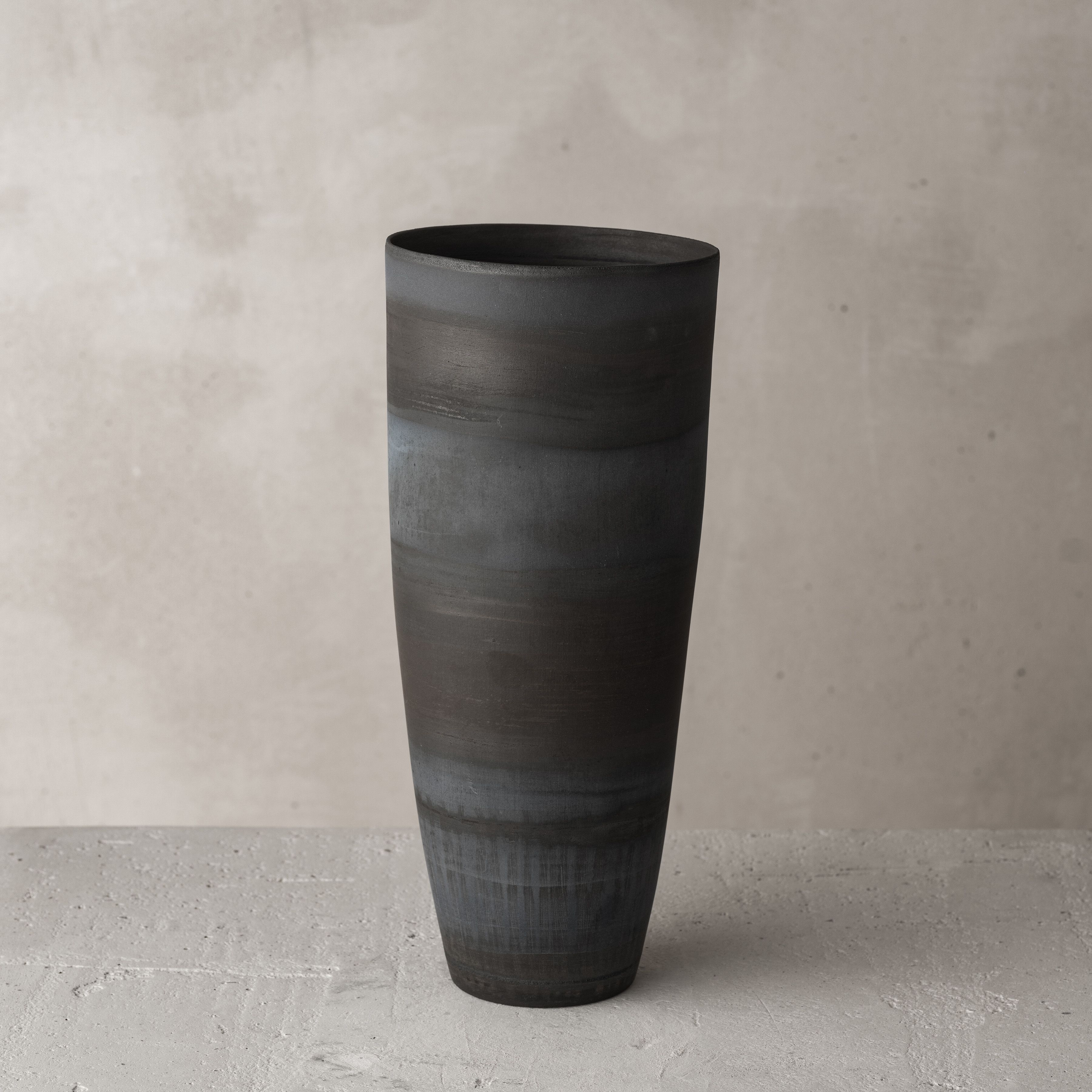 Employing a variety of forming methods, most notably wheel throwing and occasionally slip casting, she sees the vessel as a circular canvas in movement. Inviting color and light in the pure matter, she introduces minerals and oxides often gleaned directly from the natural world, such as mud from the Niger River or clay from the Cedarburg, as her “paint.”