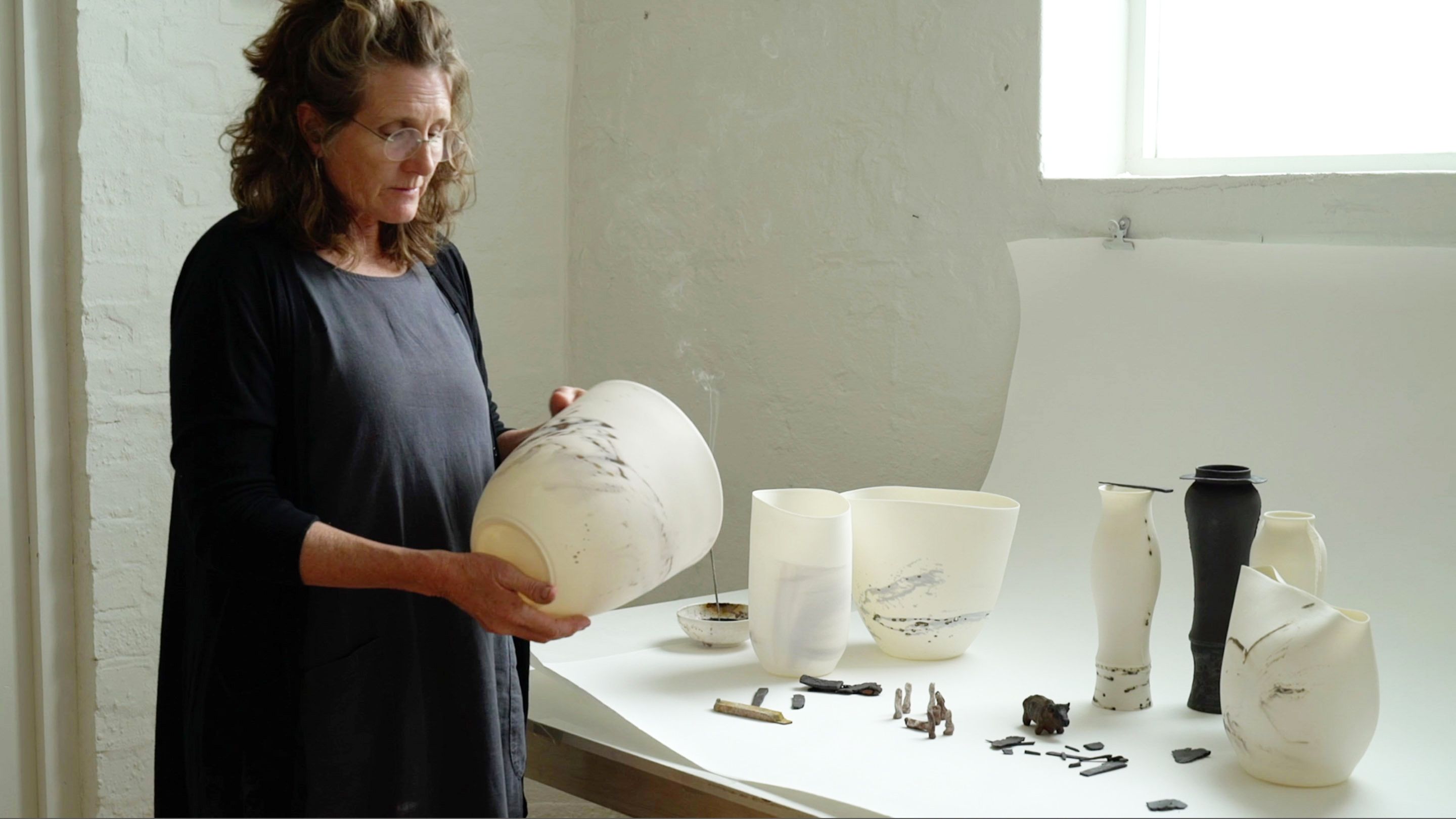 For over forty years Katherine Glenday has been creating meditative ceramic and porcelain pieces by hand in her South African studio. Remarkable in their translucency and luminosity, the porcelain vessel has been Katherine’s central voice since the early eighties. Her explorations of light, movement, water, earth, and sound have found form through thrown and slip-cast porcelain vessels. The vessels utilize natural elements from Kalk Bay, South Africa. Each with their own unique resonating sound and purity of form, these pieces result in a body of work that represents an endeavor in which the artist focused and centralized her ideas into a conversation that has, at its core, stillness, and tranquility.