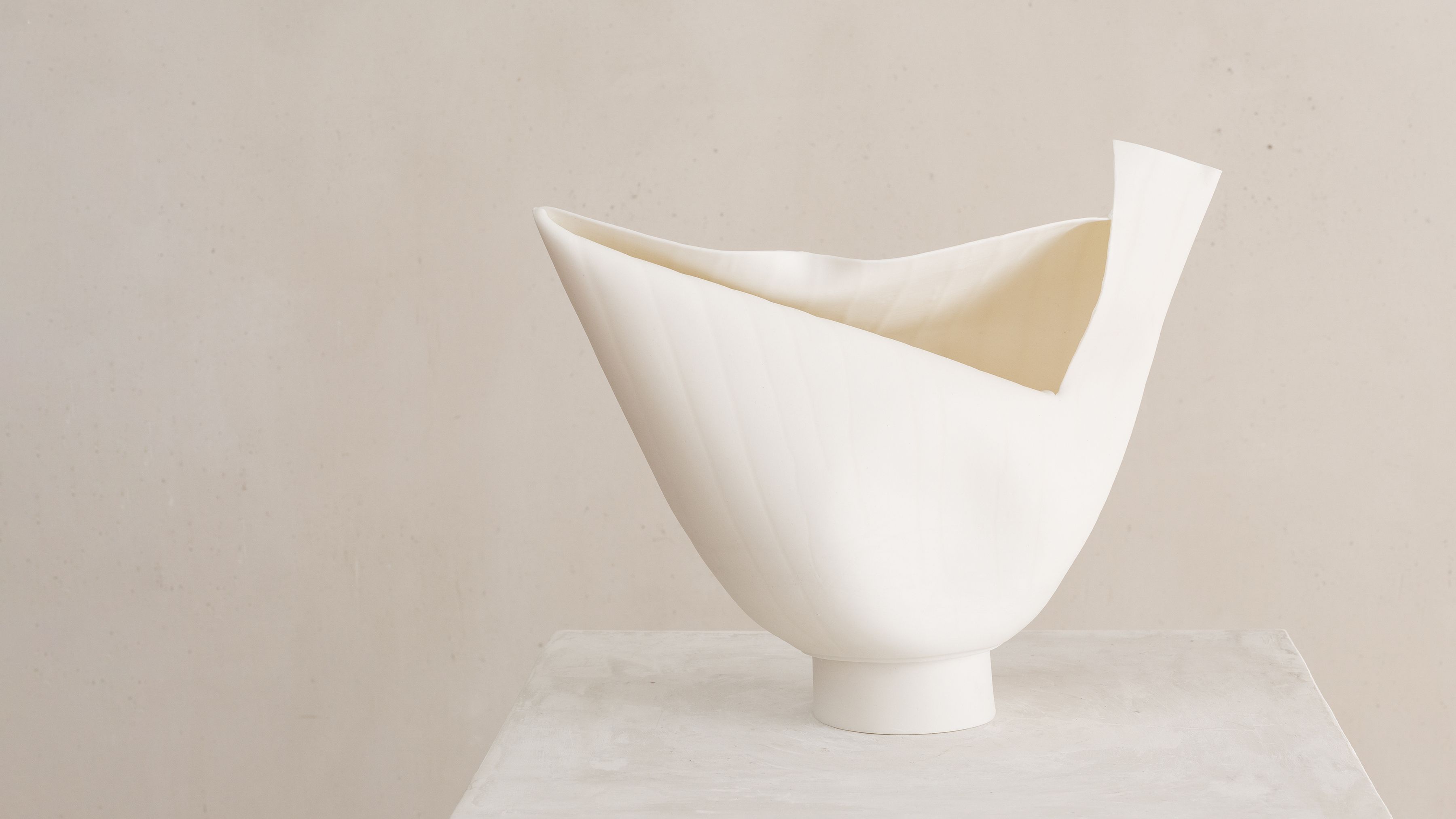 Highly informed by visual arts, including both painting and drawing, her porcelain works explore the contrasts of emphasized organic textures on soft skin-like surfaces. Each of her pieces defies the materiality of the porcelain, stretching the matter to its thinnest; their translucent skin enthralls the natural light, while their silhouettes evoke the artist’s gesture as they quietly embody a movement. All whilst refining her technical dexterity and her artistic signature, Glenday has grown a cohesive body of work comprised of delicate vessels that accentuate the porcelain’s lightness and translucent quality.