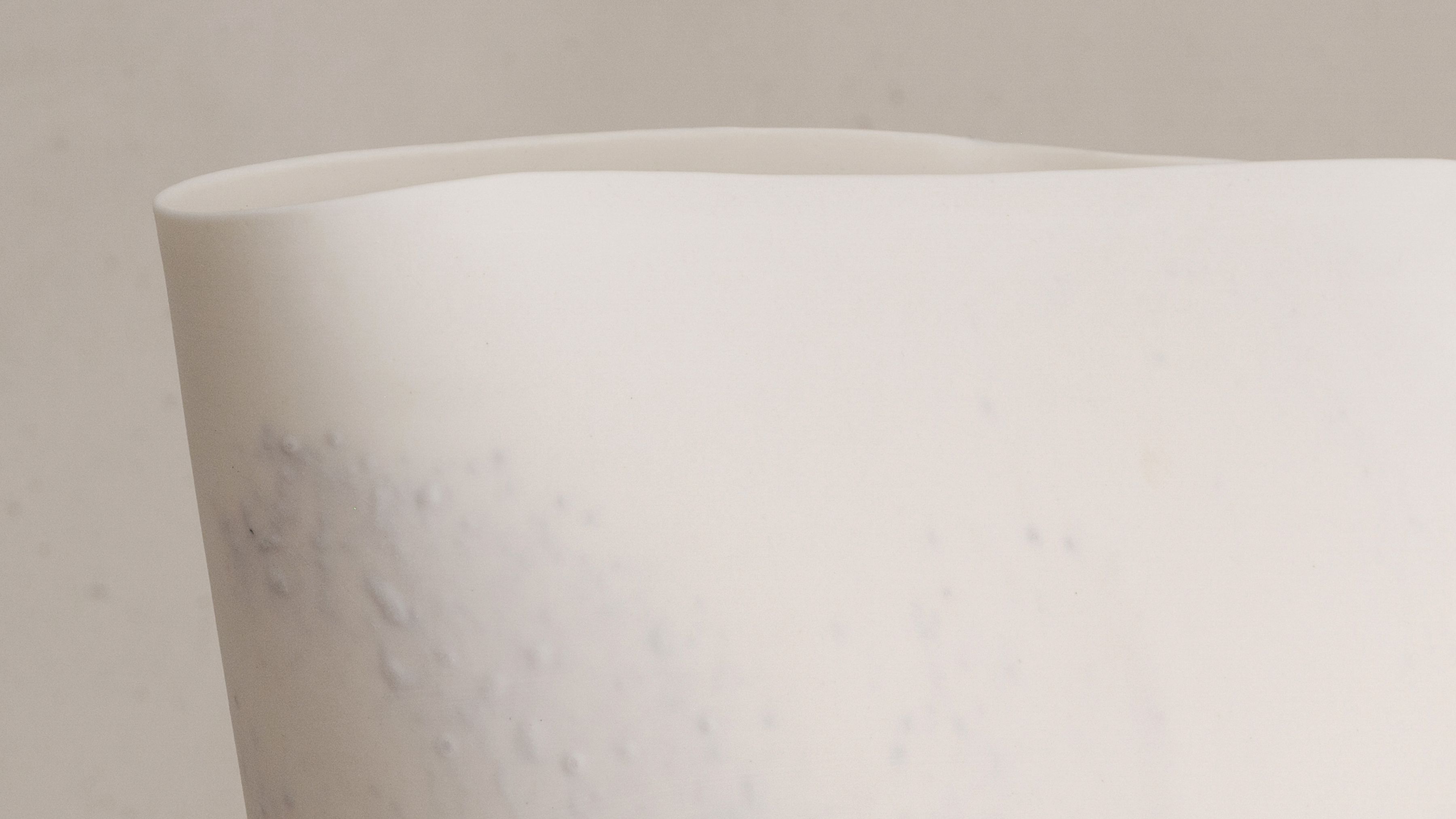 Highly informed by visual arts, including both painting and drawing, her porcelain works explore the contrasts of emphasized organic textures on soft skin-like surfaces. Each of her pieces defies the materiality of the porcelain, stretching the matter to its thinnest; their translucent skin enthralls the natural light, while their silhouettes evoke the artist’s gesture as they quietly embody a movement. All whilst refining her technical dexterity and her artistic signature, Glenday has grown a cohesive body of work comprised of delicate vessels that accentuate the porcelain’s lightness and translucent quality.