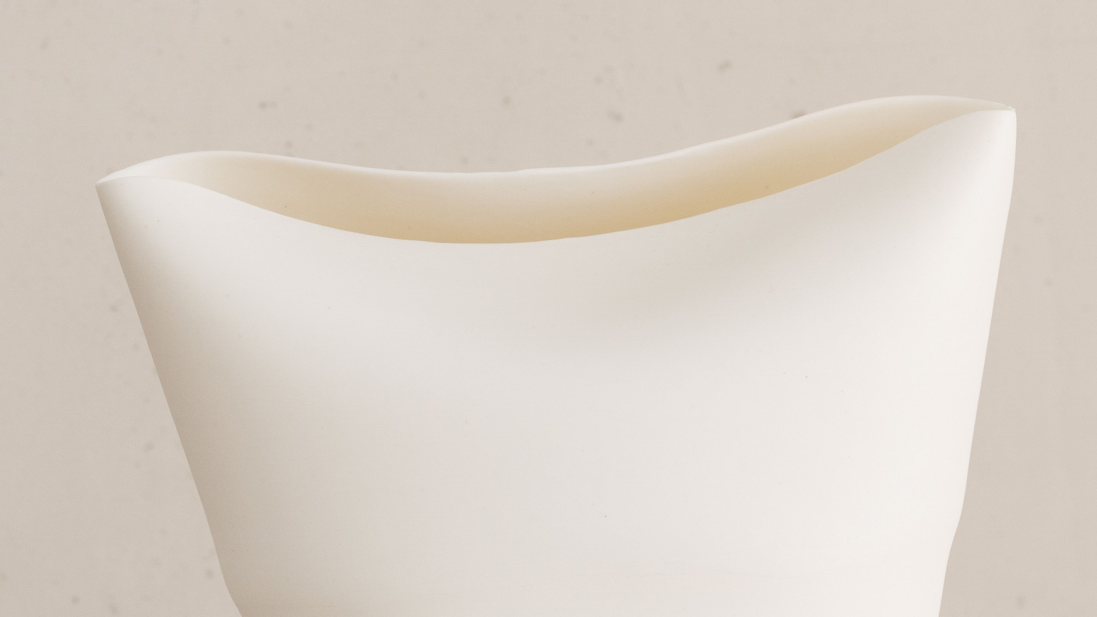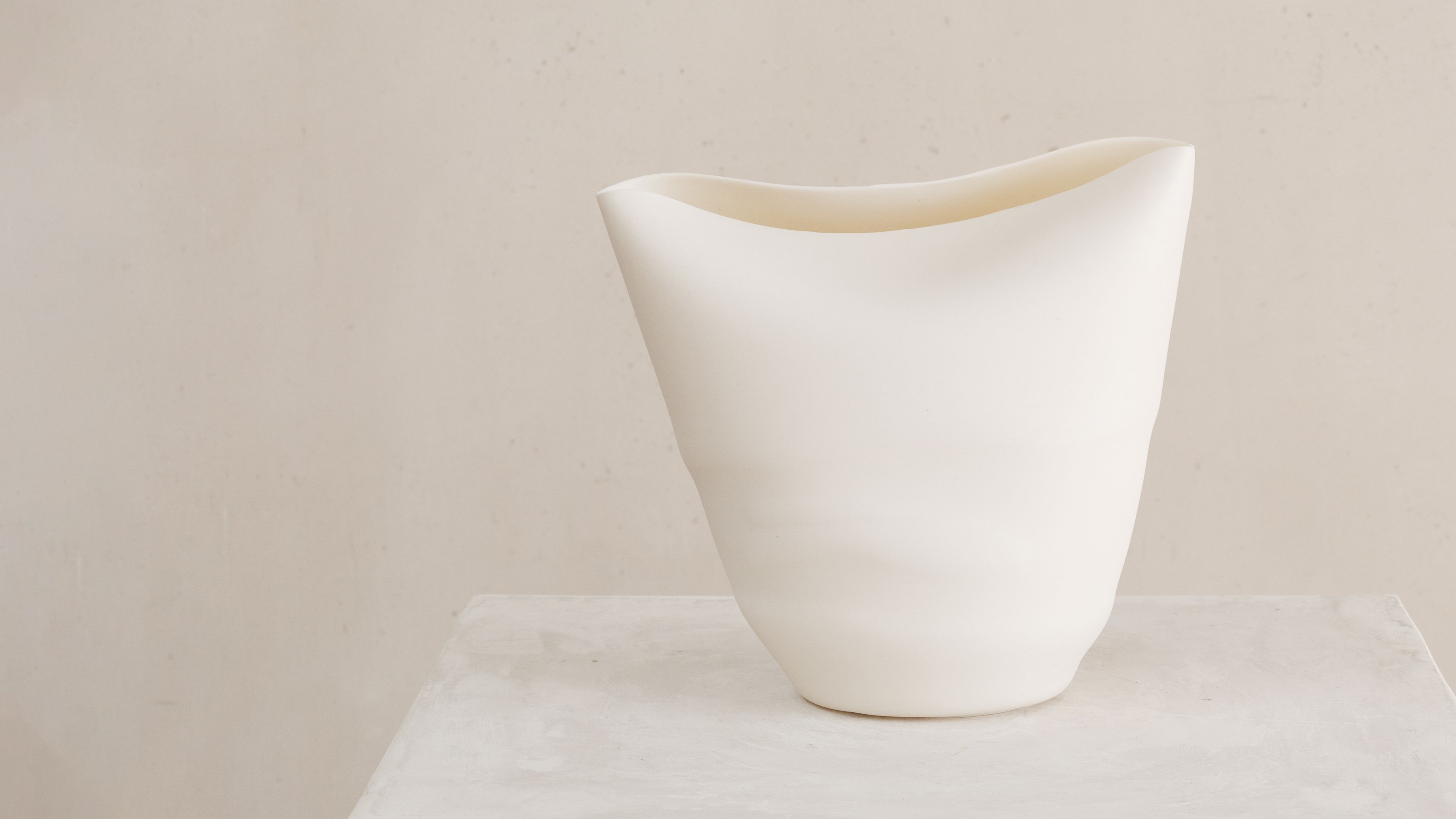 Highly informed by visual arts, including both painting and drawing, her porcelain works explore the contrasts of emphasized organic textures on soft skin-like surfaces. Each of her pieces defies the materiality of the porcelain, stretching the matter to its thinnest; their translucent skin enthralls the natural light, while their silhouettes evoke the artist’s gesture as they quietly embody a movement. All whilst refining her technical dexterity and her artistic signature, Glenday has grown a cohesive body of work comprised of delicate vessels that accentuate the porcelain’s lightness and translucent quality.