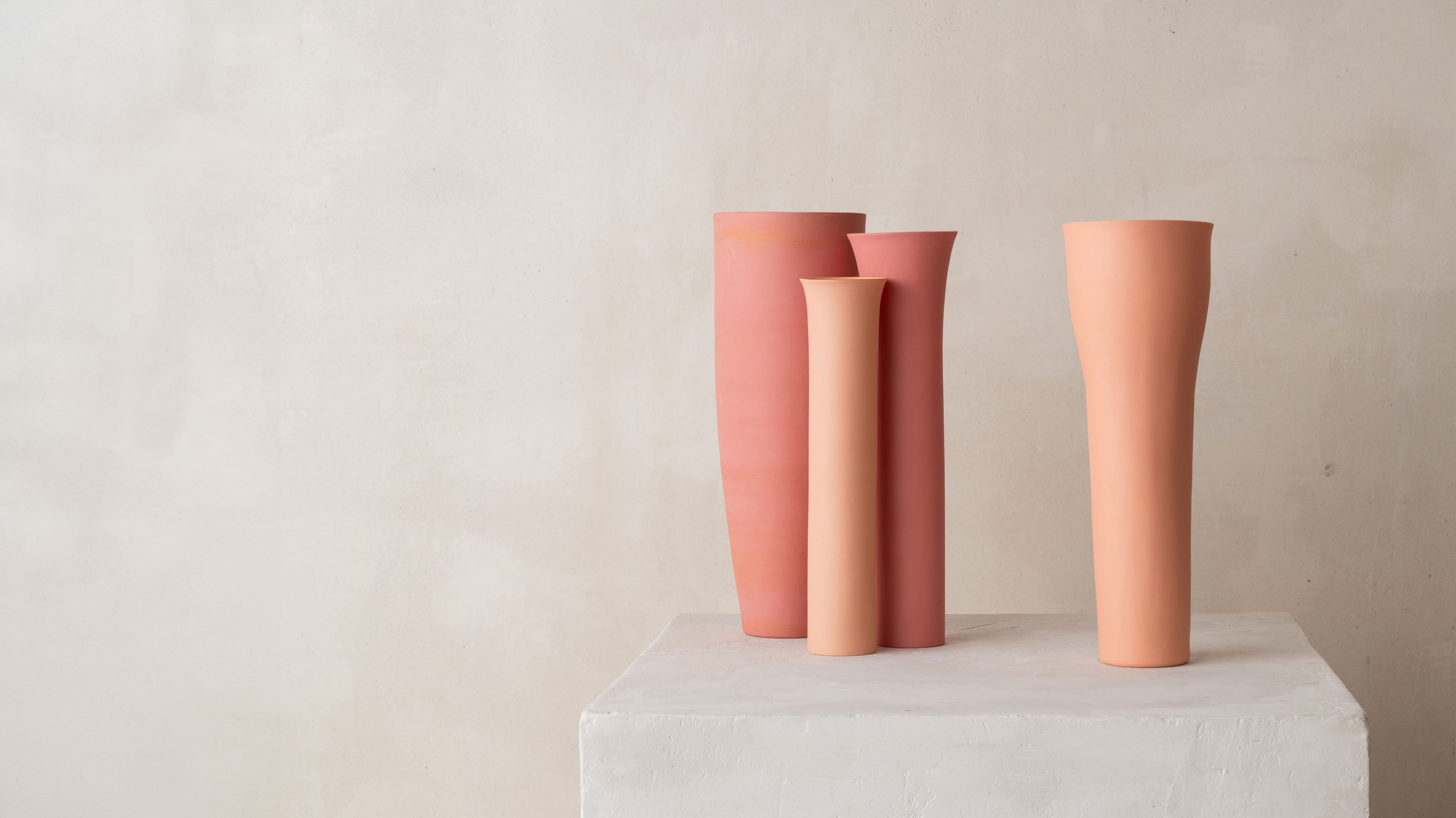 Highly informed by visual arts, including both painting and drawing, her porcelain works explore the contrasts of emphasized organic textures on soft skin-like surfaces. Each of her pieces defies the materiality of the porcelain, stretching the matter to its thinnest; their translucent skin enthralls the natural light, while their silhouettes evoke the artist’s gesture as they quietly embody a movement. All whilst refining her technical dexterity and her artistic signature, Glenday has grown a cohesive body of work comprised of delicate vessels that accentuate the porcelain’s lightness and translucent quality.