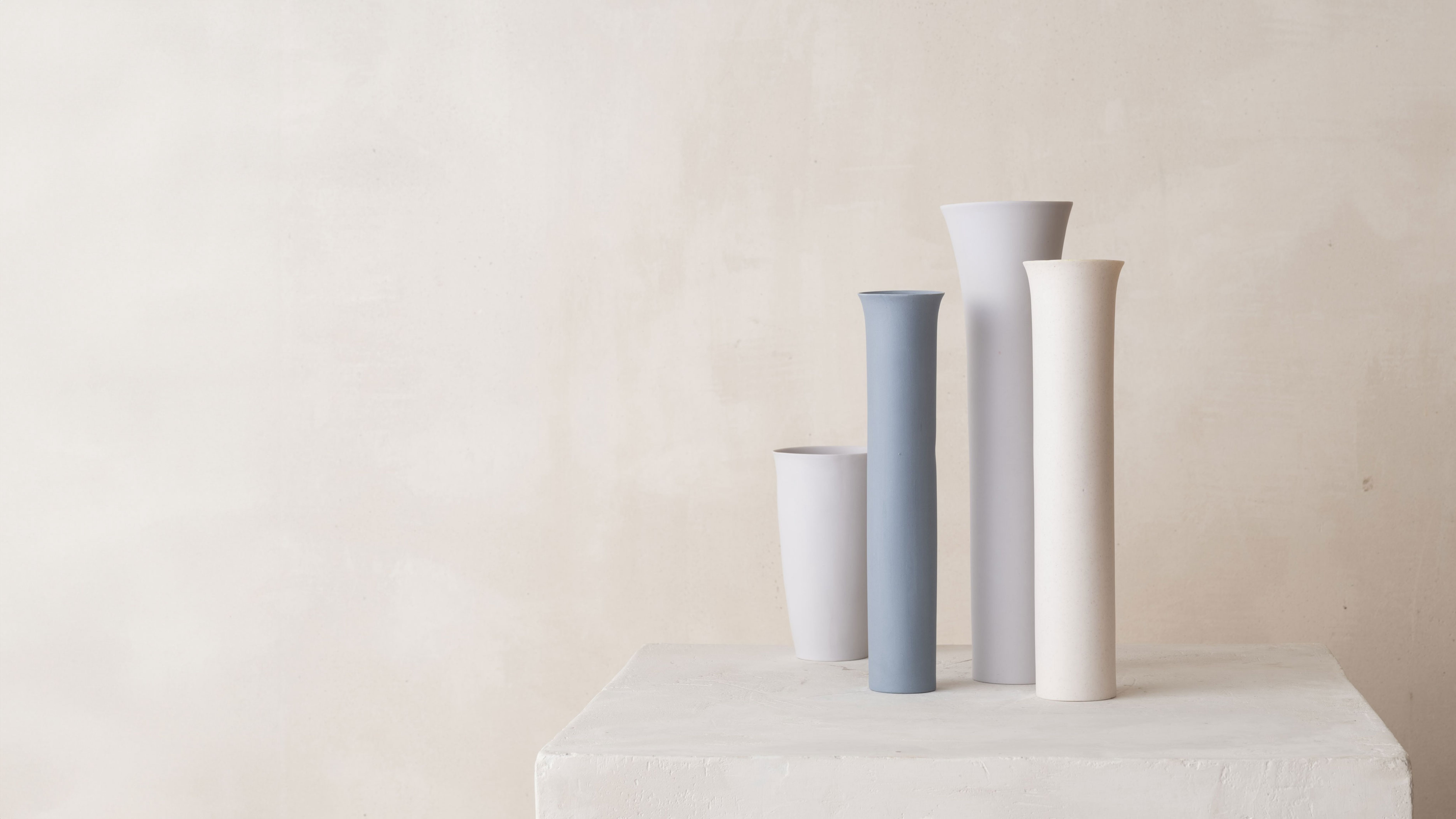 For over forty years Katherine Glenday has been creating meditative ceramic and porcelain pieces by hand in her South African studio. Remarkable in their translucency and luminosity, the porcelain vessel has been Katherine’s central voice since the early eighties. Her explorations of light, movement, water, earth, and sound have found form through thrown and slip-cast porcelain vessels. The vessels utilize natural elements from Kalk Bay, South Africa. Each with their own unique resonating sound and purity of form, these pieces result in a body of work that represents an endeavor in which the artist focused and centralized her ideas into a conversation that has, at its core, stillness, and tranquility.