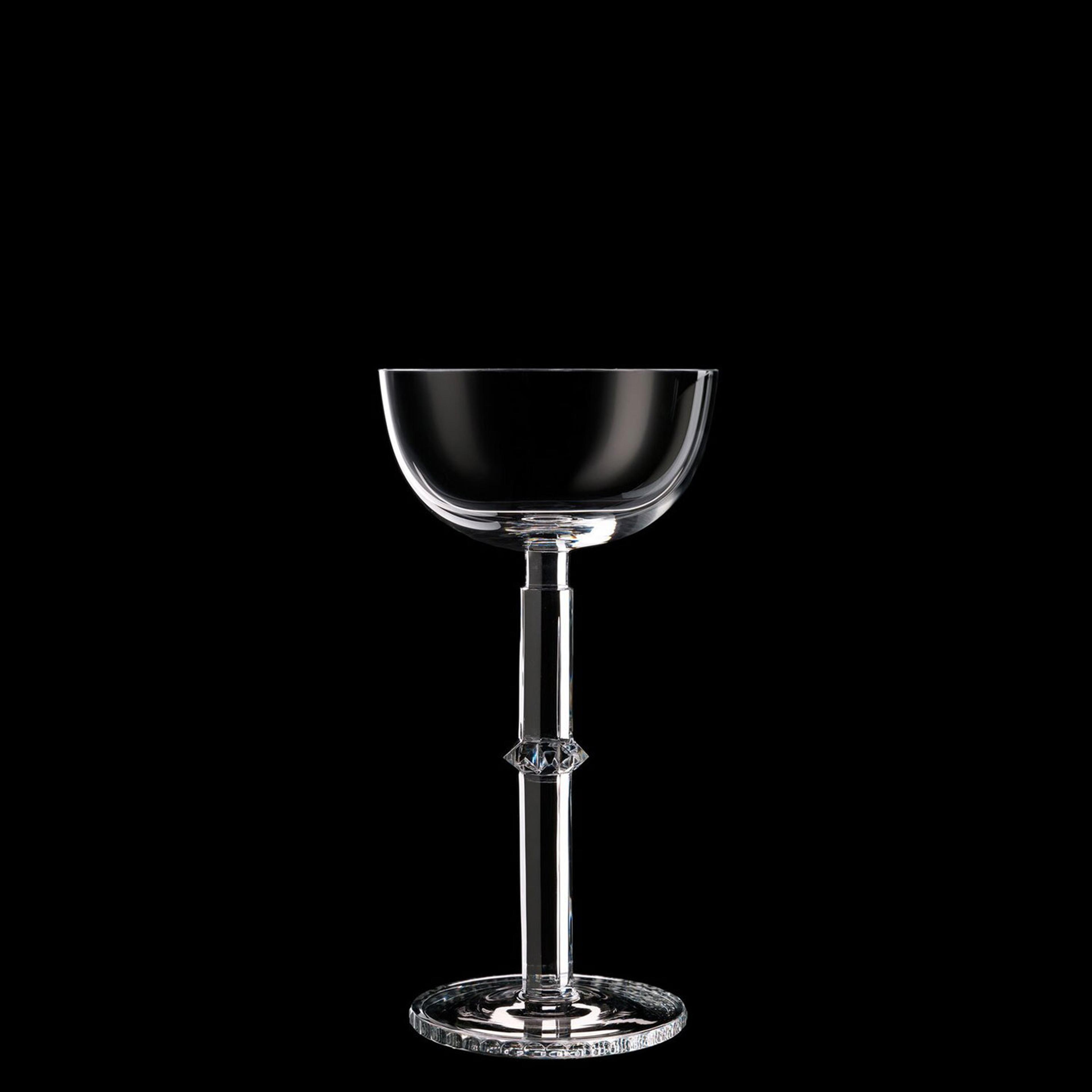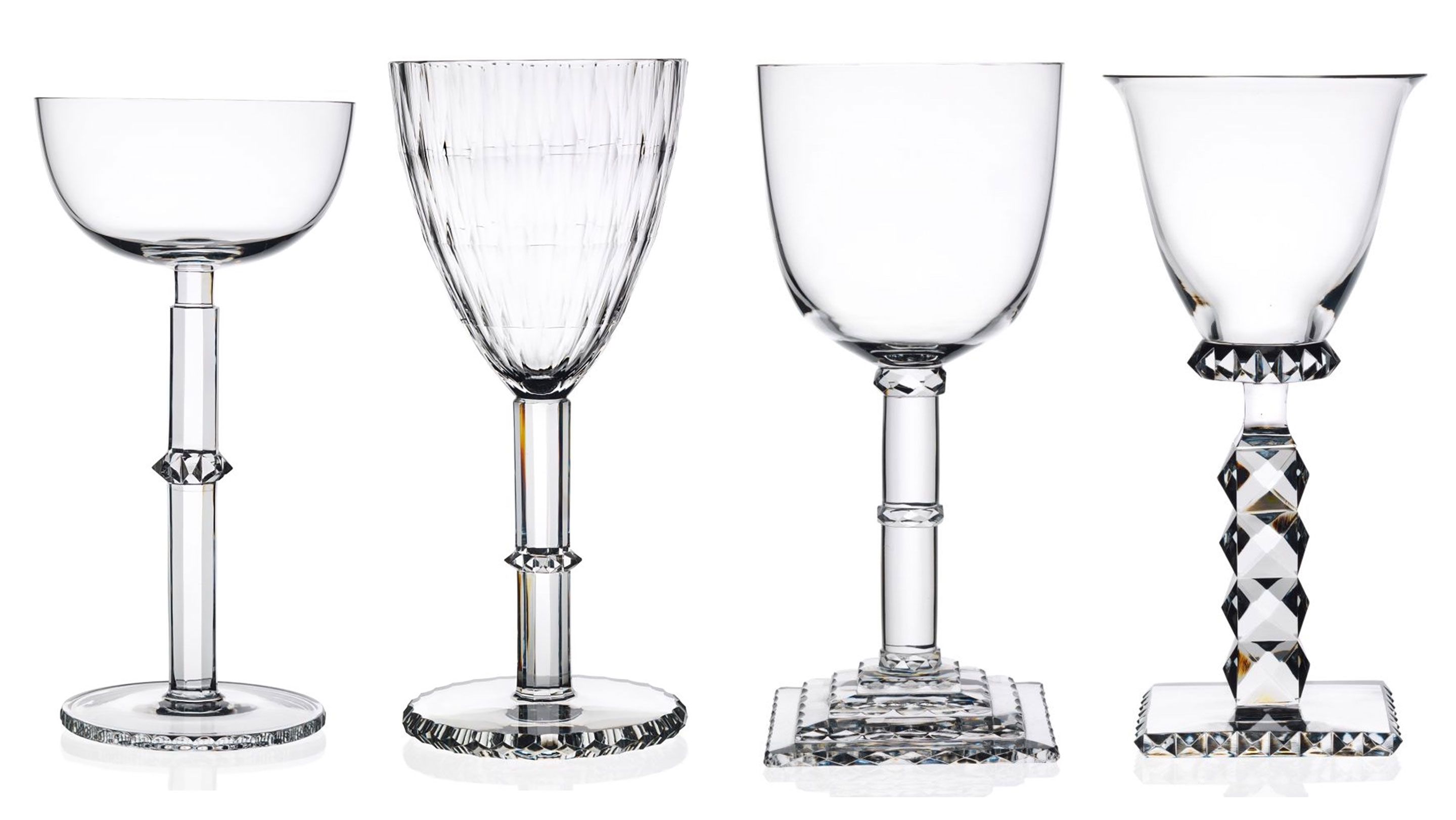 Between 1910 and 1914 Josef Hoffmann designed a series of goblets for Lobmeyr. The ensemble of four individual glassworks is a perfect representation of the design elements typical to the Wiener Werkstatte. The precise hand-cutting of the cuppa might - to this day - take the glass cutters to the edge of their abilities. The glass polishing itself is executed in three consecutive steps to keep the edges crisp. The goblets were first presented at the 1914 Werkbund exhibition in Cologne and subsequently sold at the stores of Wiener Werkstätte. Widely published and included in significant collections - both institutional and private, the set has been part of numerous museum exhibitions around the world.