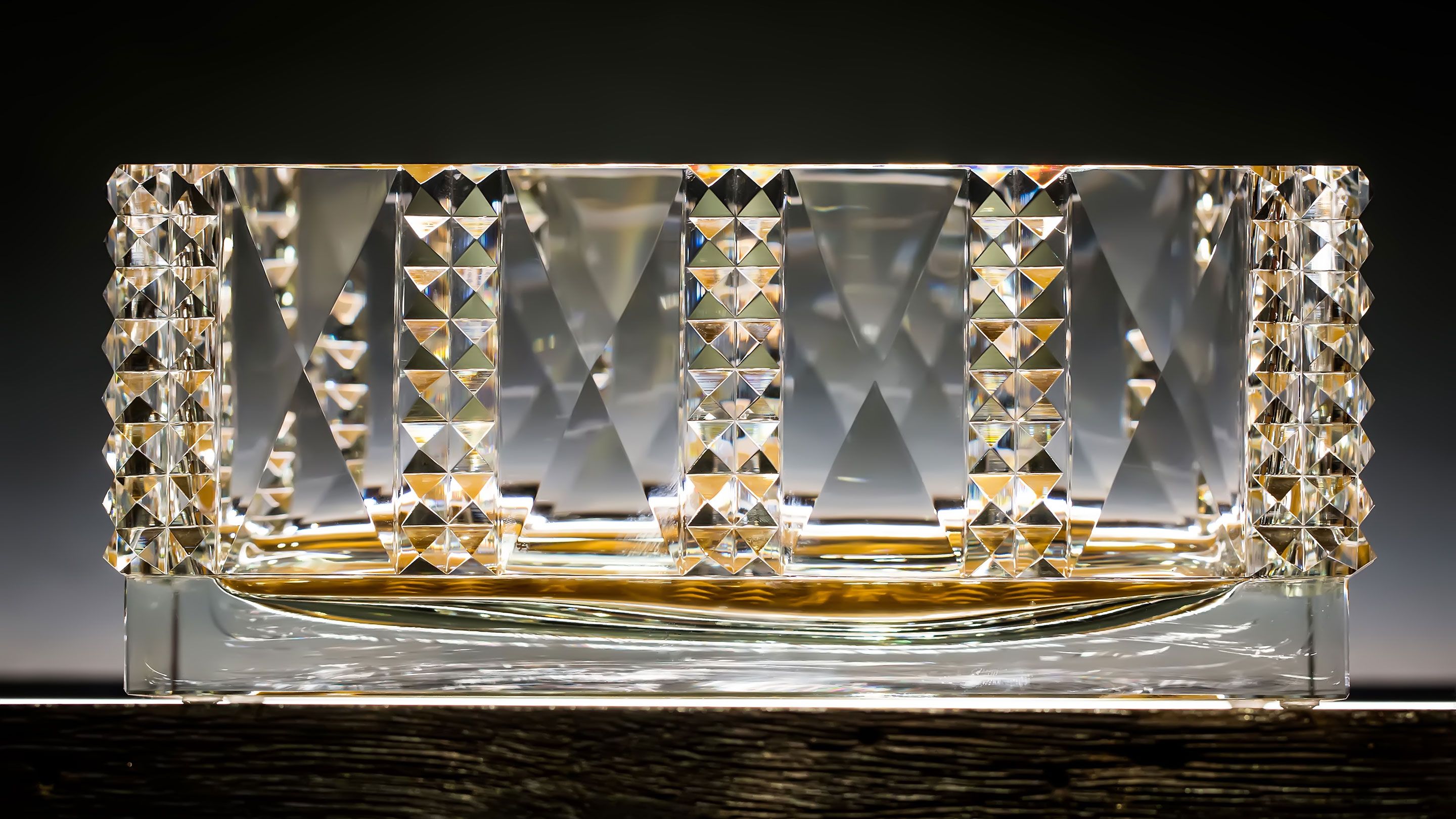 The Prismenschliff Jardinière marks a milestone in the cooperation between Lobmeyr and Josef Hoffmann. The precise cut of this design demonstrates the mastery of the Viennese workshop's crystal cutters. Hoffmann's original drawing shows four round feet at the base that would have had to be glued to the vase. The feet were crossed out of the drawings by Hoffmann and Lobmeyr who both wanted to keep the integrity of the design solely involving a pure crystal-cutting performance.