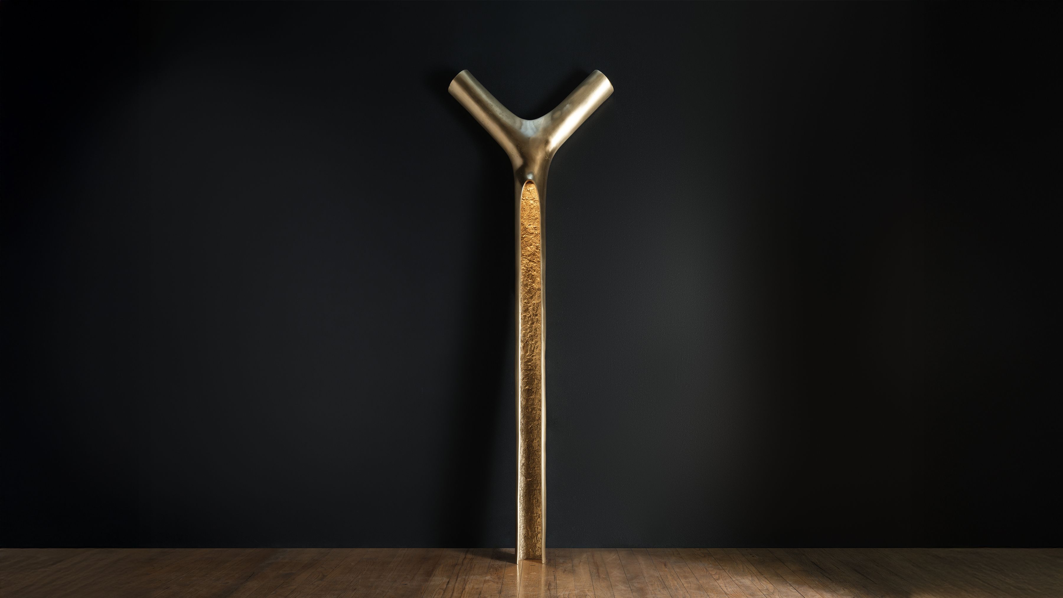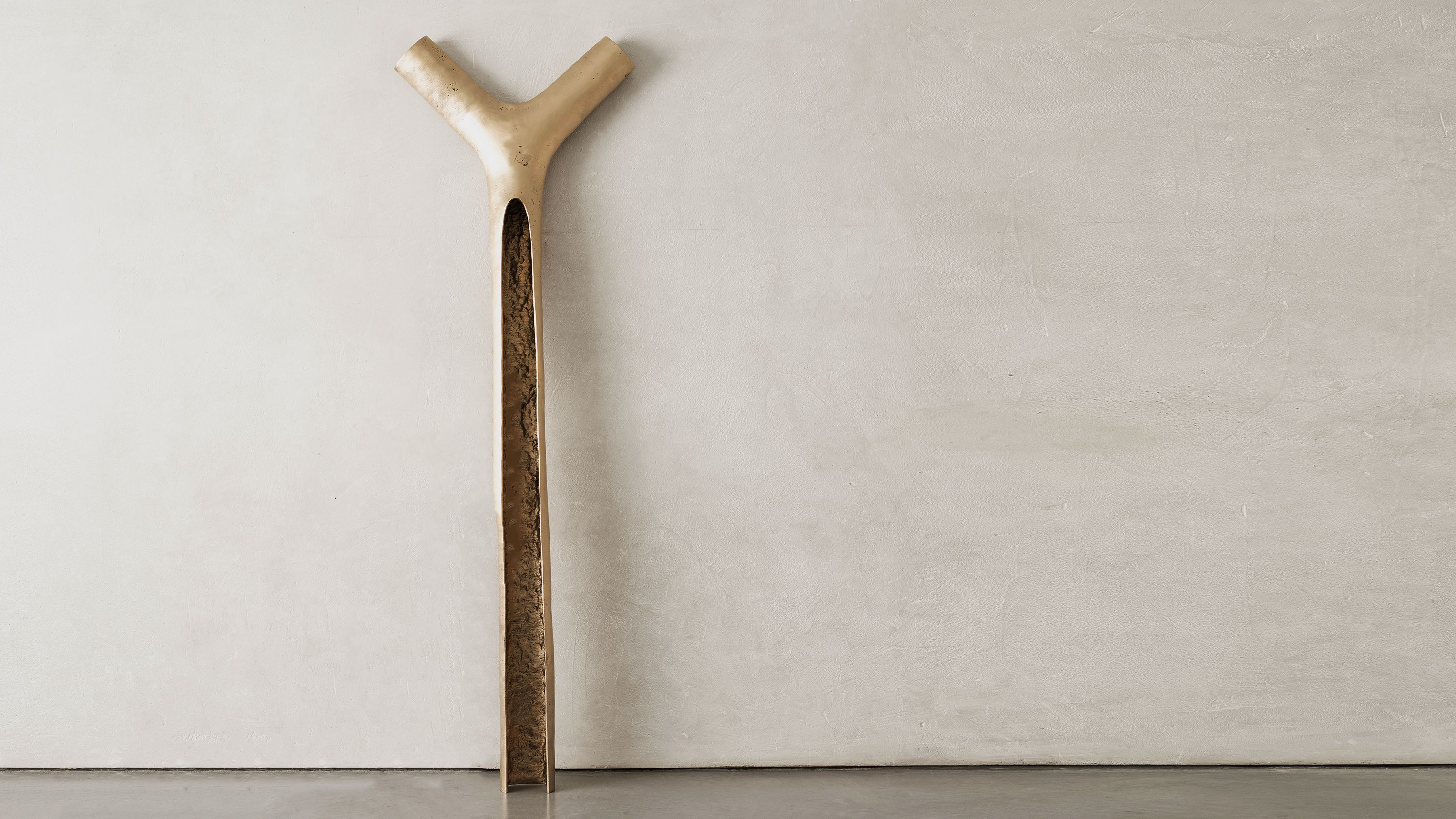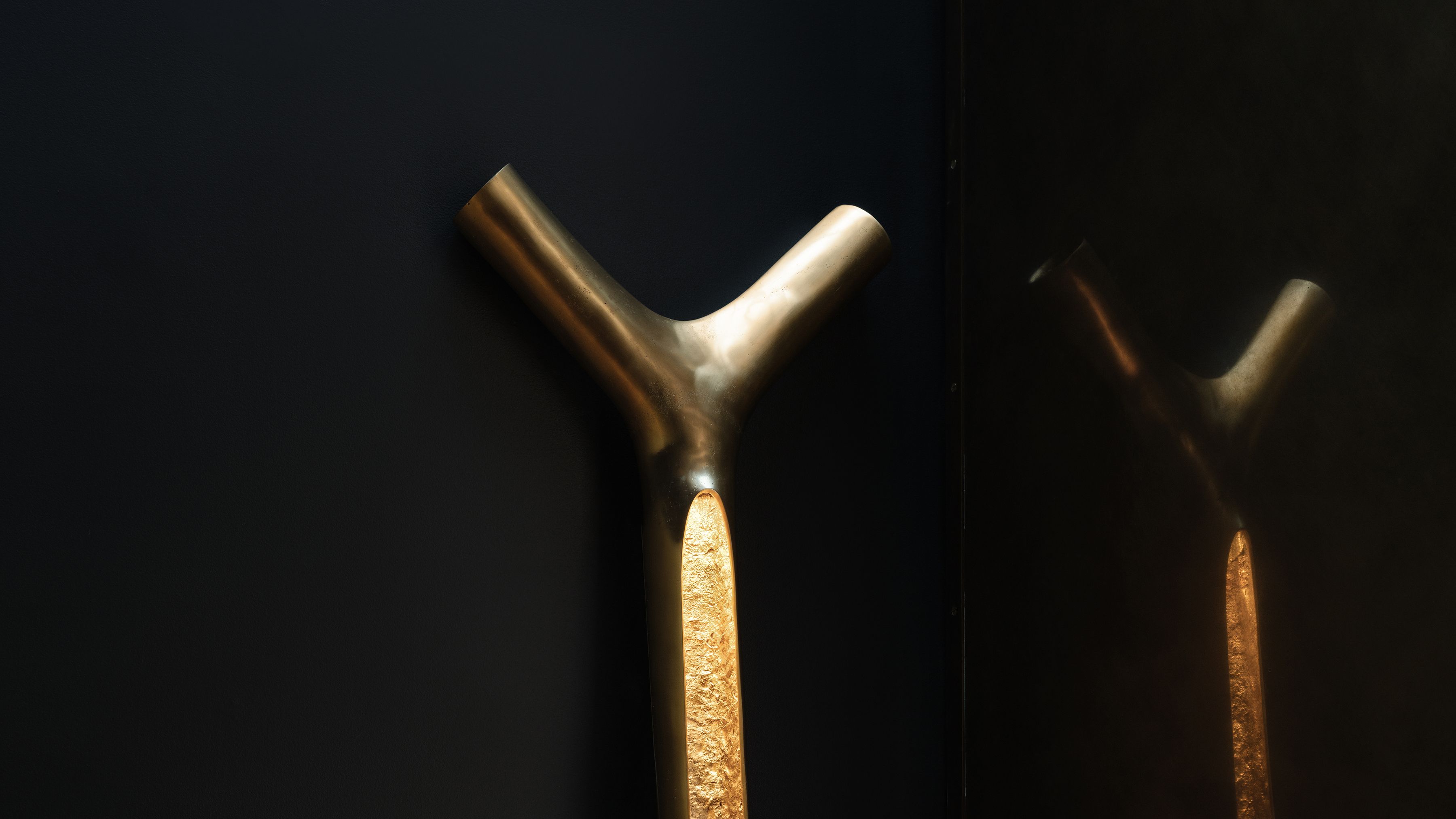 With the Y lamp, French designer Noé Duchaufour Lawrance offers his sculptural and contemporary interpretation of the Lobi ladder — a traditional and prevalent object used in West Africa, particularly in the Dogon and Lobi cultures. The ladder is traditionally carved from a single piece of wood with a bifurcated end, creating a Y shape. Inspired by the beauty and the simplicity of this purely functional object, Duchaufour Lawrance translated the traditional shape into a symbolic totem of light. Maison Intègre is an Ouagadougou, Burkina Faso-based bronze workshop fostering the long lineage of craft in West Africa. Founded by Ambre Jarno in 2017, Maison Intègre's Burkinabe artisans carry on the lost wax bronze casting technique that has largely remained unchanged since its inception millennia ago. The atelier invites contemporary designers to create individual pieces or cohesive collections. For Maison Intègre’s inaugural editions, Noé Duchaufour-Lawrance has created a series of seven sculpture pieces that embody and draw inspiration from the architecture and design of Burkina Faso.
