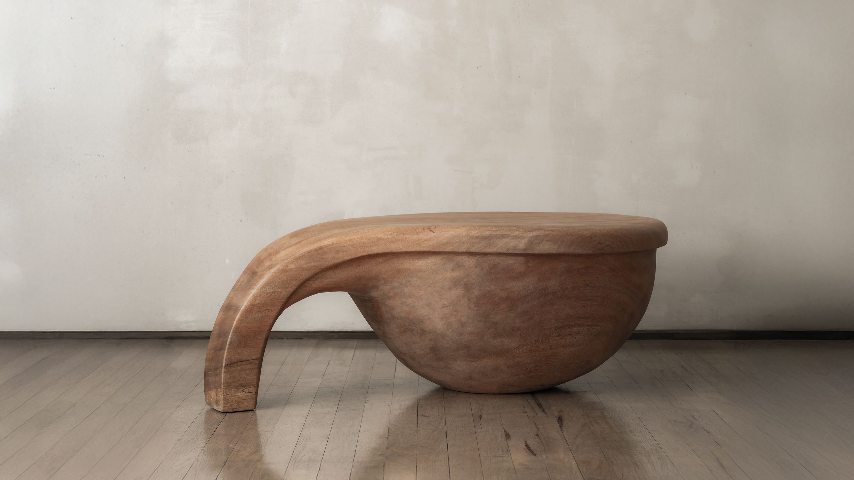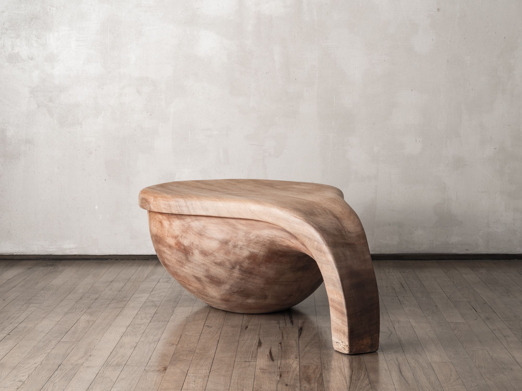 Mori’s sculptural, sensual, and textured silhouettes are informed by the very nature of their chosen material. His sensitivity to the medium's unrefined beauty and sensuality endows his work with a sense of appreciation for the material itself and its natural, original environment. The wood pieces are carved out of massive Albizia Rosa wood trunks sourced and sculpted by the artist in Seychelles, while the Carrara marble hand-picked by Mori in Northern Italy is carved in his studio in Milan.