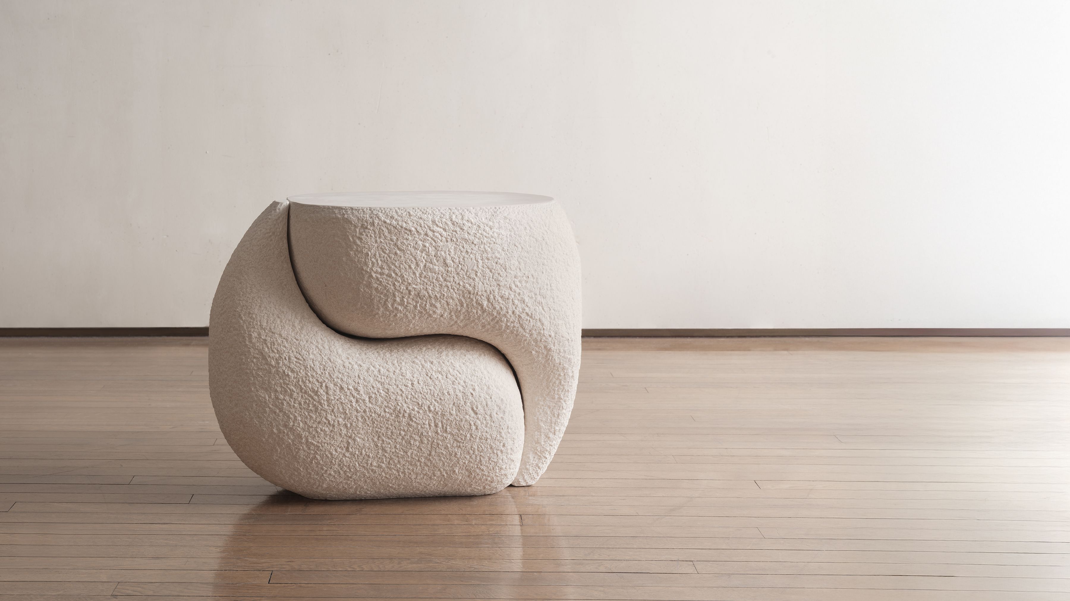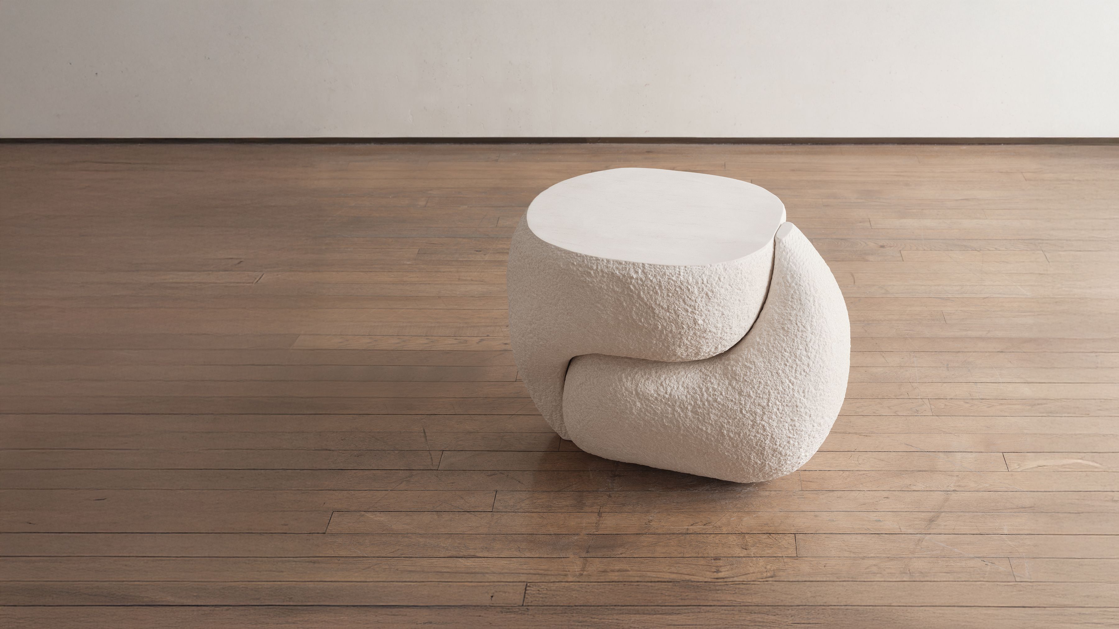 Mori’s sculptural, sensual, and textured silhouettes are informed by the very nature of their chosen material. His sensitivity to the medium's unrefined beauty and sensuality endows his work with a sense of appreciation for the material itself and its natural, original environment. The wood pieces are carved out of massive Albizia Rosa wood trunks sourced and sculpted by the artist in Seychelles, while the Carrara marble hand-picked by Mori in Northern Italy is carved in his studio in Milan.