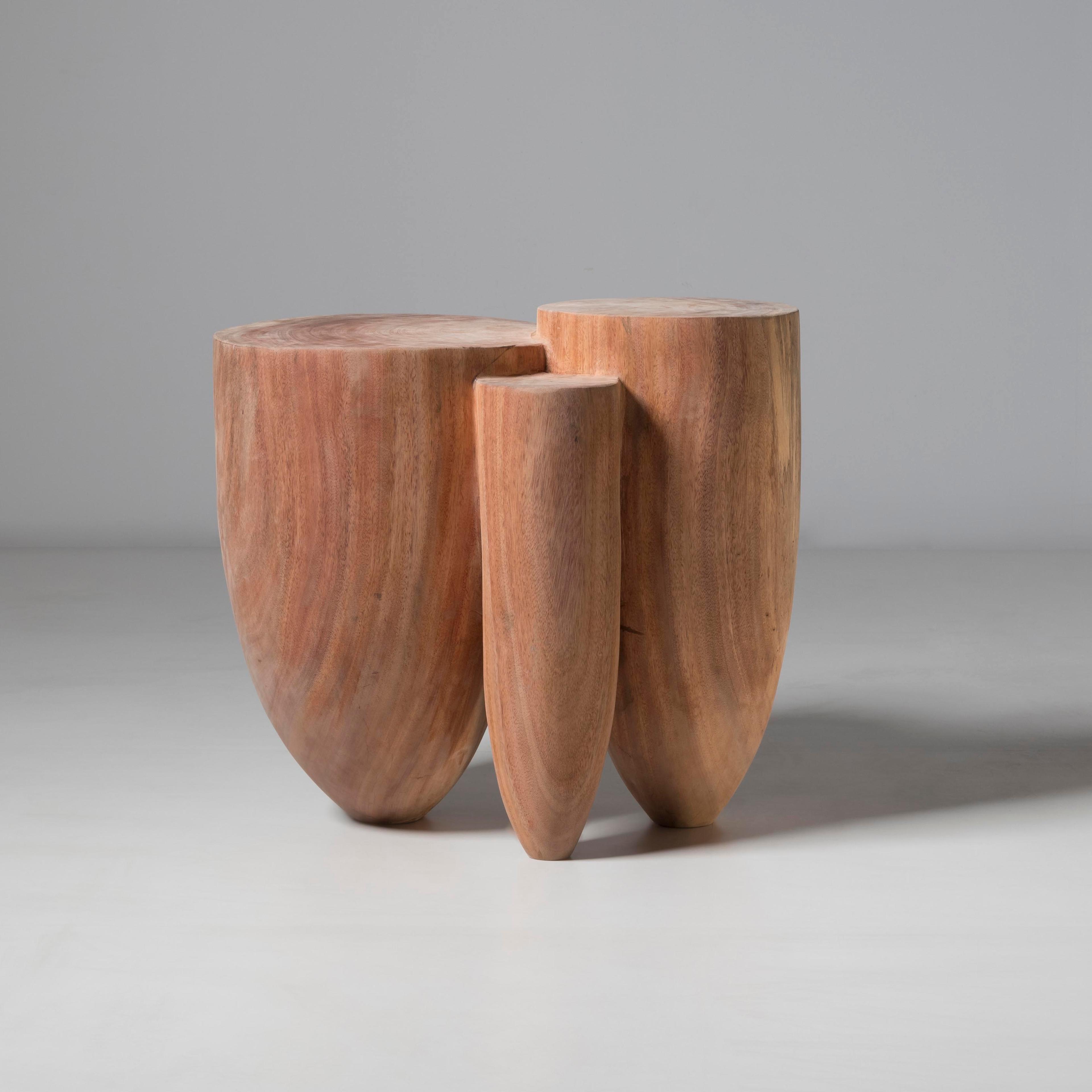 Mori’s sculptural, sensual, and textured silhouettes are informed by the very nature of their chosen material. His sensitivity to the medium's unrefined beauty and sensuality endows his work with a sense of appreciation for the material itself and its natural, original environment. The wood pieces are carved out of massive Albizia Rosa wood trunks sourced and sculpted by the artist in Seychelles, while the Carrara marble hand-picked by Mori in Northern Italy is carved in his studio in Milan.