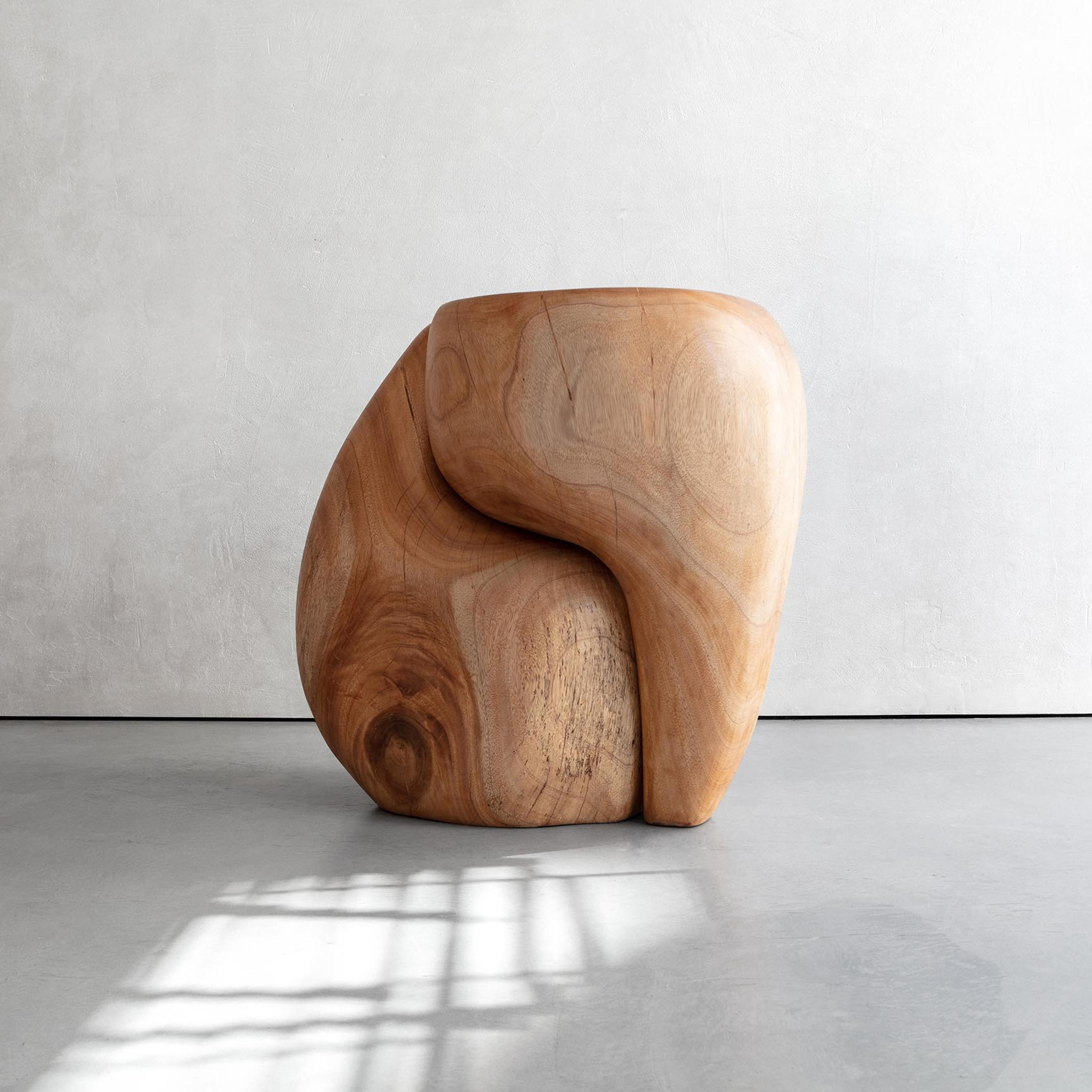 Mori’s sculptural, sensual, and textured silhouettes are informed by the very nature of their chosen material. His sensitivity to the medium's unrefined beauty and sensuality endows his work with a sense of appreciation for the material itself and its natural, original environment. The wood pieces are carved out of massive Albizia Rosa wood trunks sourced and sculpted by the artist in Seychelles, while the Carrara marble hand-picked by Mori in Northern Italy is carved in his studio in Milan.