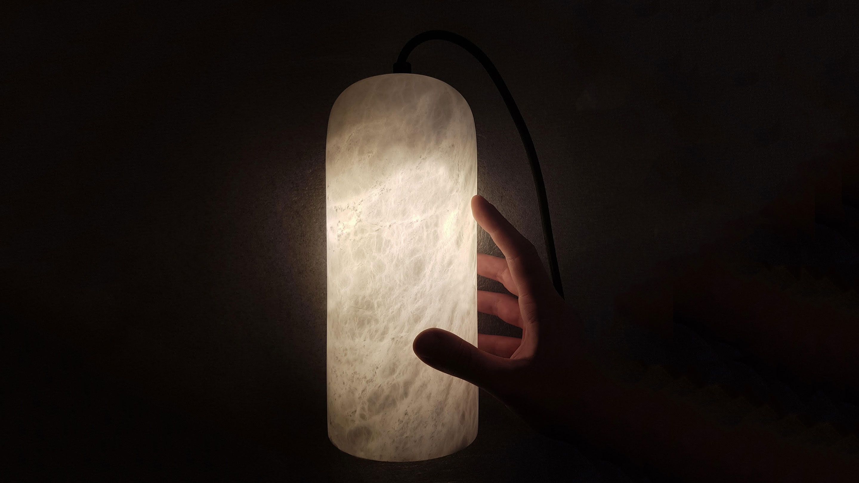 The Alabaster suspension by Michel Amar is a simple, elegant lighting piece hand-crafted by Les Marbreries de Seine in France. The emphasized translucency of the alabaster creates a warm light source accentuating the expressive nature of the stone.