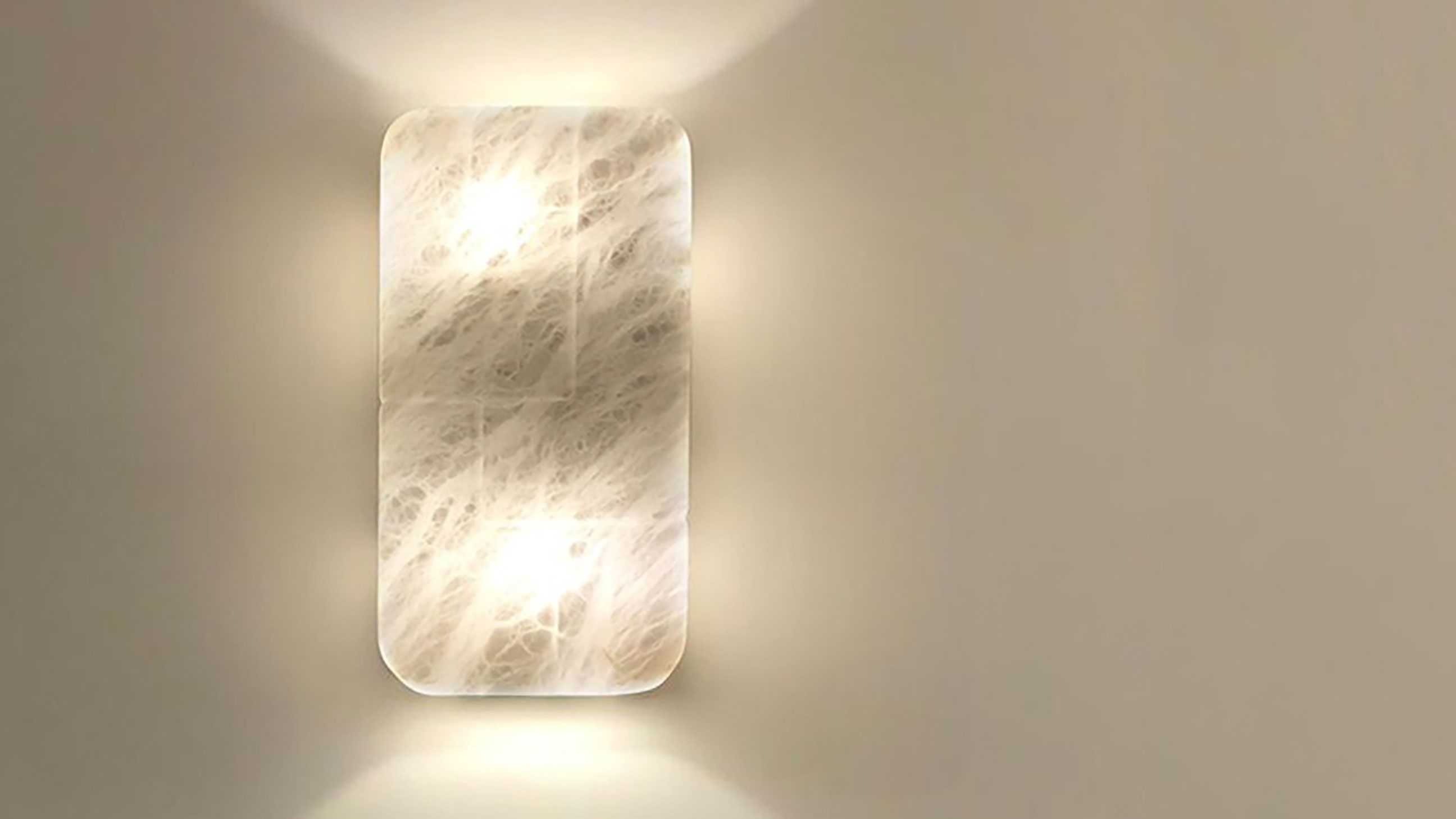 Carved from a block of alabaster, the Eze applique by Michel Amar is an open edition of simple, elegant lighting pieces hand-crafted by Les Marbreries de Seine in France. The emphasized translucency of the alabaster creates a warm light source accentuating the expressive nature of the stone.