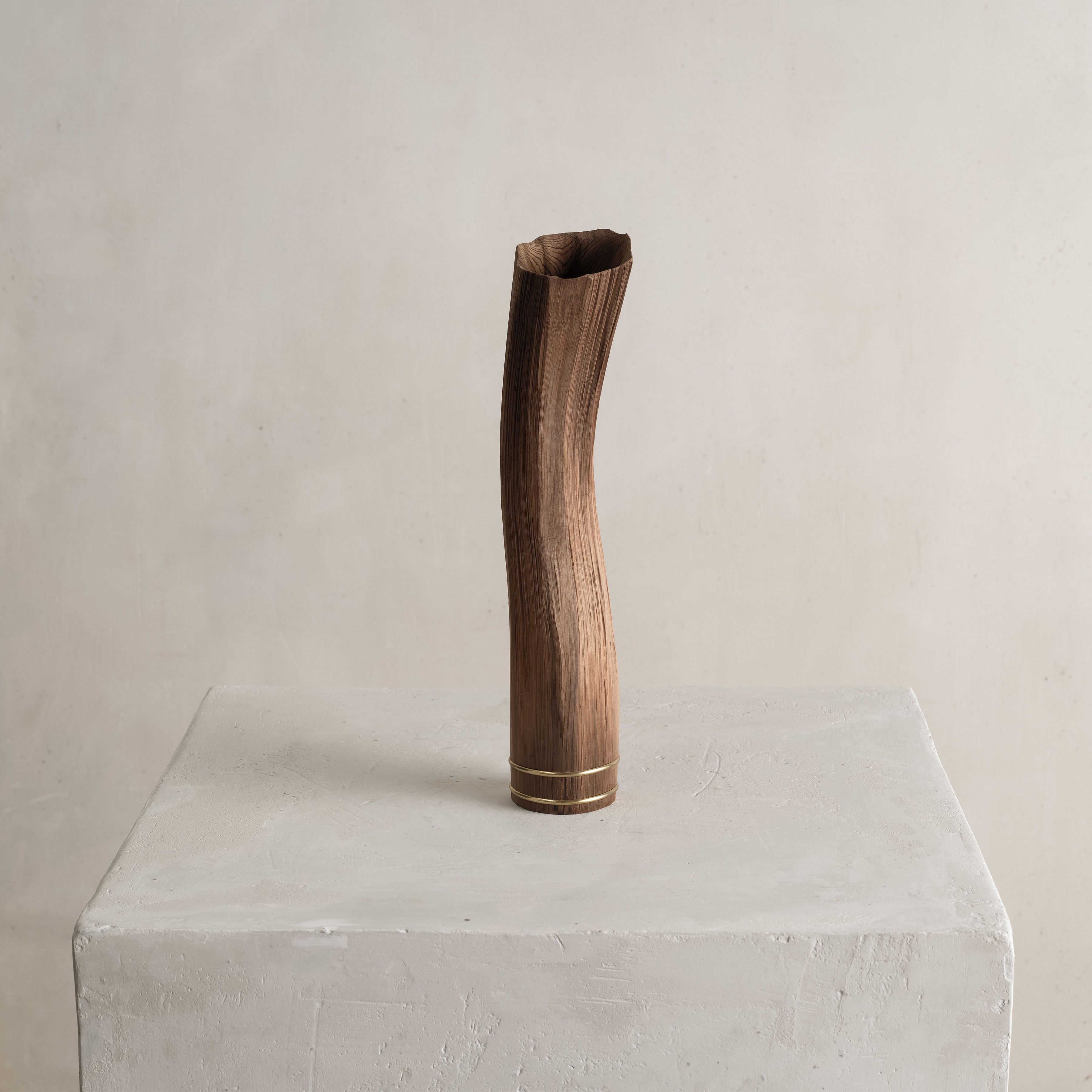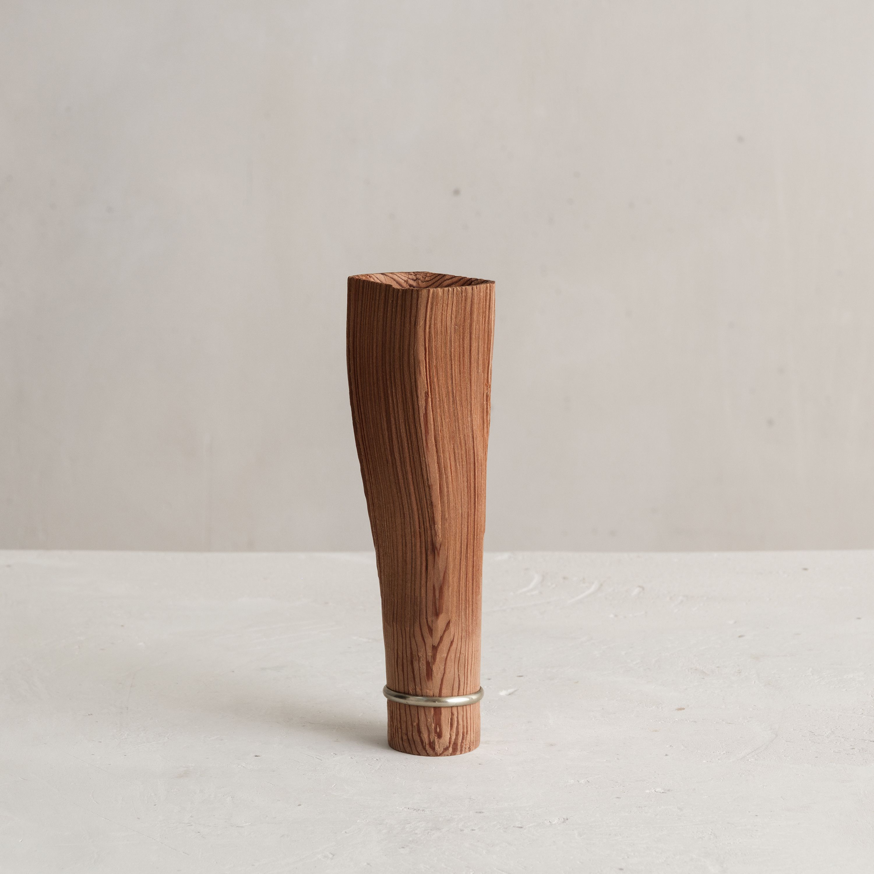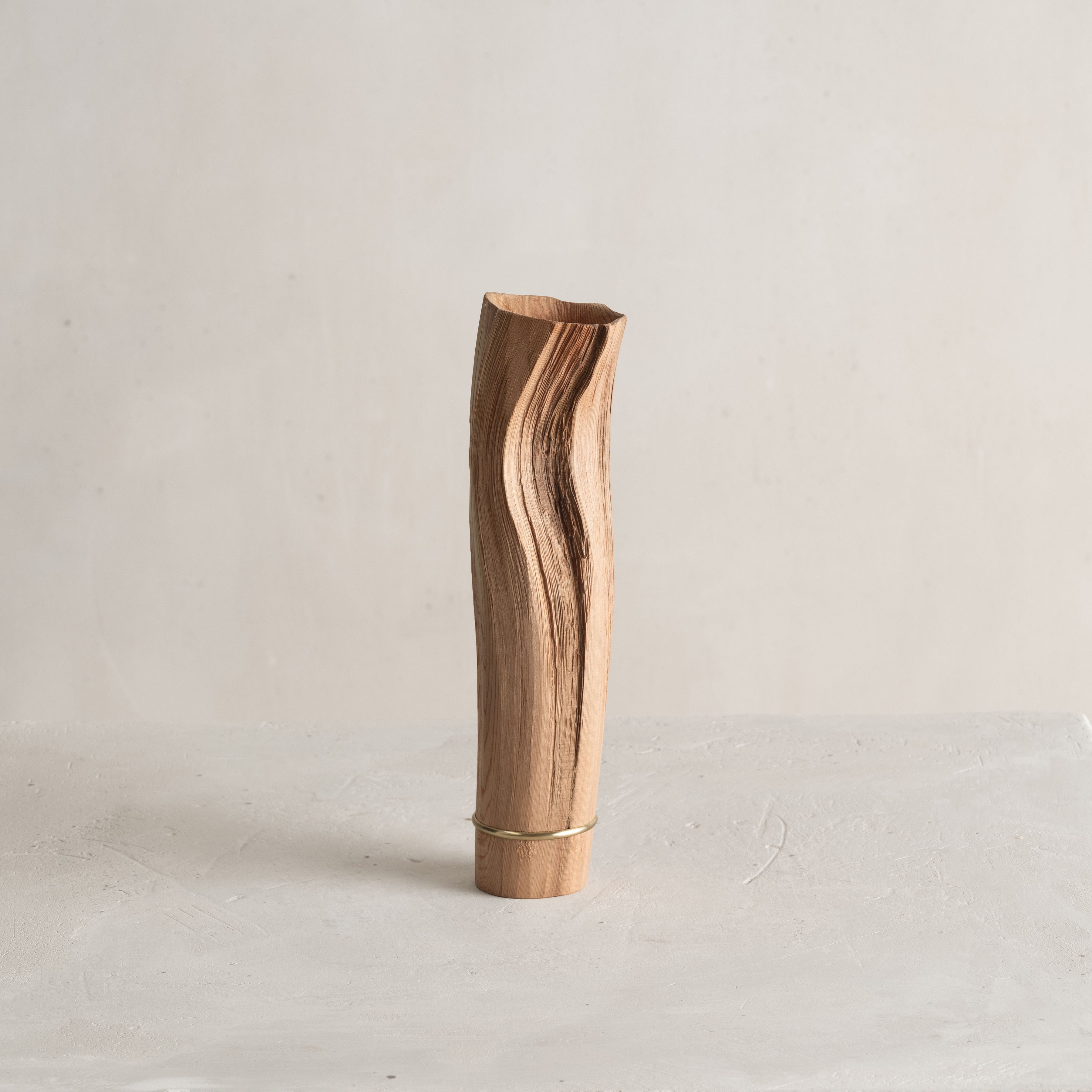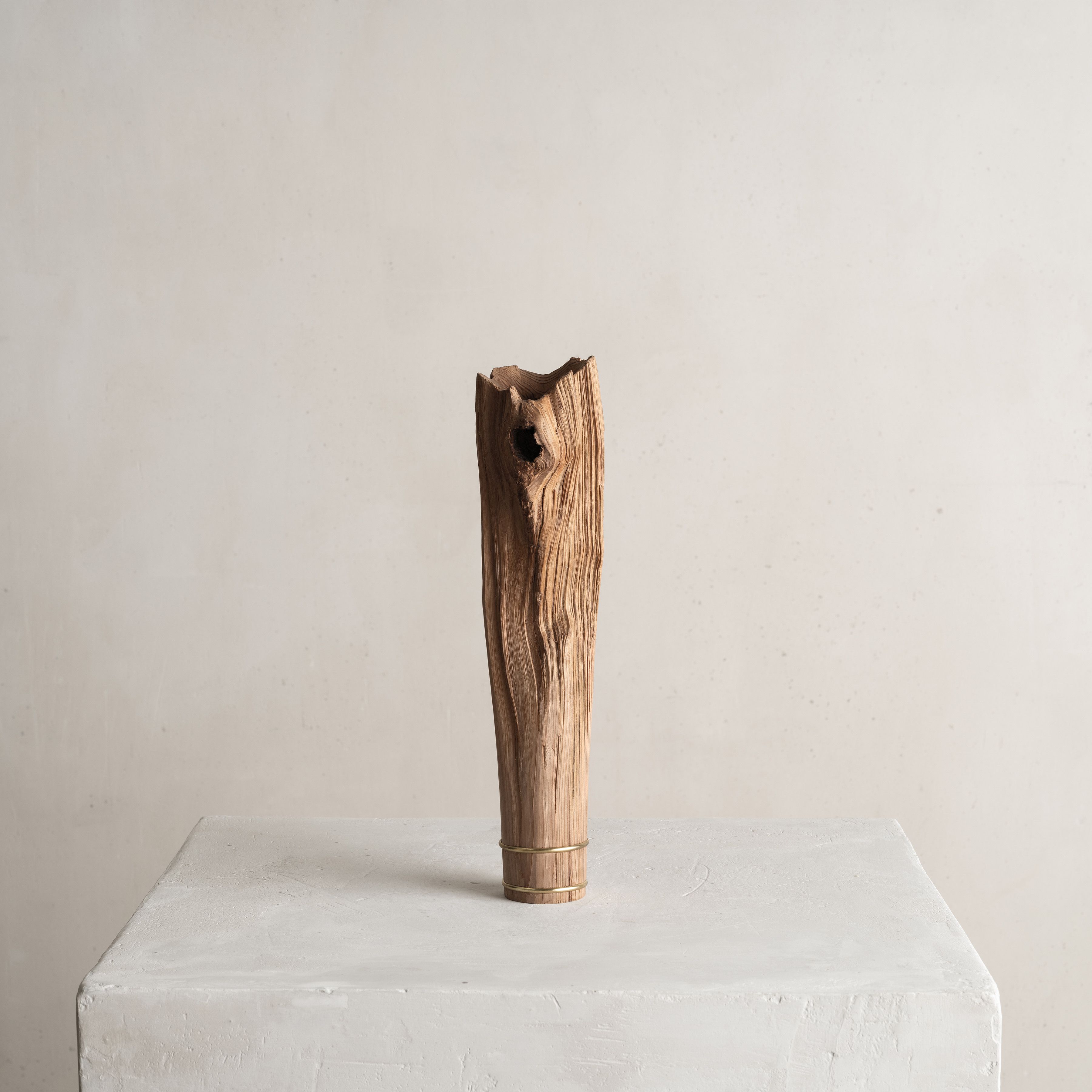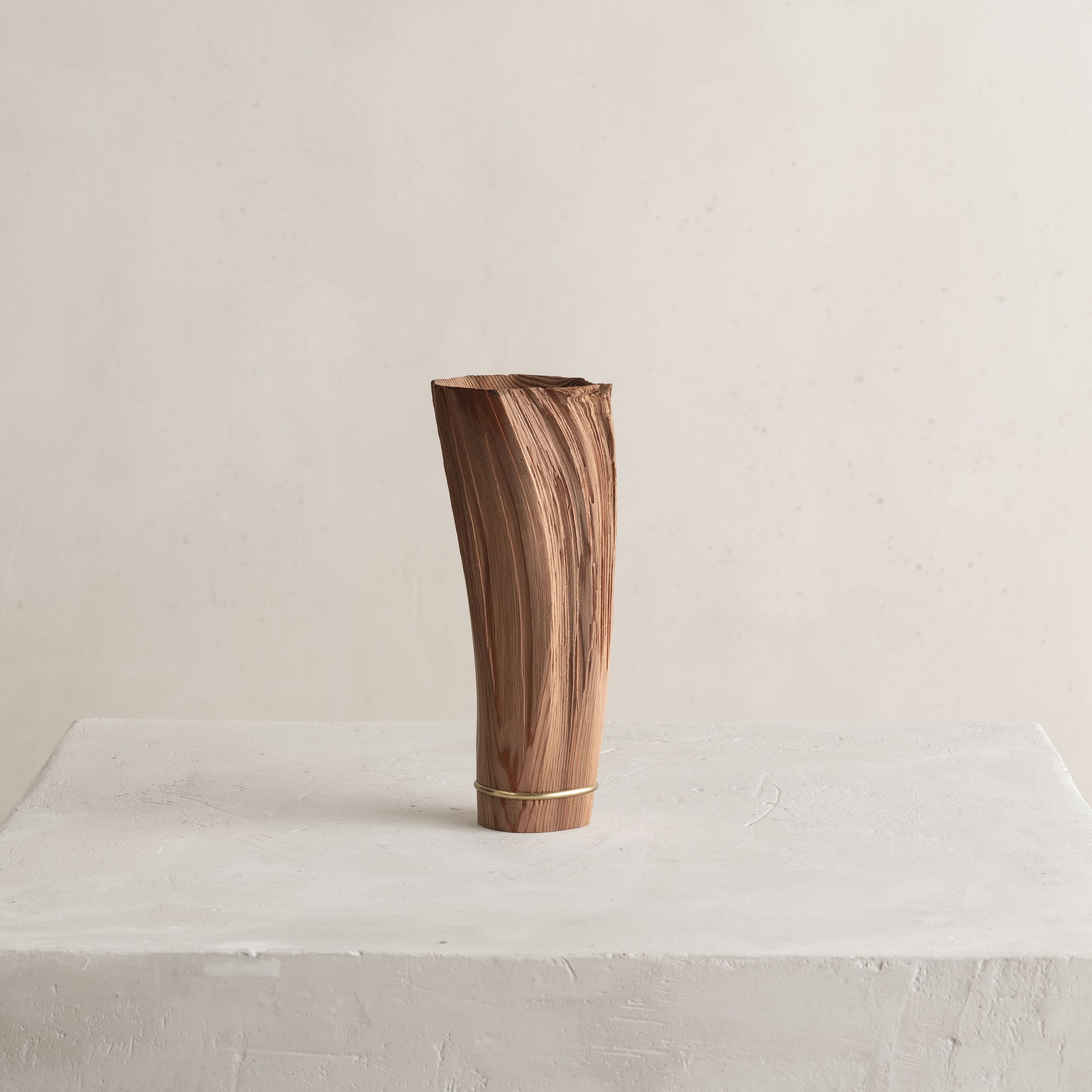 His entire body of work highlights the essence and natural beauty of various local wood species. Often the artist chooses to work with Jindai-Sugi — a Japanese cedar sourced from Northern Japan's forests that symbolizes the interconnectedness of humanity and the natural world. Its weathered bark and intricate patterns evoke a sense of harmony where the passage of time is celebrated rather than feared.