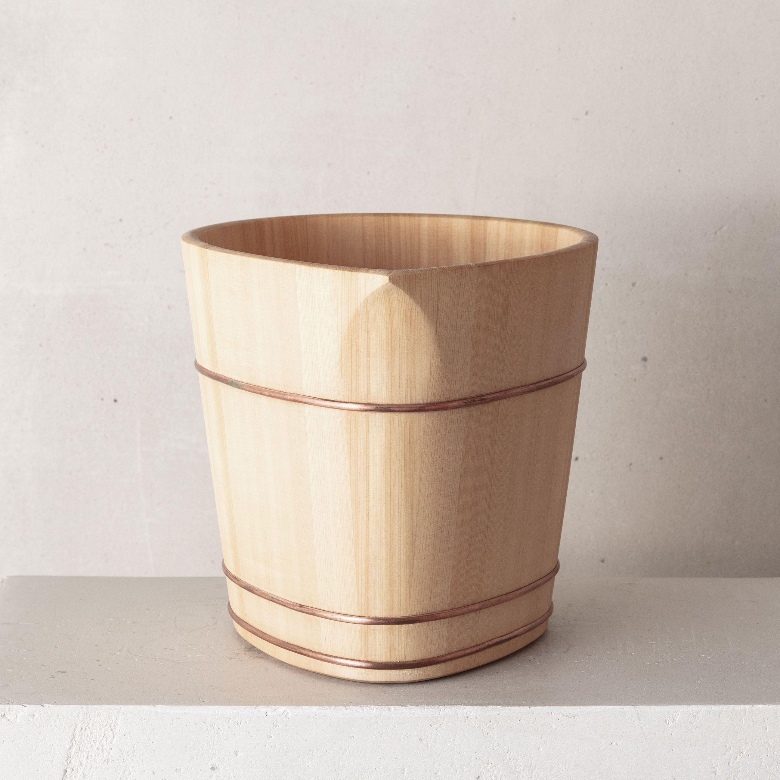 The wood crafter explains the virtues of different wood species and why one may have been historically selected over another for certain purposes. “Sawara cypress has a soft smell and the ability to absorb water well, that is why we usually use it for rice keepers. The Hinoki cypress, however, has a strong scent. It’s not suitable for food and drink containers. Instead, its medicinal virtues make it a good species to use for wooden bathtubs and other bathroom elements” says Shuji-san.