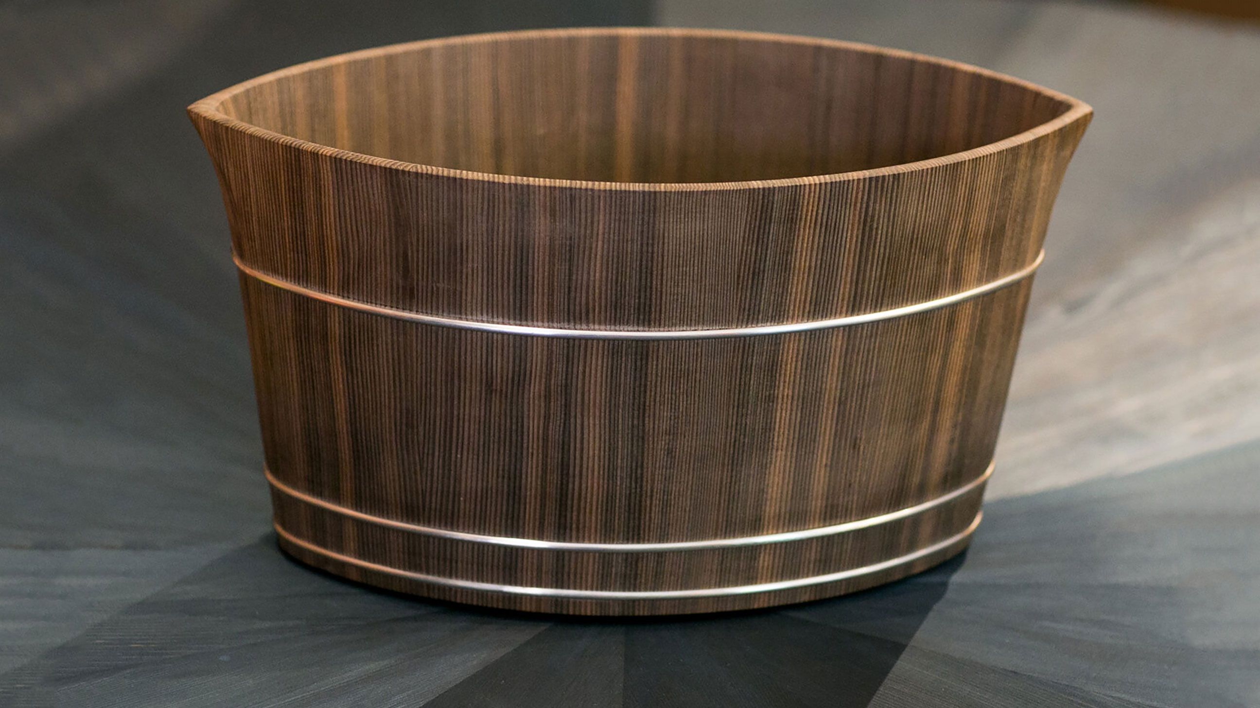 The wood crafter explains the virtues of different wood species and why one may have been historically selected over another for certain purposes. “Sawara cypress has a soft smell and the ability to absorb water well, that is why we usually use it for rice keepers. The Hinoki cypress, however, has a strong scent. It’s not suitable for food and drink containers. Instead, its medicinal virtues make it a good species to use for wooden bathtubs and other bathroom elements” says Shuji-san.
