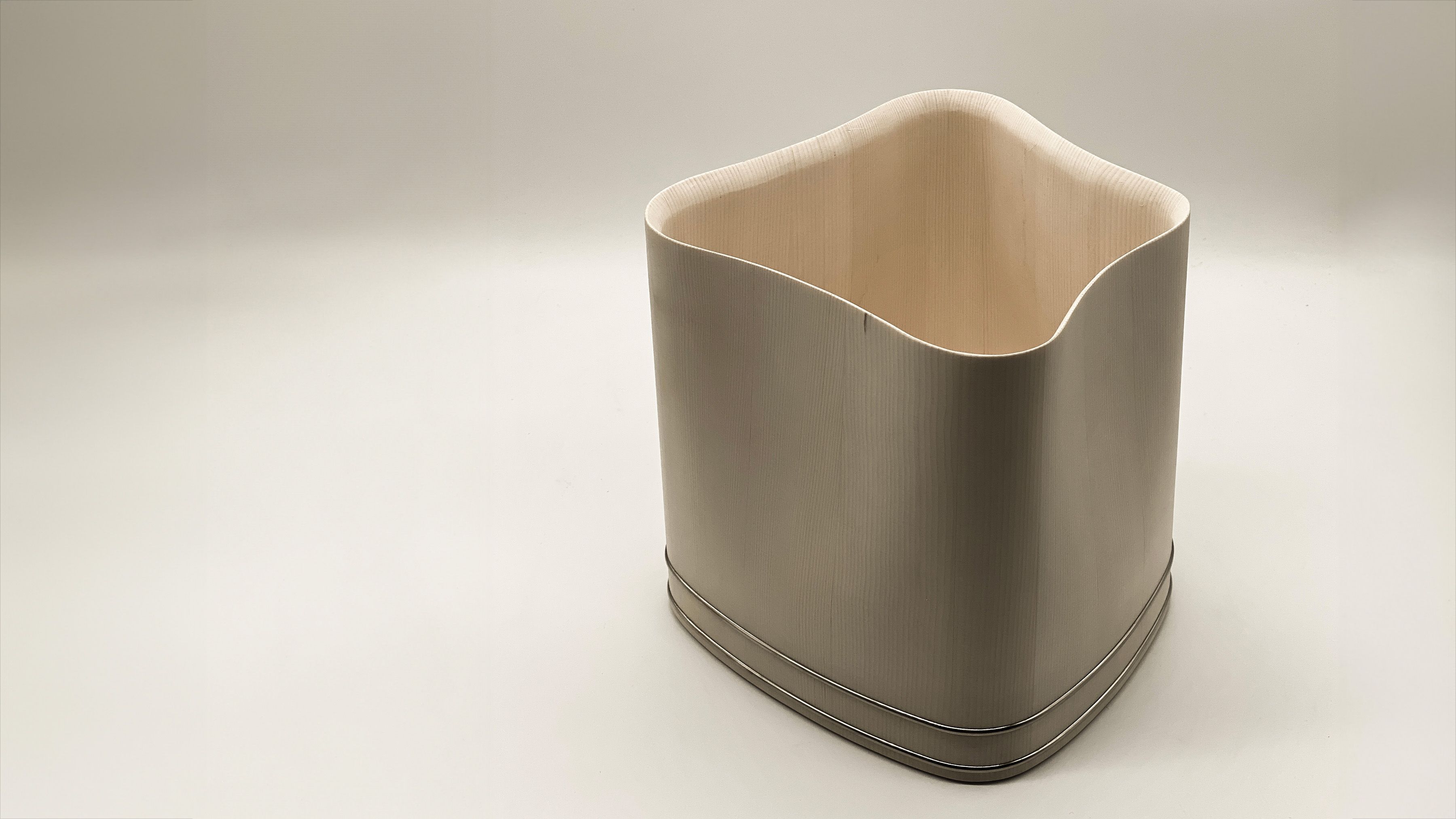 Hand-crafted in Japan by master wood crafter Shuji Nakagawa, this piece belongs to the artist’s sought-after series of contemporary wooden buckets (called ki-oke in Japan). Each is made using a technique developed 700 years ago during the Muromachi era. During the Edo period, households started to use wooden buckets for bathing rituals or for storing rice and miso. The buckets remain ubiquitous amongst Japanese households today, although their designs have evolved and they are now used for various purposes, such as champagne coolers, bathtubs, or decorative objects.